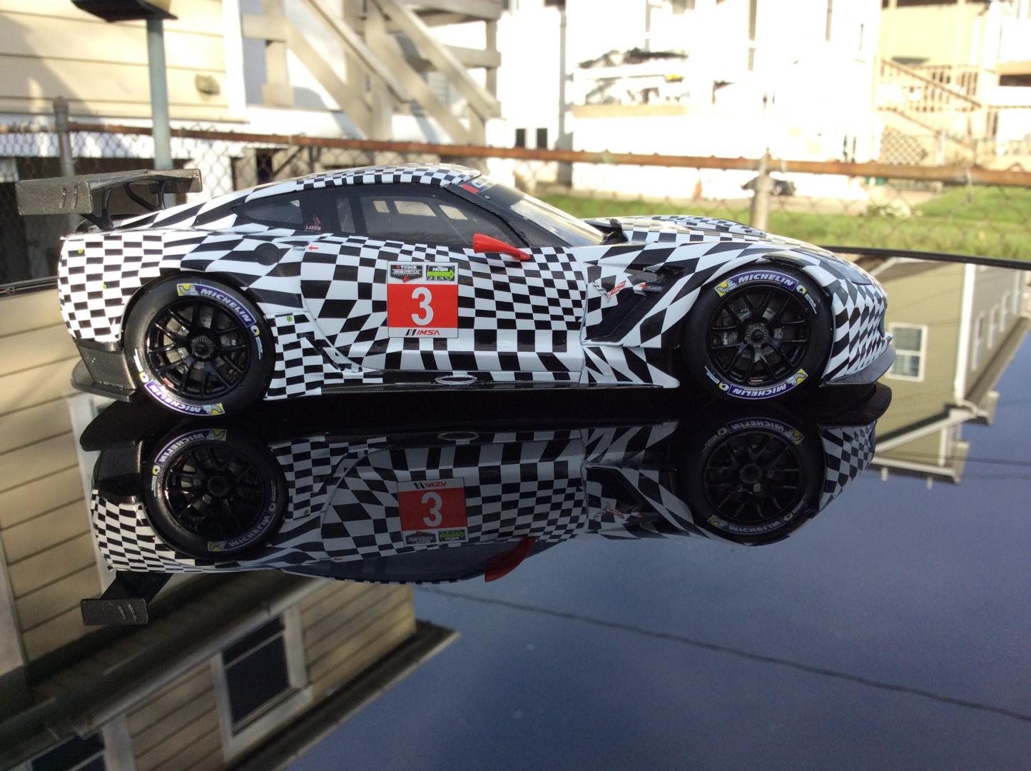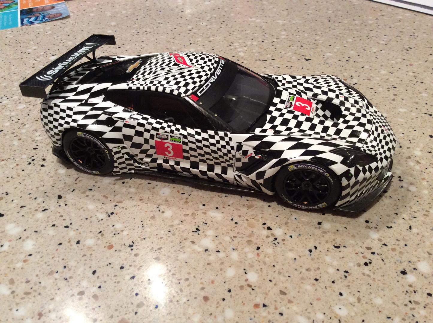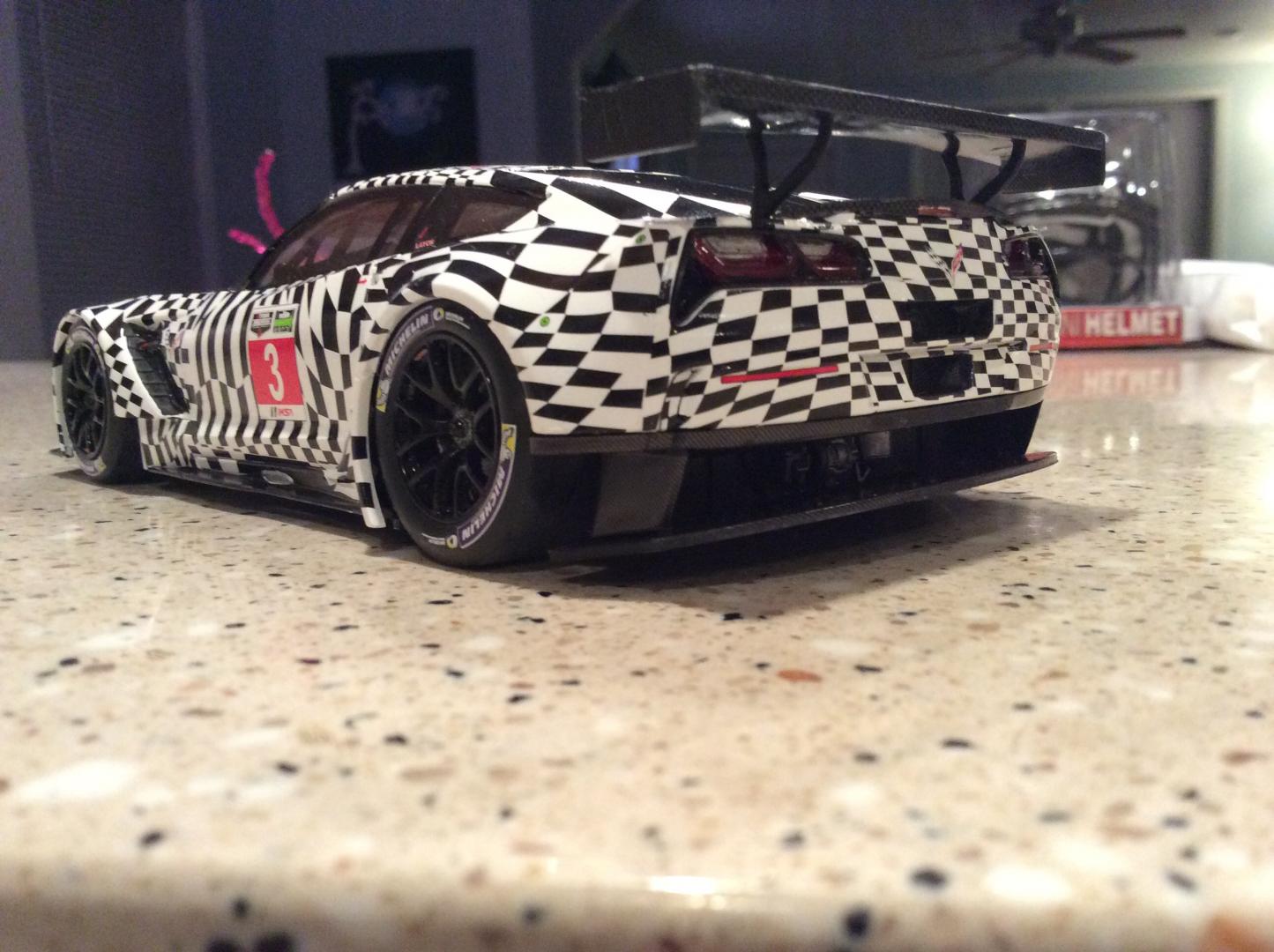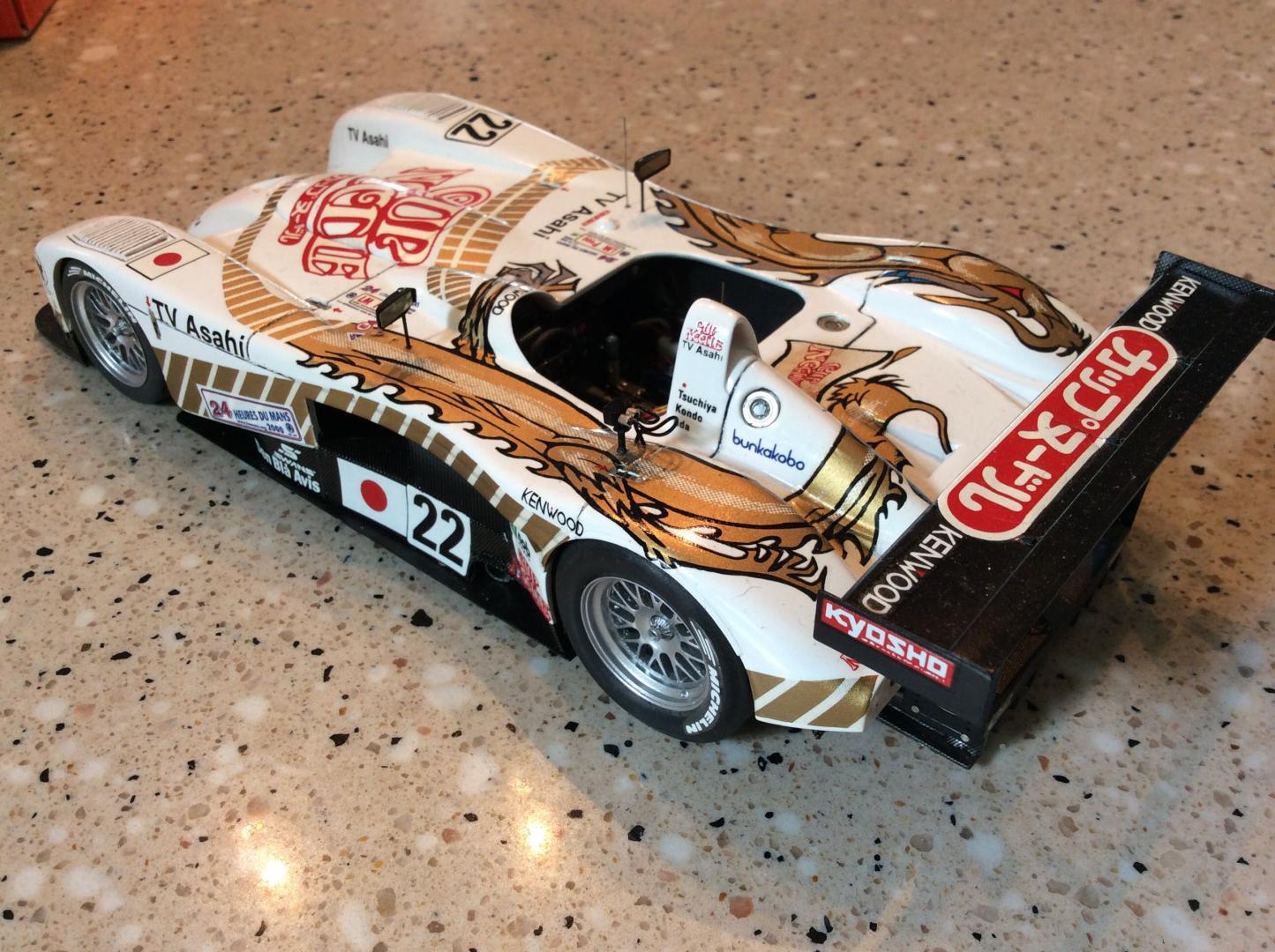 The kit is now finished see under glass . I had to buy two kits. The first kit the glass did not fit. Revell did replace this. The wheels are to thick in the spokes. I thinned them down with some needle files. I didn't use the axles in the kit or the brakes. The brakes on mine are from a lambo gt3 kit. The centers just had to be drilled out. I re-drill the mounting location to lower the car. Front and rear. I heard of a body fit issue in the dash area so I sanded down the front lip of the dash (the one where it lays under the windshield and above the firewall. The is part of the roll cage that passes under the dash. I cut the cross bar off and the bar sat lower to the chassis . The intake in the back sits to high as well. I trimmed of the mounting tabs to make it sit lower . This way the hood sits nice and flat. When mounting the body,I glued the back to the aero tray and just a little on top of the firewall. If you glue the nose down to the chassis the hood does not fit in the front at all. The kit is very toy like ,but can be built into something nice. Scale Motorsports now has a full detail set for the kit. By the way I cut off the wart on the roof as the test verison pics I found did not have them. Carrera slot car has a nice set of wheels in 1/24 from one of there cars. Being in the Uk I'm sure you can get them easy. Just cut off the gear. Would love to see Le Mans live some day. Hope this helped if more info is needed send me a pm. Here's a finished photo .
