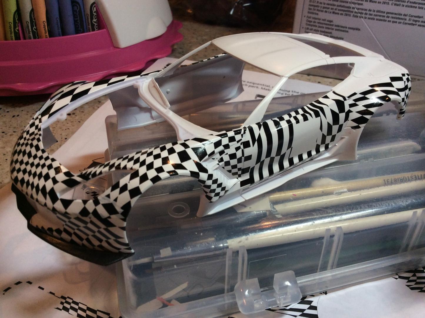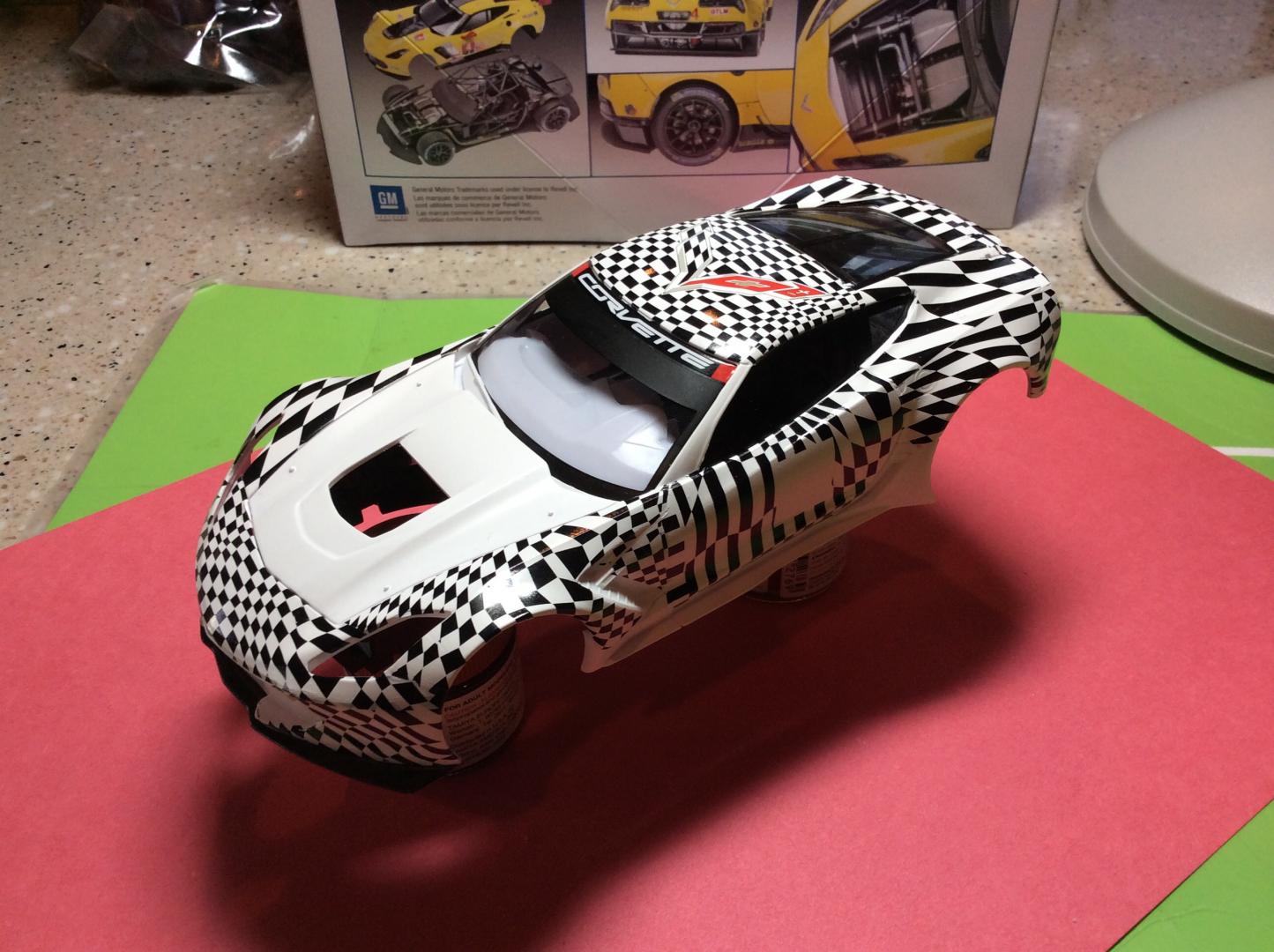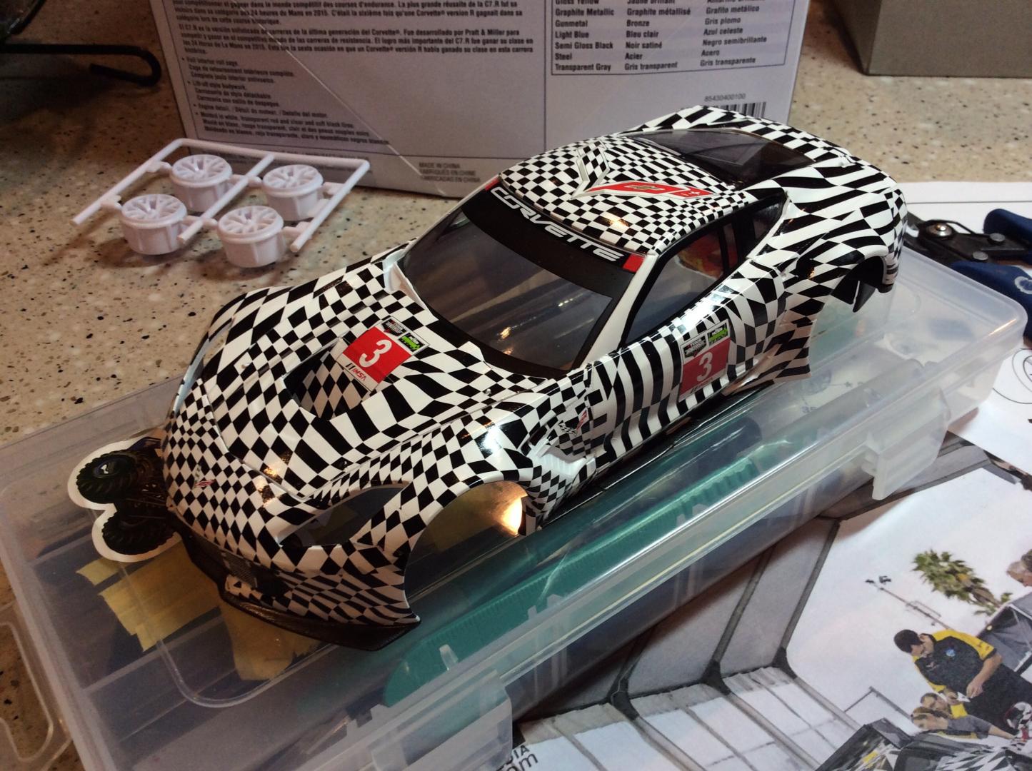 I've been following yours Ismael. Awesome work,,, you have my respect, cause the kit is terrible. The photos I've been looking at are pretty close to the kit body. I had to remove the wart on the roof. The test car front and side skirts match the kit close enough. The wheels suck, I ordered 1/24 carrera slot car wheels for there vette. Much nicer. I have to put in the glass to make sure the rear window wasn't covered and it would not fit. The windows were twisted. I had to cut them a part. He is an update photo. Had a half day at work