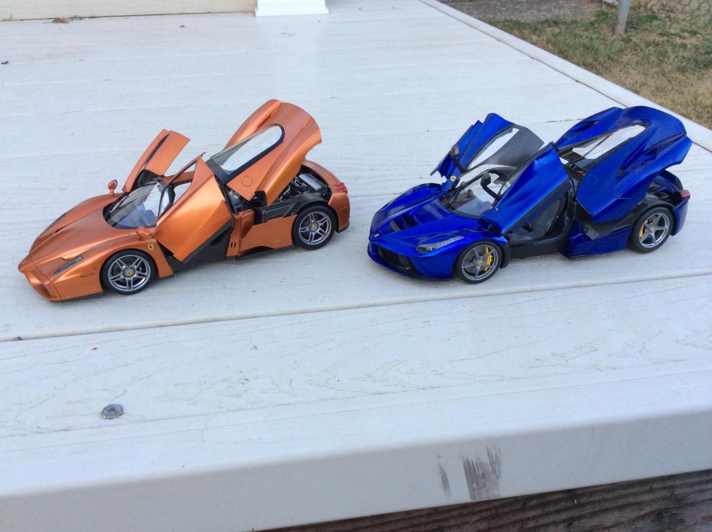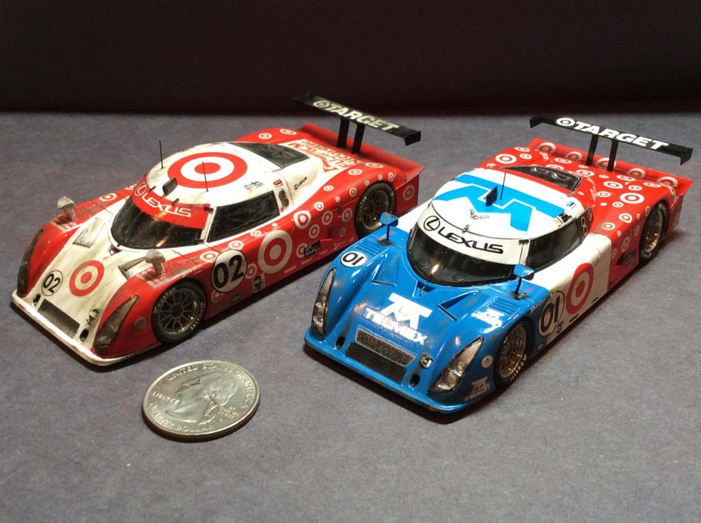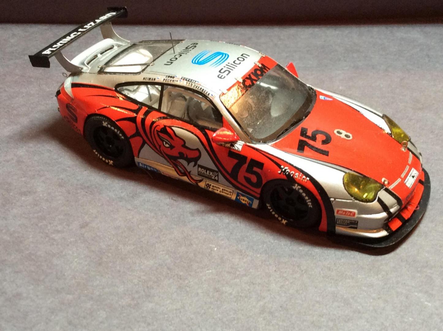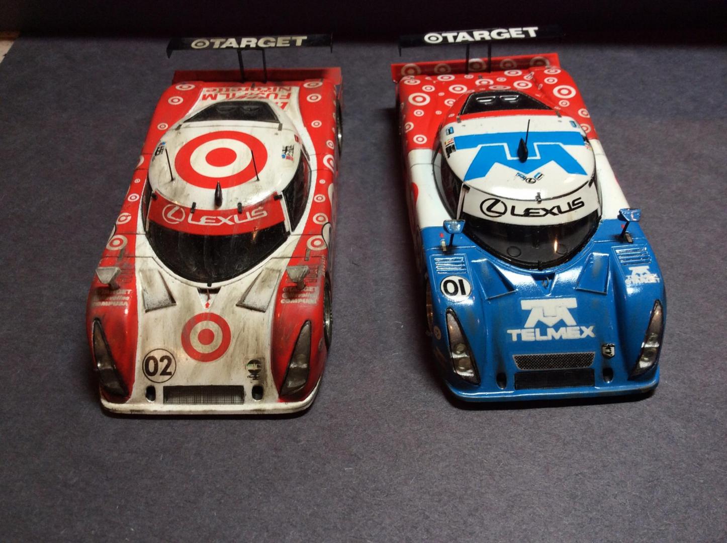 Here are a few pics of a few more of my 43rd builds. Mclaren was built post race, as I like weathered race cars. As usual the paints are Tamiya . The weathering on the Mclaren is done with the Tamiya weathering kits. The flying lizard Porsche is one of the early cars they raced. All red on the car is a decal. The stripes on the Mclaren fell apart when they hit the water and had to be pieced back together. Both kits are PMA.