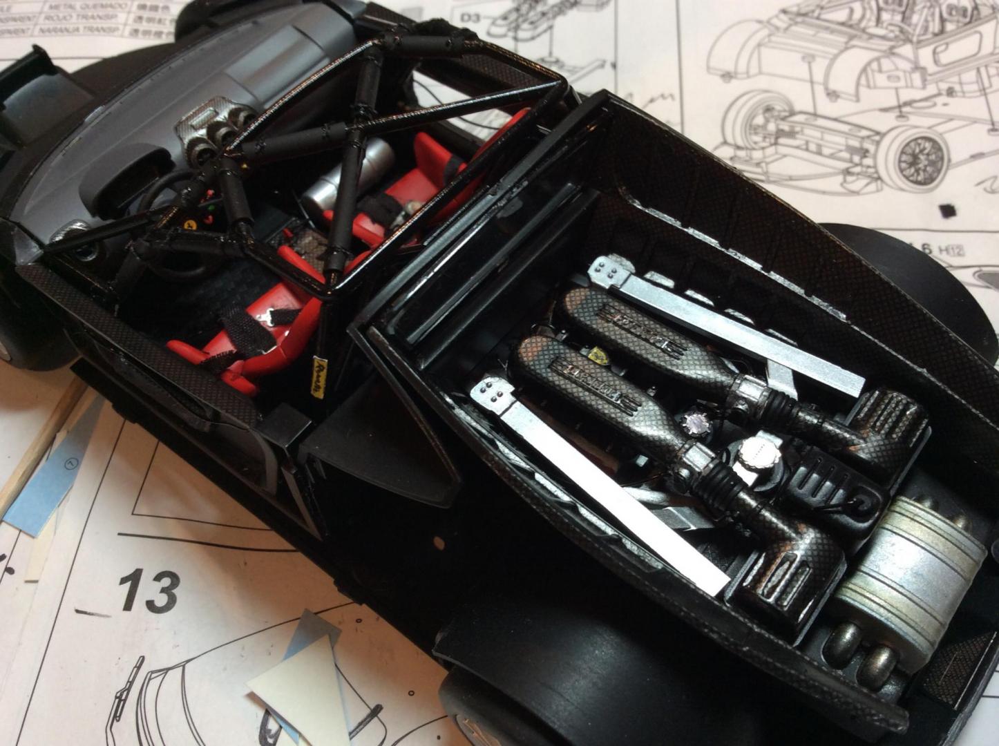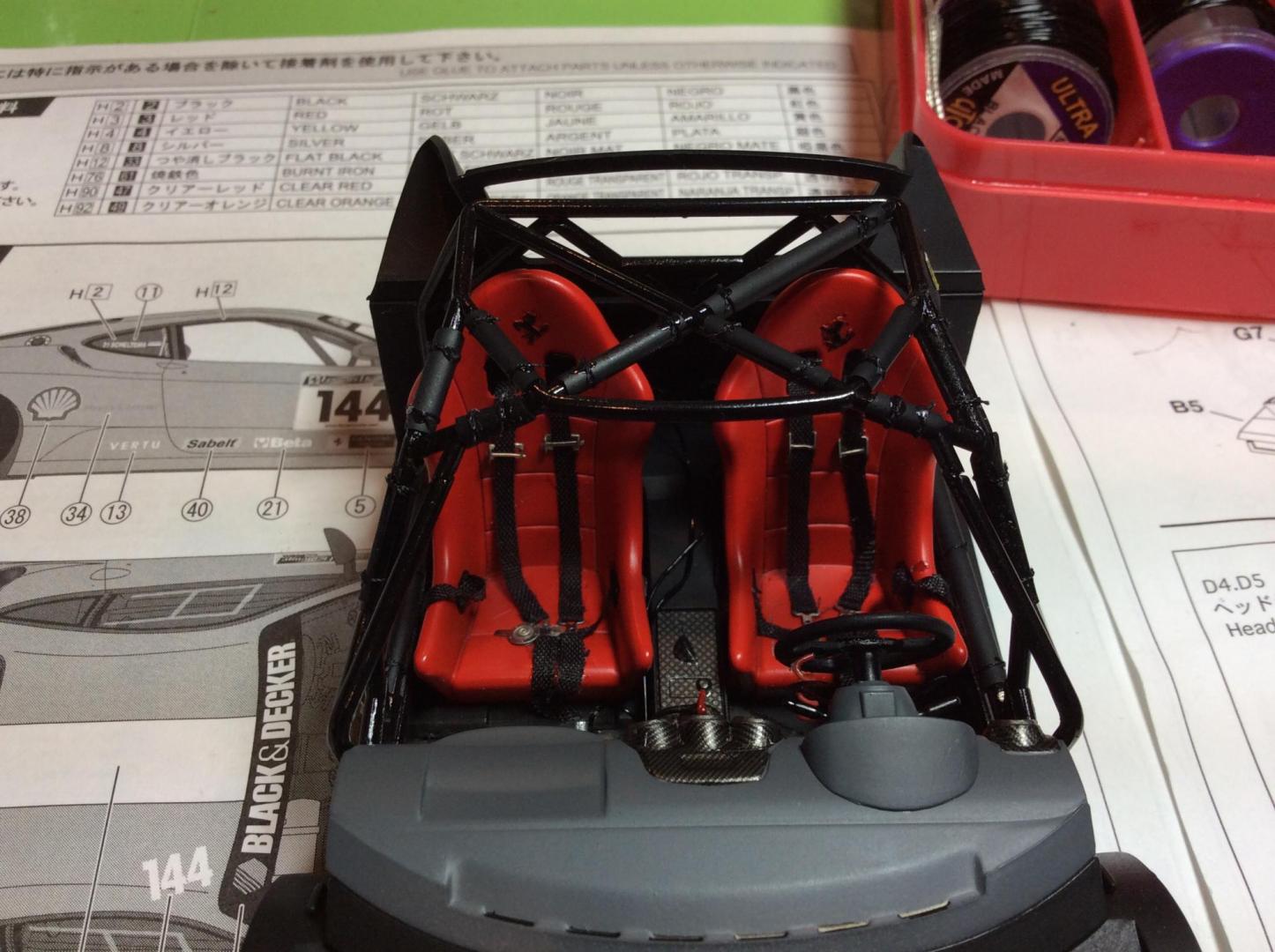 After my orange Enzo I'm back at it. I always liked these kits. Easy to build and with a bit extra they look quite well when done. I started on the interior a few days ago and here is the progress. The door panels have had the centers removed. The belts are Scale Motorsports. I'm using the Hobby Design detail set for this car. It has the "shark teeth design on the nose