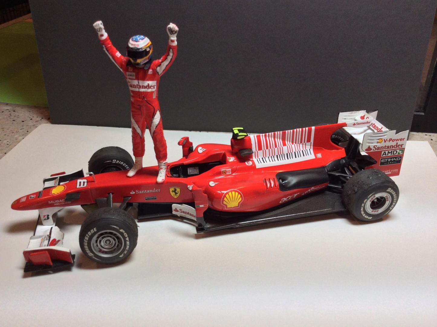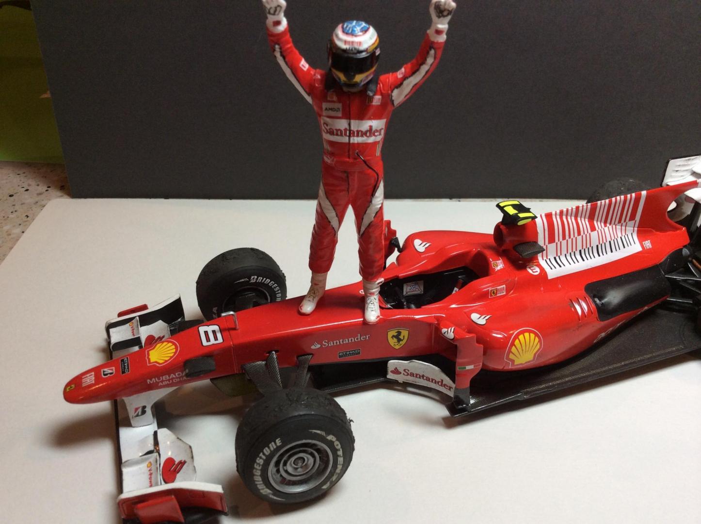 A few quick pictures of a project that was a on again off again build. I finished this about a year ago. It's a Revell f1 kit. A good kit for a quick build. Decent detail. The car was built post race winner. Note the light weathering and tire clag. The clag was made by taking an eraser and rubbing it on a sanding stick. It was stained black with some ink. I used a clear glue that I tinted black with the same ink. Then blended it in with chalk. The driver is a Tamiya rally driver with a Different helmet . Helmet details were done with a Sharpie markers.