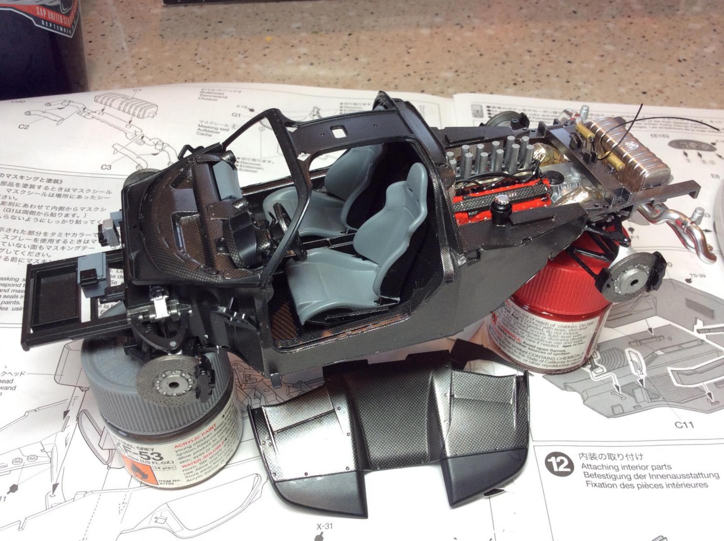 I needed a break from building gt race cars. I had this stashed in the back of the closet. It still needs to be finished, but wanted to share. The cowl still needs painted and the front fender needs to be put on. Waiting for the carbon decals to dry. The stand needs finishing. This was just about done in a week.