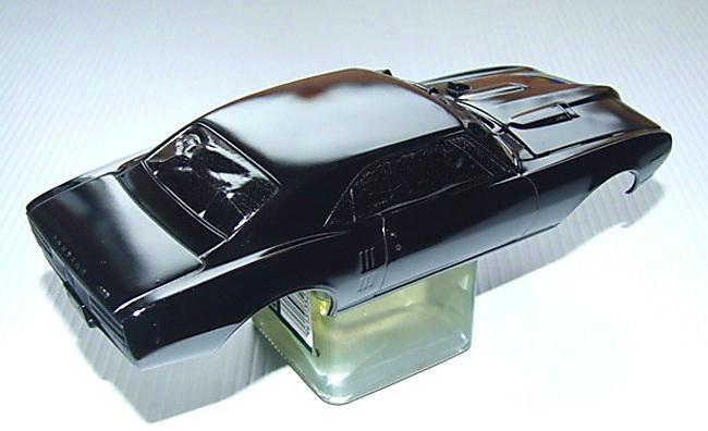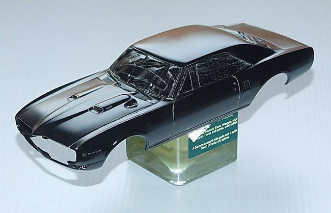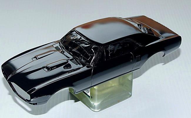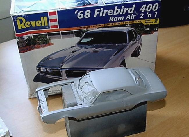 Following all the anticipation and 'prep' for the Cambridge Show which took place over Armistice weekend (same as the UK Nationals) and last week simultaneously 'instructing' & taking a SAR course, that part of my brain that deals with modelling is really working only at 'tick-over'. That in mind, I decided to clear the bench, drag-out a relatively straightforward kit and simply build it from start to finish. So here t'is. Revells 1968 Firebird 400 in it's original 2004 boxing. The roof lining has been sprayed Tamiya acrylic 'Buff' and the chassis & firewalls Tamiya 'Satin Black' enamel. The body has been primered with Tamiya grey just this morning and will be left alone for a day or so to fully cure before rubbing back and polishing ready for the first coat of glossy black. Not certain whether in 1968 the red interior was available as an option with the black body colour, but even if it wasn't for overall effect, black with a red interior is really hard to beat and in my opinion, so classy. The bonus is that the red graphic stripes are in the kit, so it's sort of a 'no brainer' for me. Hopefully at the end of the process it will look something like this: Stay tuned & let's see !! Ian.