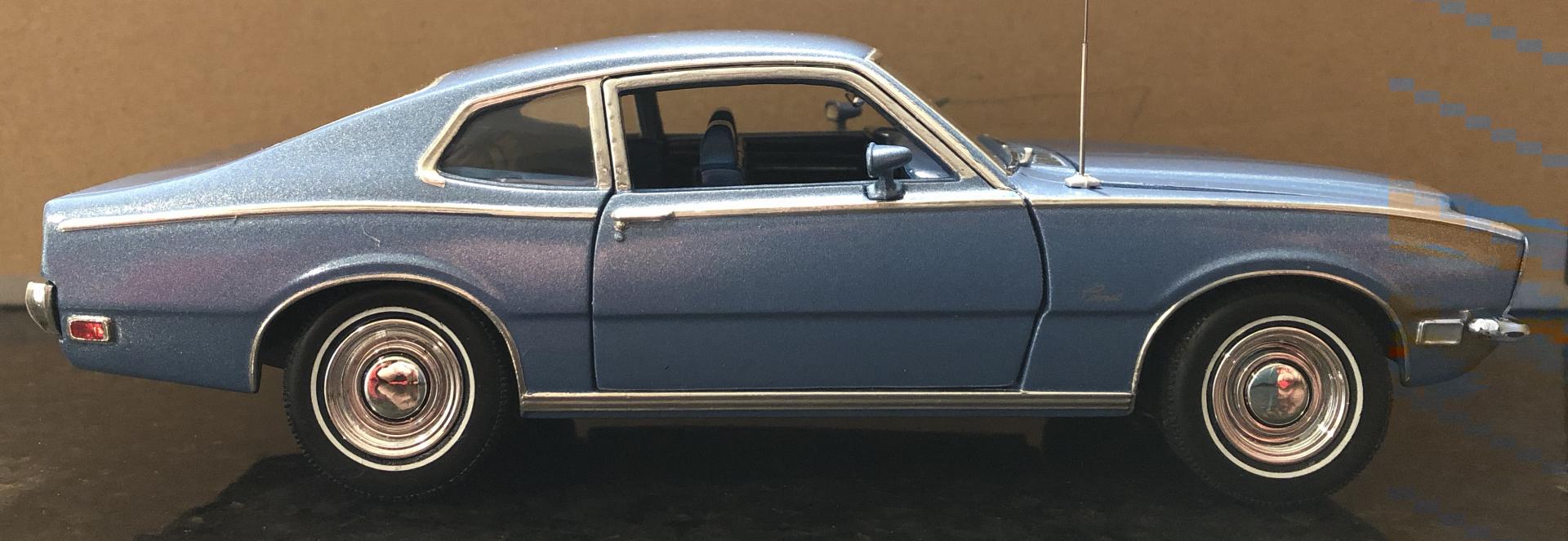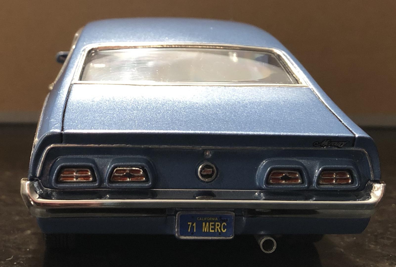 Inspired by the fine work of Adam Rehorn, I completed my own addition to the “Lovable Loser” pantheon. This is the 1971 Mercury Comet, constructed from an unpainted MotoMax Fresh Cherries kit. I used Dupli Color paint, foiled the trim, and added white walls, wire antenna, aluminum tube exhaust, and various other details. Chassis is typical die cast primitive, but engine compartment is more detailed than many die cast engine plates. I don’t know how big a market MotoMax was serving when they produced models of 1970s economy cars, but it sure won’t be available any other way.