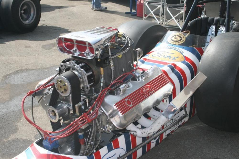 No SOHC had plugs on the bottom. The SOHC was a 427 FE block with overhead cam heads added on. Not DUAL overheads. Here's the Prudhomme/ Baney 1967 Top Fuel car. I personally think the AMT is best ( or can be made to be), followed by the JoHan. The Revell version is terrible, not even close. Why they stuck it in so many "drag" kits is beyond me. Obviously for economic reasons, not accuracy. I have plenty of SOHC pics, plus every other drag motor, the Hemi's and the SBC and the Rat.