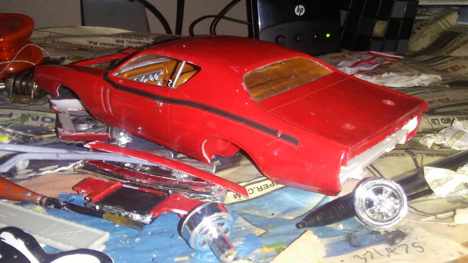 Hey guys, my dad gave me a model of revell's 1969 dodge charger he had never completed when he was a kid. He started to put dents in it to make it a junkyard car, but I thought it would be cool to make it look like someones ratty project car. I plan to have the doors open and close, the trunk already has hinges that he made a long time ago. I was also kinda thinking about making the headlight doors open and close, we'll see. Anyway, hope you guys enjoy!