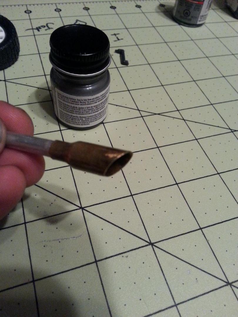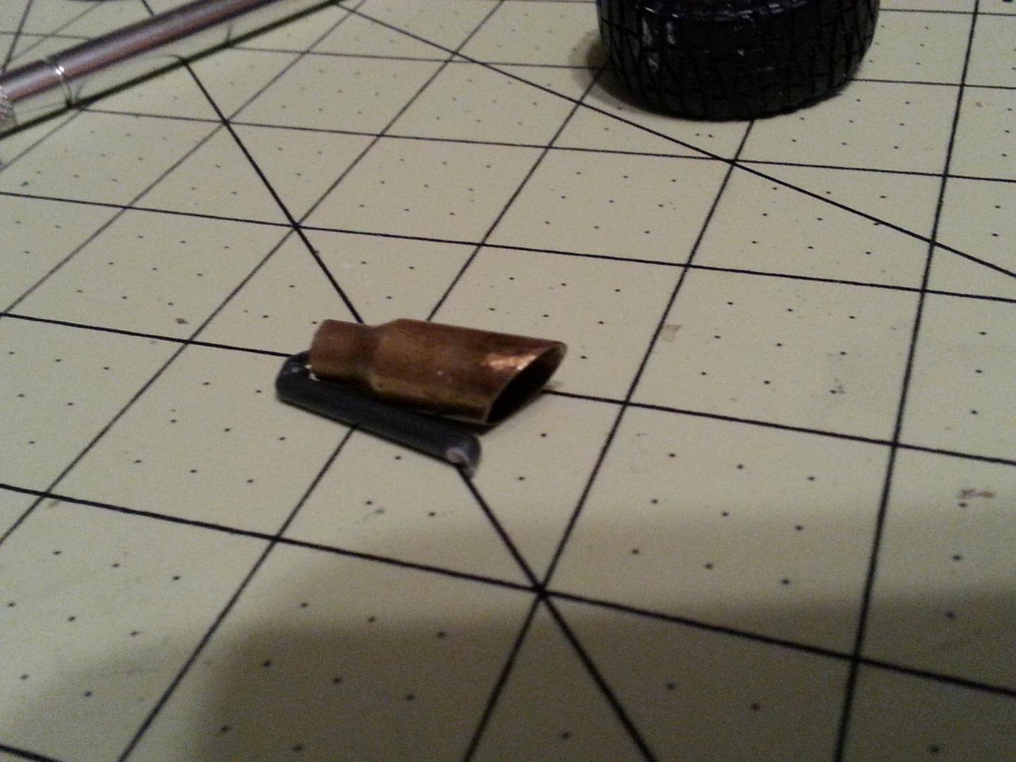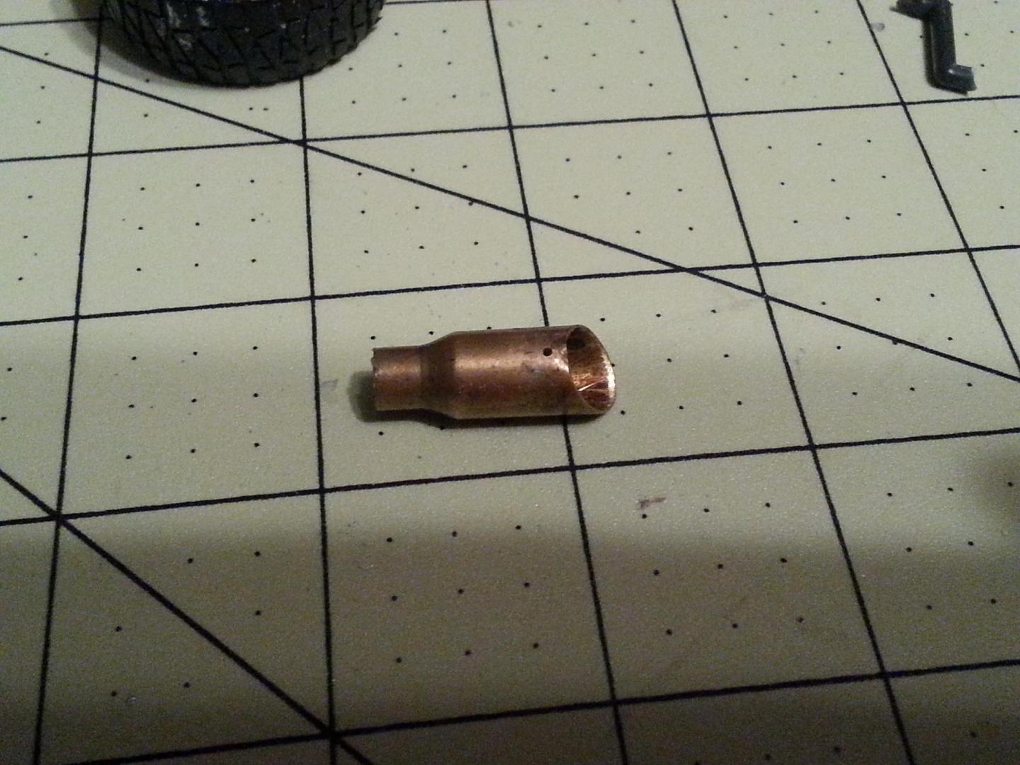 So I have been workin on the meng f350 powerstroke model kit an I wanted it to have 5" exhaust with a 8" tip so I have been on the work bench for awhile tryin to make a tip to scale to represent an 8" tip. Then I finaly got it. So here are some pics of the tip. It just needs to be chromed then its done. So plz leave your comments an tell me wha you ya'll think!!!