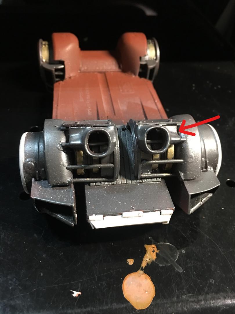 Here's the progress from tonight. Also some pictures of the rear engine. Going to put fins or a throttle plate inside the large rear intakes. I hope to add wires and hoses everywhere in the engine compartment. \\\ Does anyone know what the two center intakes are made from? The rear rim and hub cap will be set farther inside the tub. The rims will be red and the cap will be chrome.