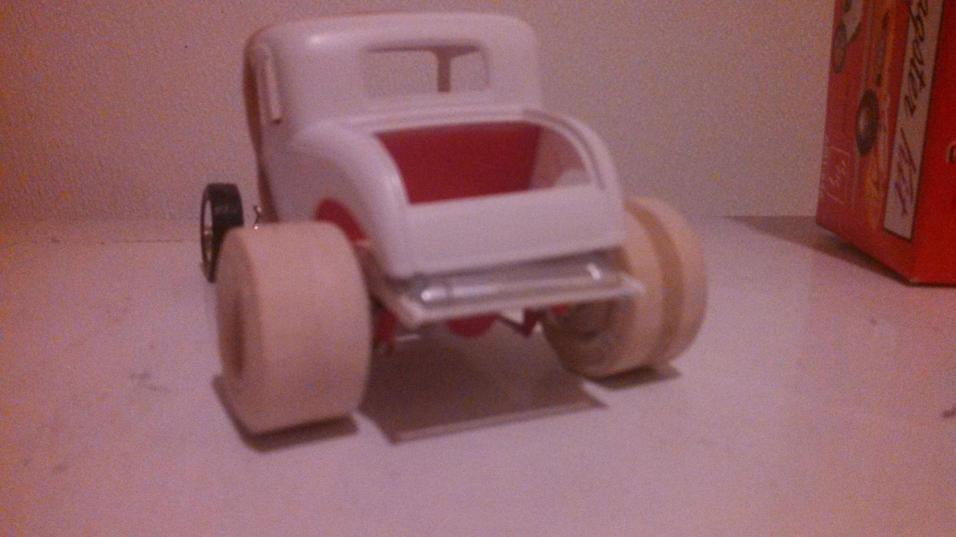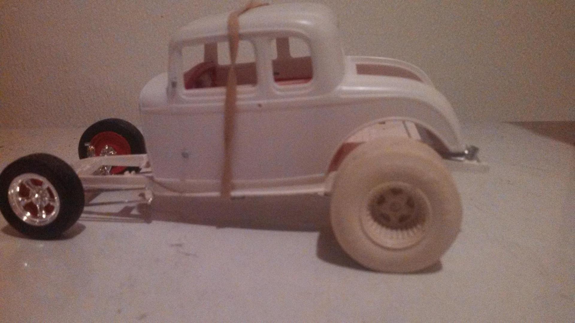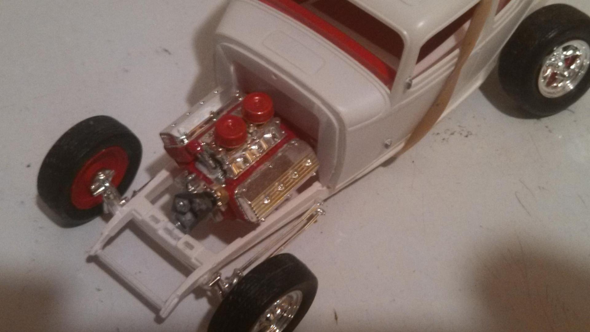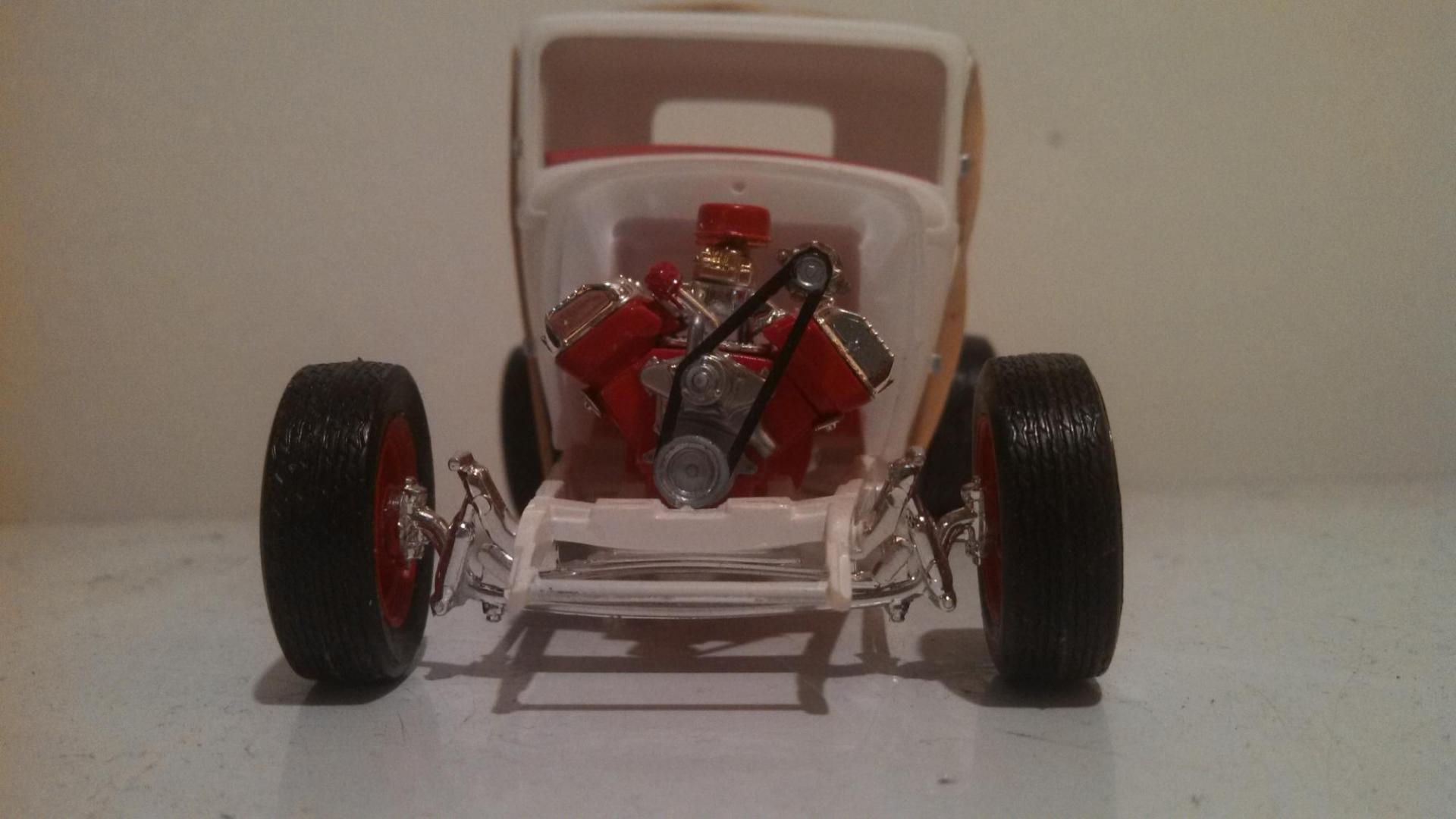 Over the years I have done model cars builds so good some not so good.Some I have sold but mostly have kept. For a while I got out of the hobby because life just got to hectic and my cars reflected it. So I but away everything into storage and went on. A year ago we moved and while packing and unpacking I came across " my supplies " and thought maybe it was time to return to it but this time around I wanted to push myself to see just what I could actually do beyond just building the typical model out of the box. Which is a good thing, as I was going through the boxes and boxes of model stuff I noticed I didn't pack everything or packed it well. Some pieces were broken, missing or i had no clue where they came from. So here it is The Anomaly 32 Ford project. Here is where I left off at. As I said before, I really want to push my self on this build. Since part of it is already done I don't really want to redo what I have done. In my mind I have big dreams for this car but we will see if I can get it done the way I am envisioning it. First I want to put bigger wheels so I found an old pair that I casted in resin. Not sure if I want to go that wide so these for now will just be mock ups. To make this a one of a kind........and well because I don't have all the parts I have enlisted the help from this kit. My plan is to use the motors from this kit ( once again because I am missing the bodies ) to build a fuel injected tandem motor. But with doing so I will have to cut the frame and make it longer so the new motors will fit.