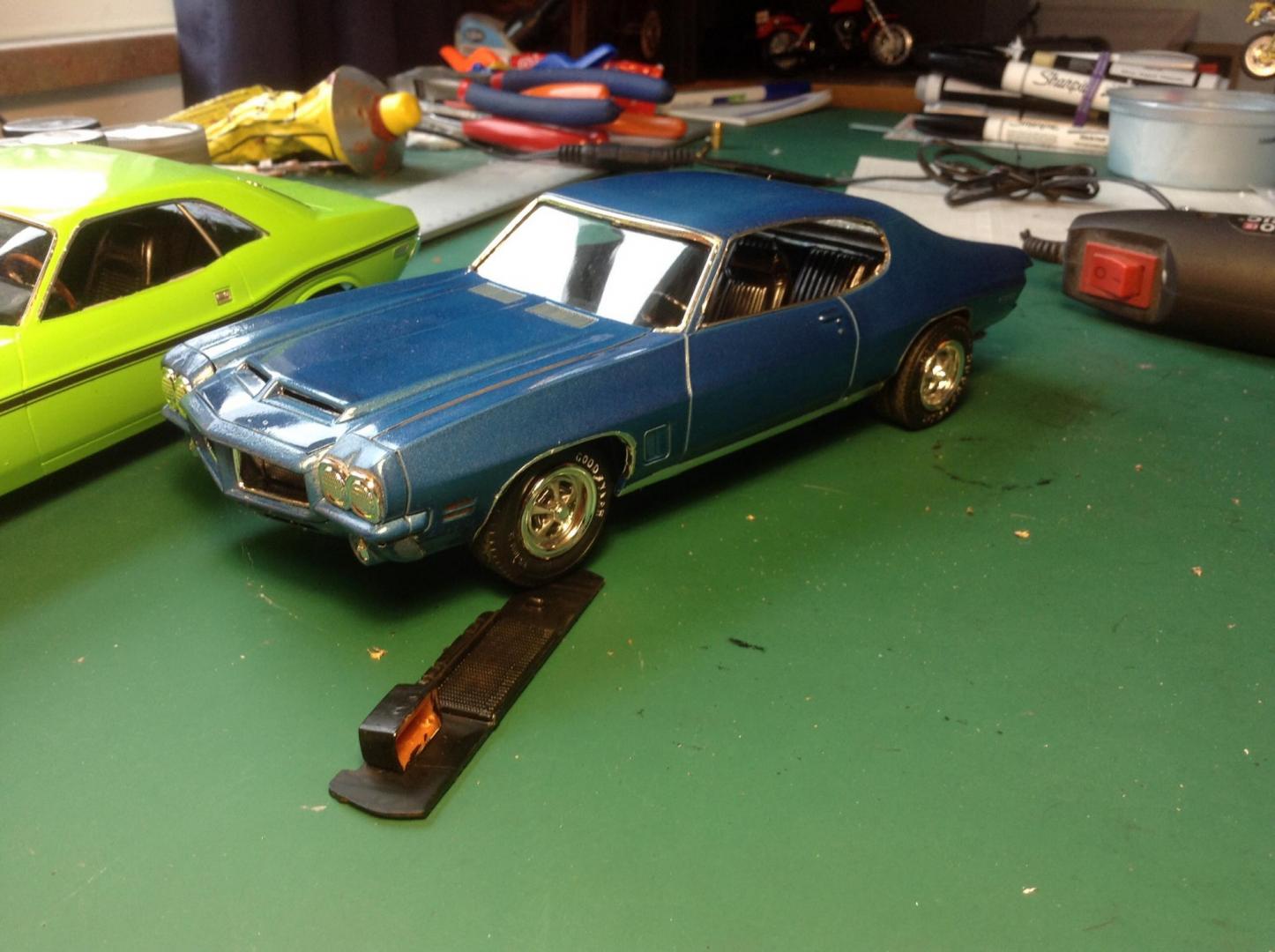 Thank you for the compliments Jeff! I can't wait to see your build, while this kit is junk it is still a beautiful car. Dan, yes this kit is garbage, good to know about the street custom, I think spotlight hobbies has it on sale, my next '72 will be from that issue I'm still working on the bumper and taillights but I did manage to move the rear wheels, I ended up ditching the metal axle and just gluing the wheels to the car with superglue. The rear tires supplied in this reissue are waayy to big for the wheel wells, making it hard to center the wheels. I just picked up the revell '69 nova today so I'm eager to get this gto finished and move on to greener pastures...
