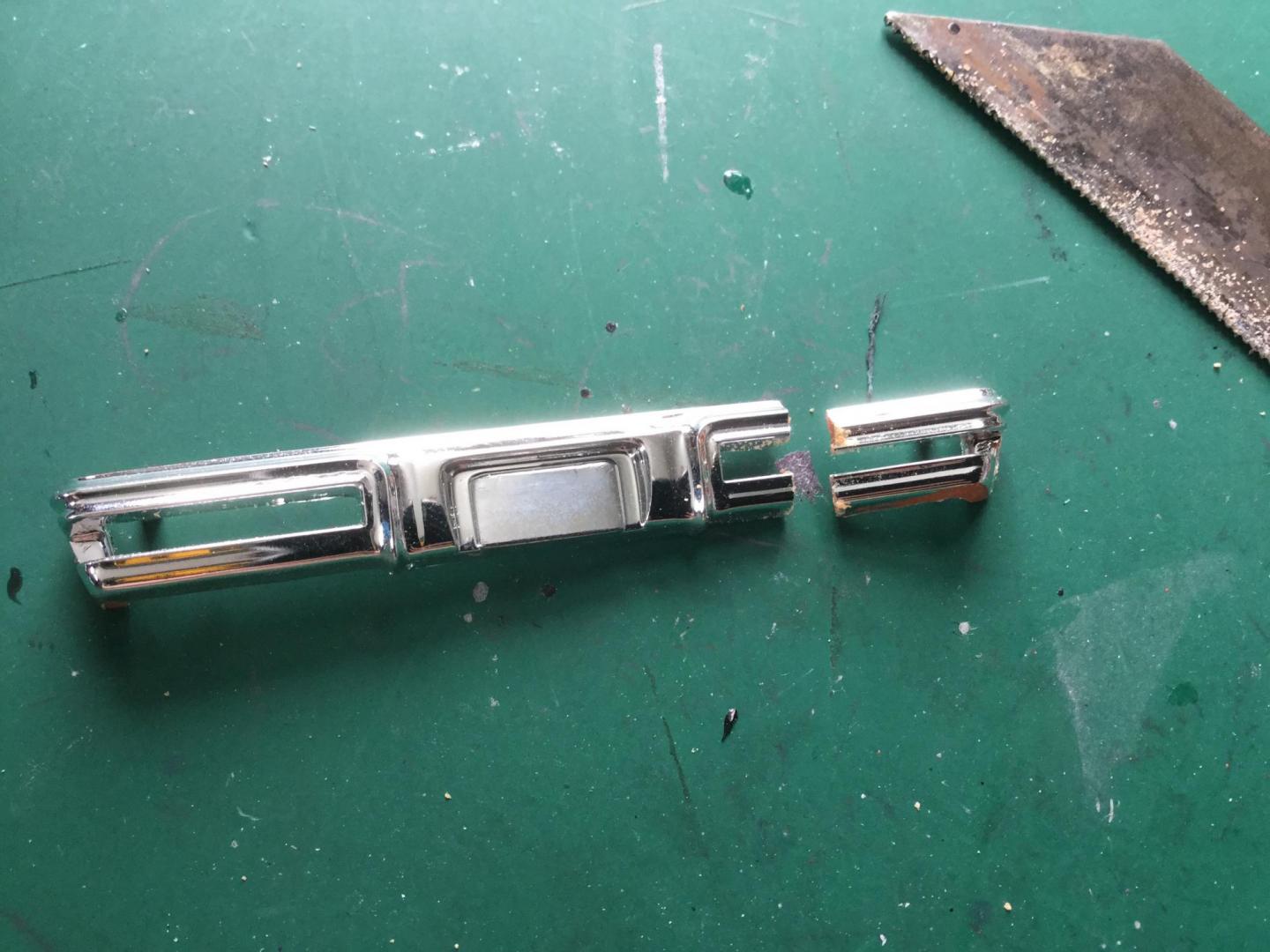 Thanks Bruce! i just started hacking away at the bumper, I don't have a razor saw so I use an old sawzall blade held in my hand, im removing about 3/32 from each side. I couldn't cut it down the middle because then the license plate panel wouldn't look right