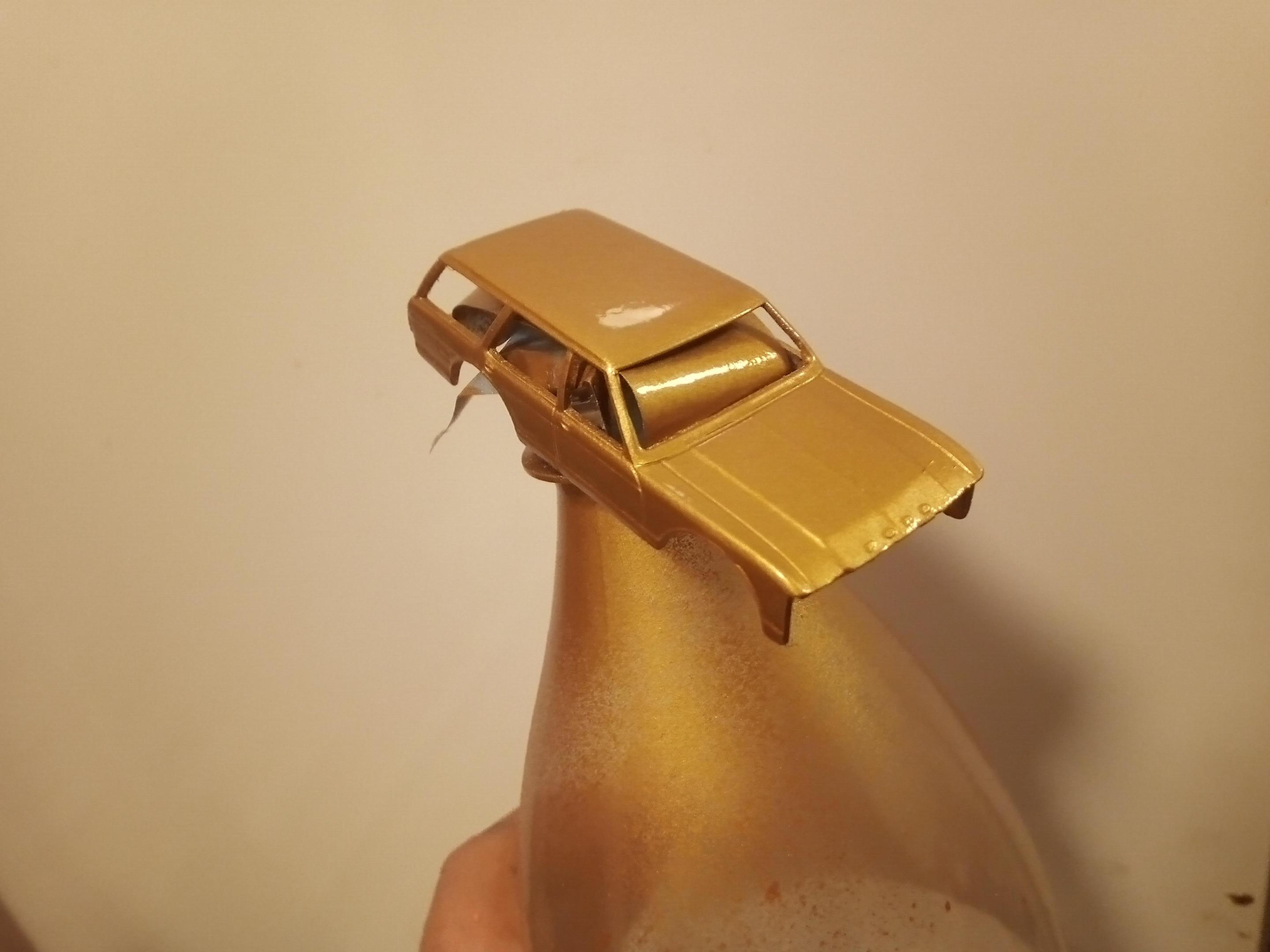 I thought that gold was a suitable colour, and the casting was actually good enough to just require minor prepping. If I remember correctly, this is even an original colour for the Ford Granada, called "Arizona gold".