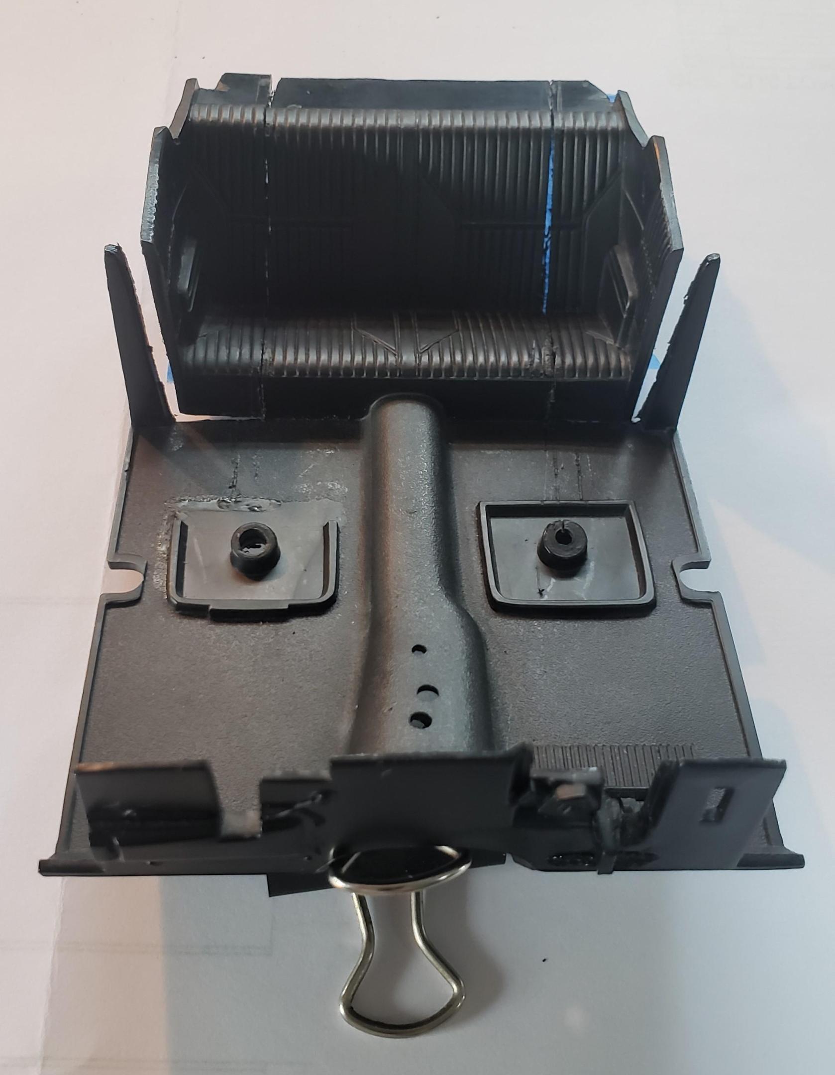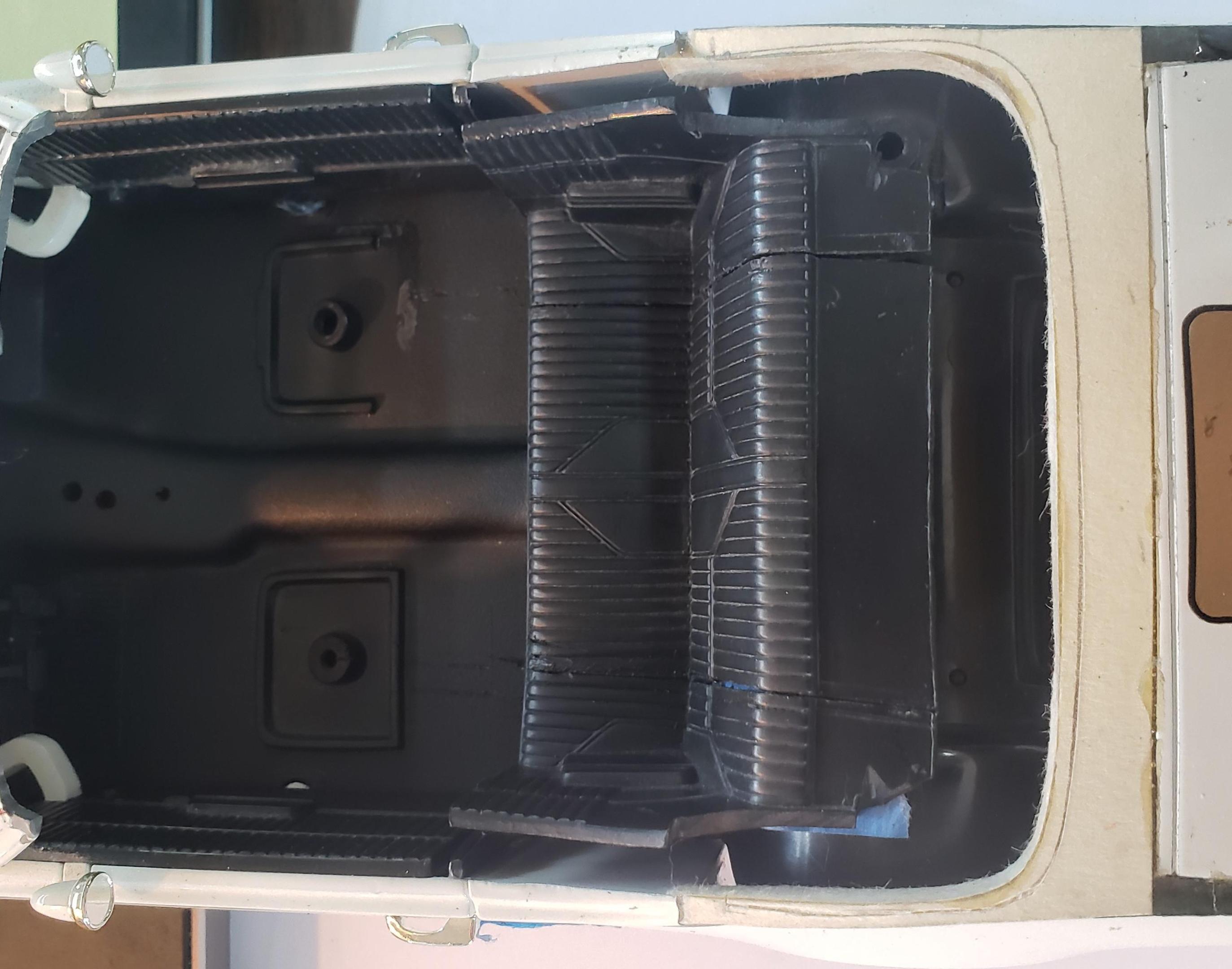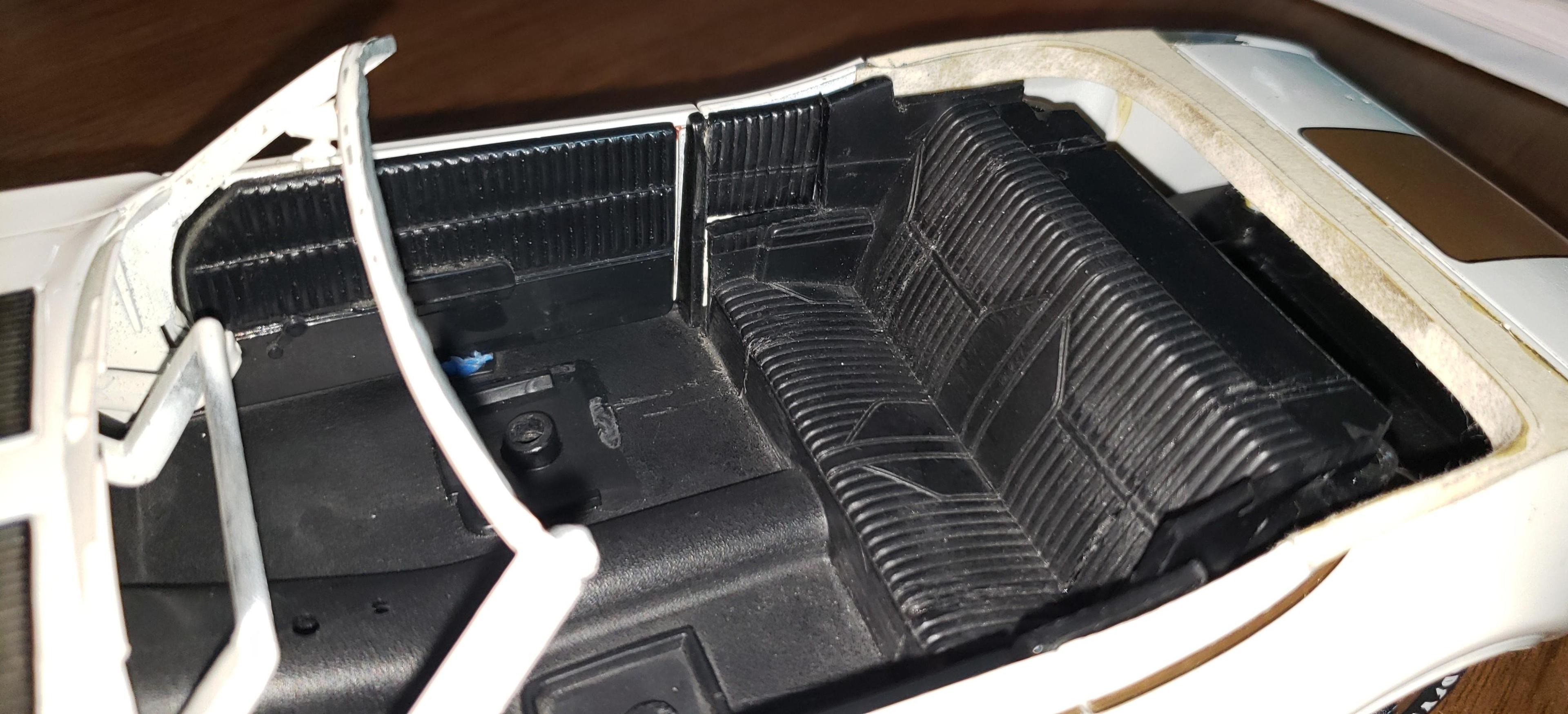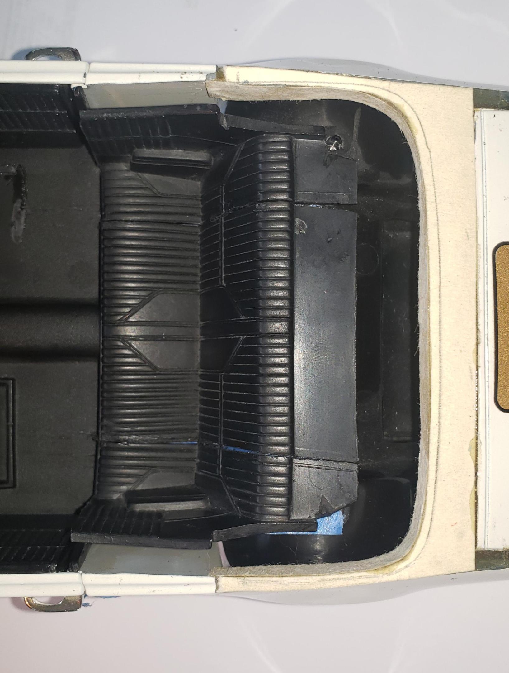 1/18 scale '69 Hurst/Olds convertible buildJ007KLEIN replied to J007KLEIN's topic in Diecast Corner I thought before I glued the side panels back onto the seat portion it might be easier to cut the side panels to create the trim panel offset for the top hinge mechanism.... Next steps will be to form the hinge mechanism surround and arm rest platforms before gluing everything together. Guess I'll need to run to the local hobby shop to pickup some sheet styrene. Until next installment....