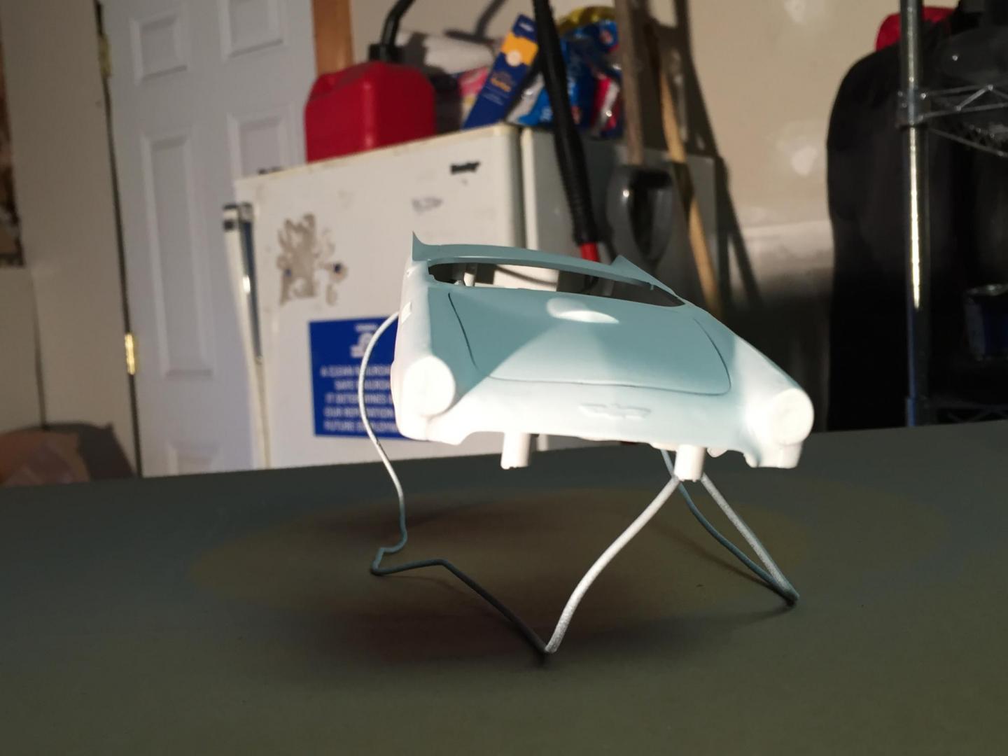 I bought this kit back in 2001. I dug this kit outta my mom's garage a couple weeks ago. I had originally painted it with a Testors Red and didn't like how it looked. It spent some time in the purple pond (you may begin to see a trend here) and I stripped and sanded it all down. I sprayed it with Duplicolor Primer/Sealer and will sand it down tomorrow and spray the second coat. In currently undecided on what color I should do this car in! I've been researching it like crazy and just can't choose one. Hopefully I'll figure that out soon.