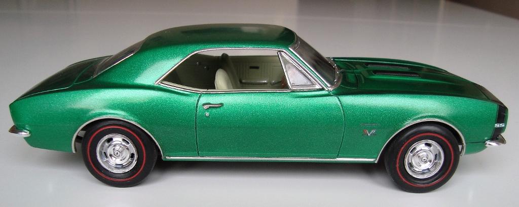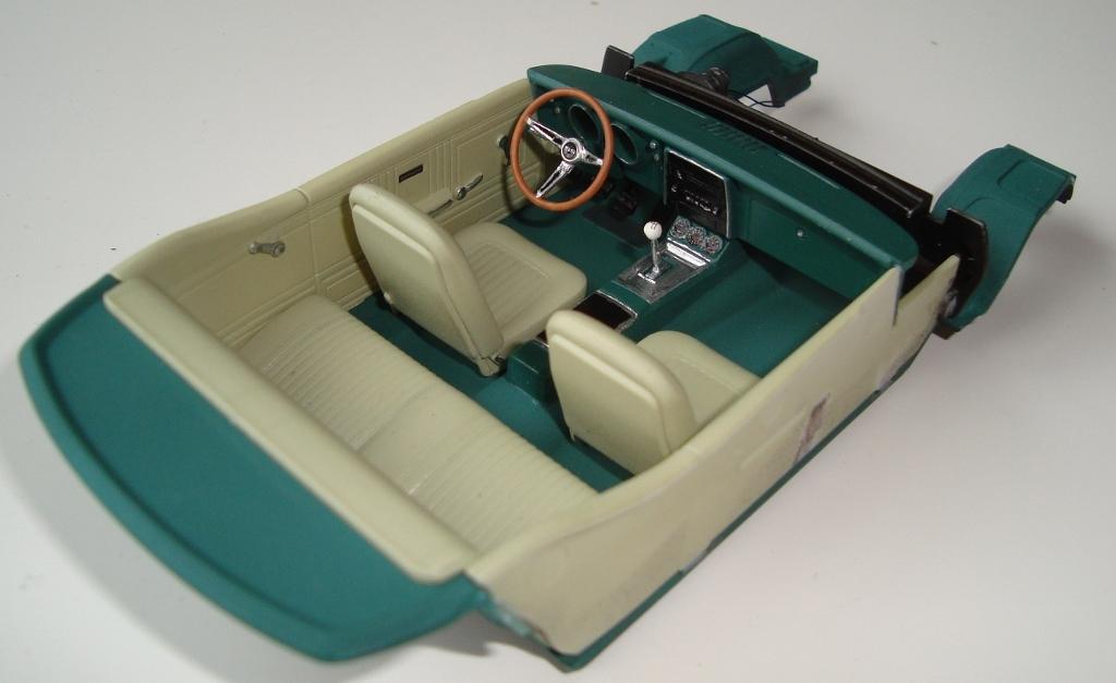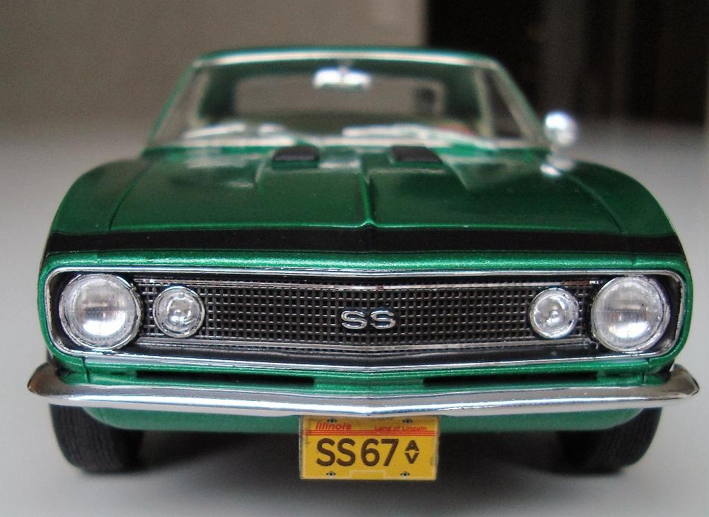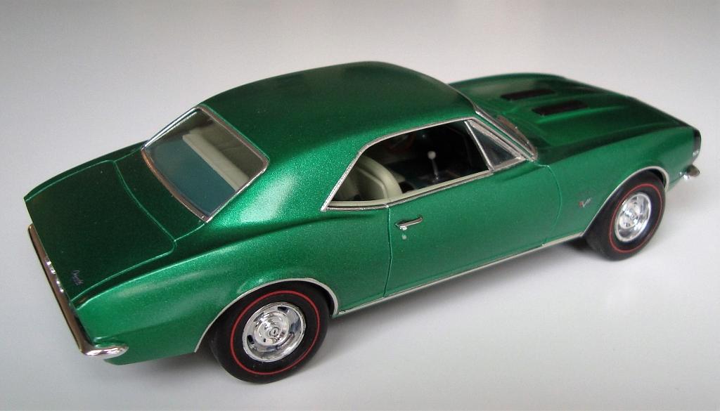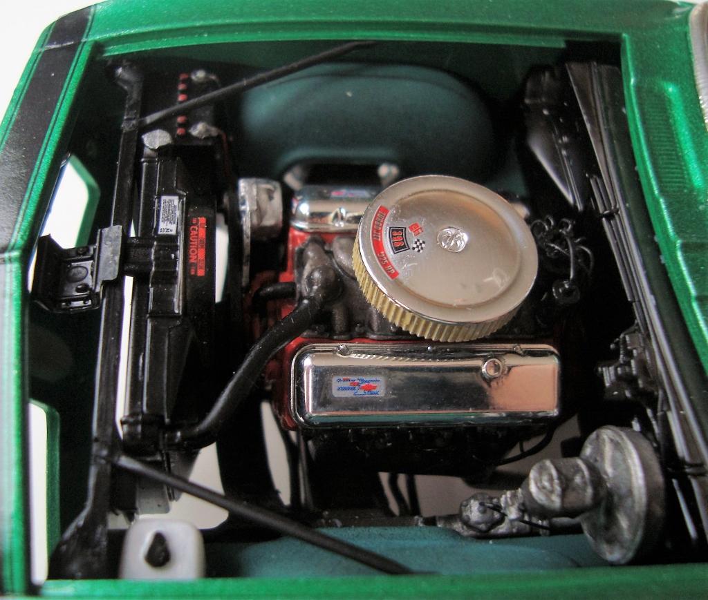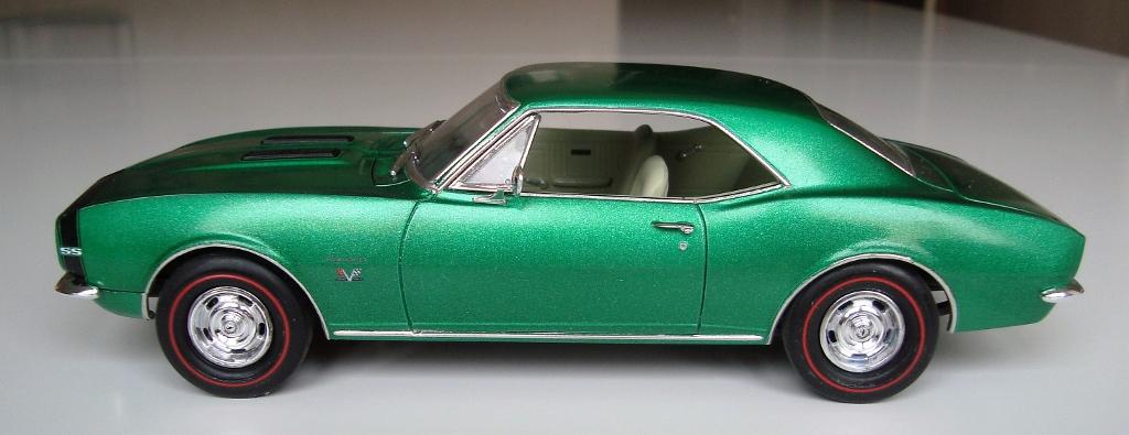 Almost out of the box, added a distributor and some cables. Chose a green interior, maybe not accurate but I thinks it´s ok to Tamiya´s “metallic green”. But I think the metallic is a little “coarse”, maybe I will try another brand I the future. Sanded a little on the louvers on the hood to get them little lower. Added two very thin strips of some chrome sticker on the grill. My black wash in the panel line disappear under the paint
