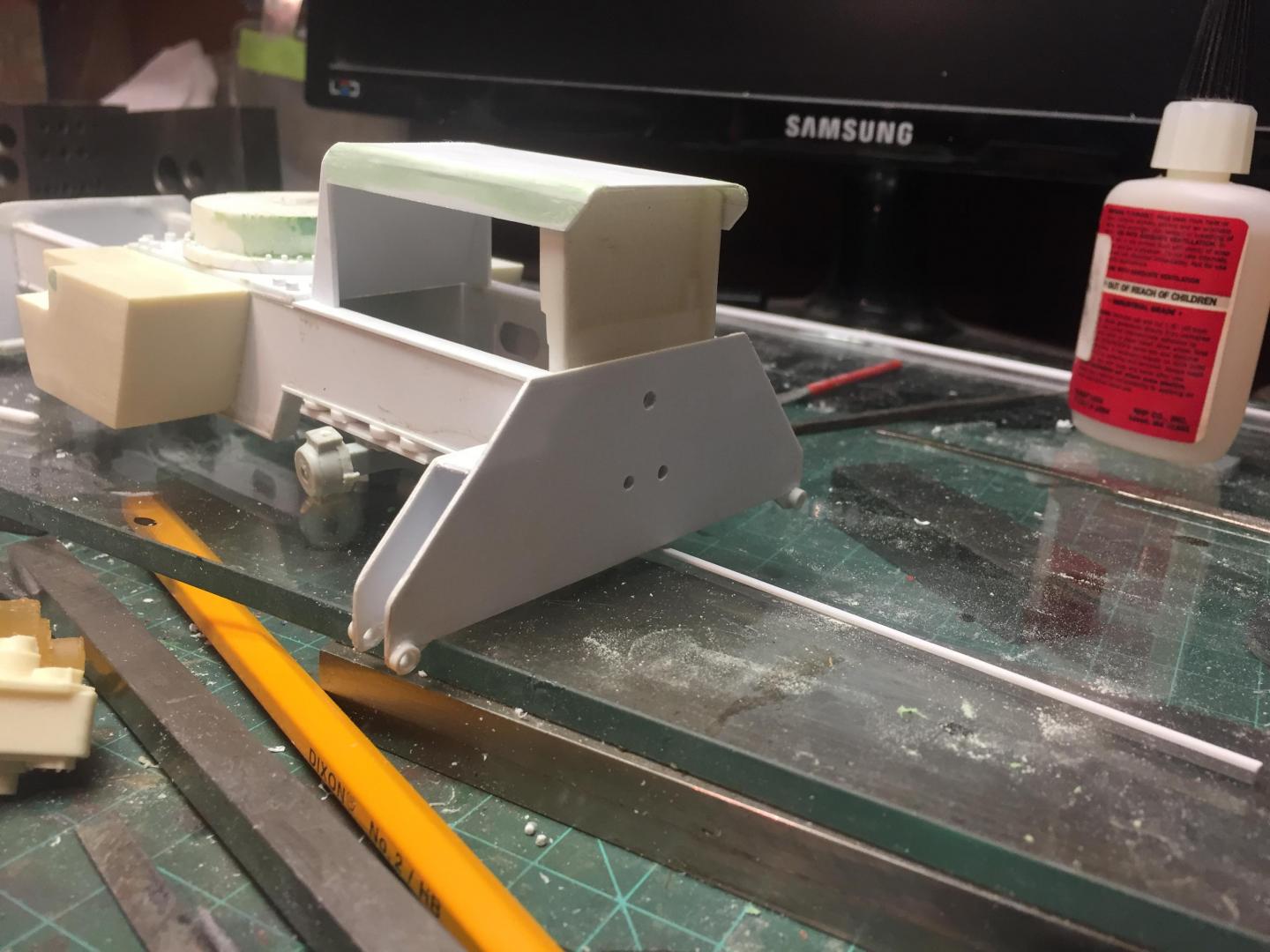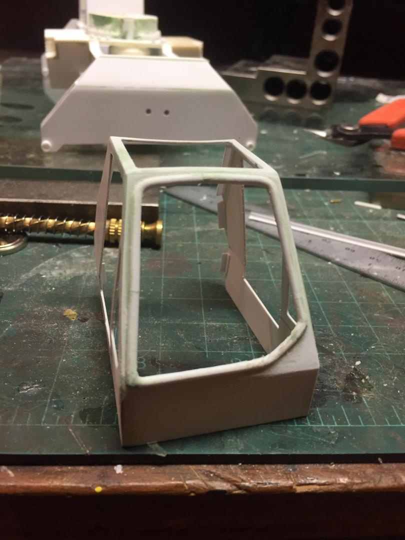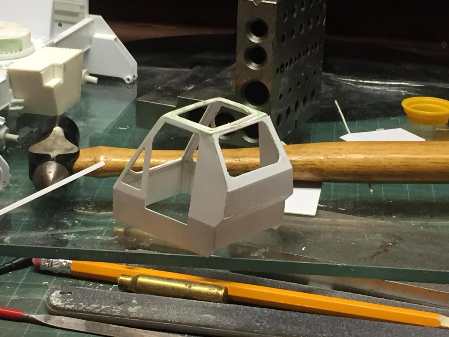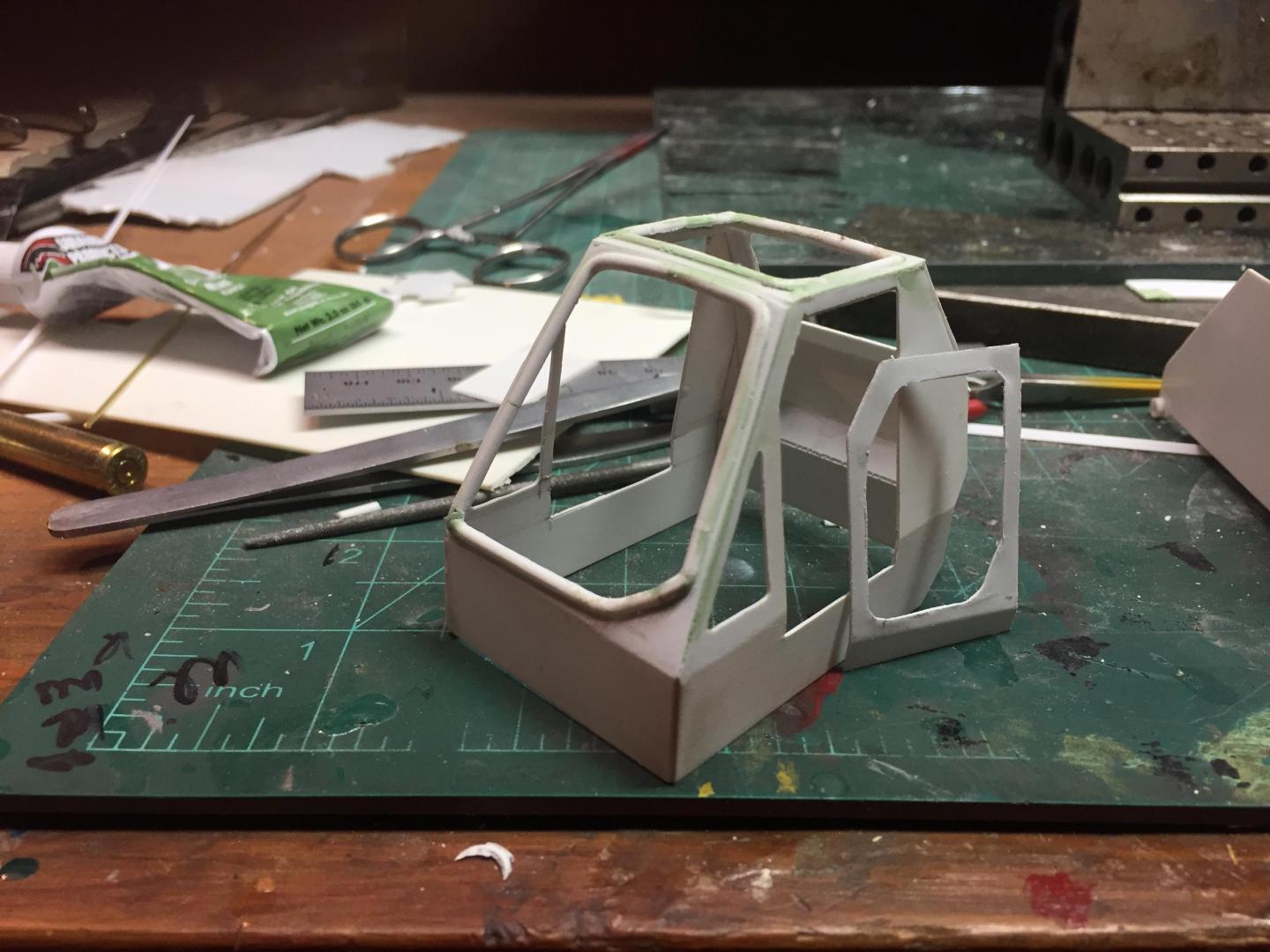 Finally got back to the bench. Life interfered last month in a big way with a vacation and then the passing of an old friend and then my Father-in-law and I just didn't even get within 20 feet of my bench. But, got back at it tonight. The operator's cab just had too many issues to please me, so into the scrap bin it went, and this is Act 2 of the cab. It looks so much better, at least to my eyes.