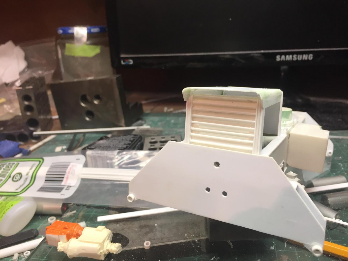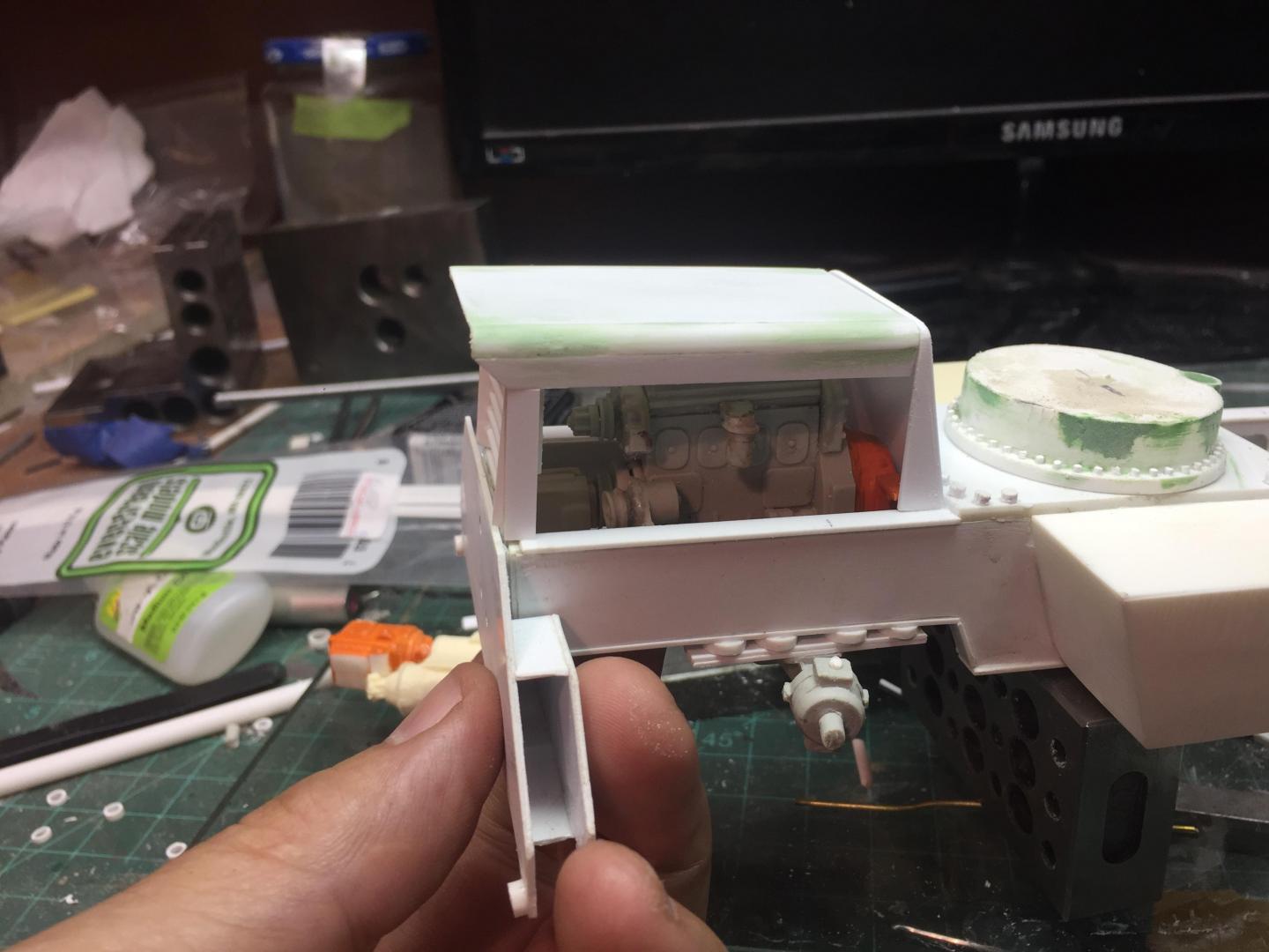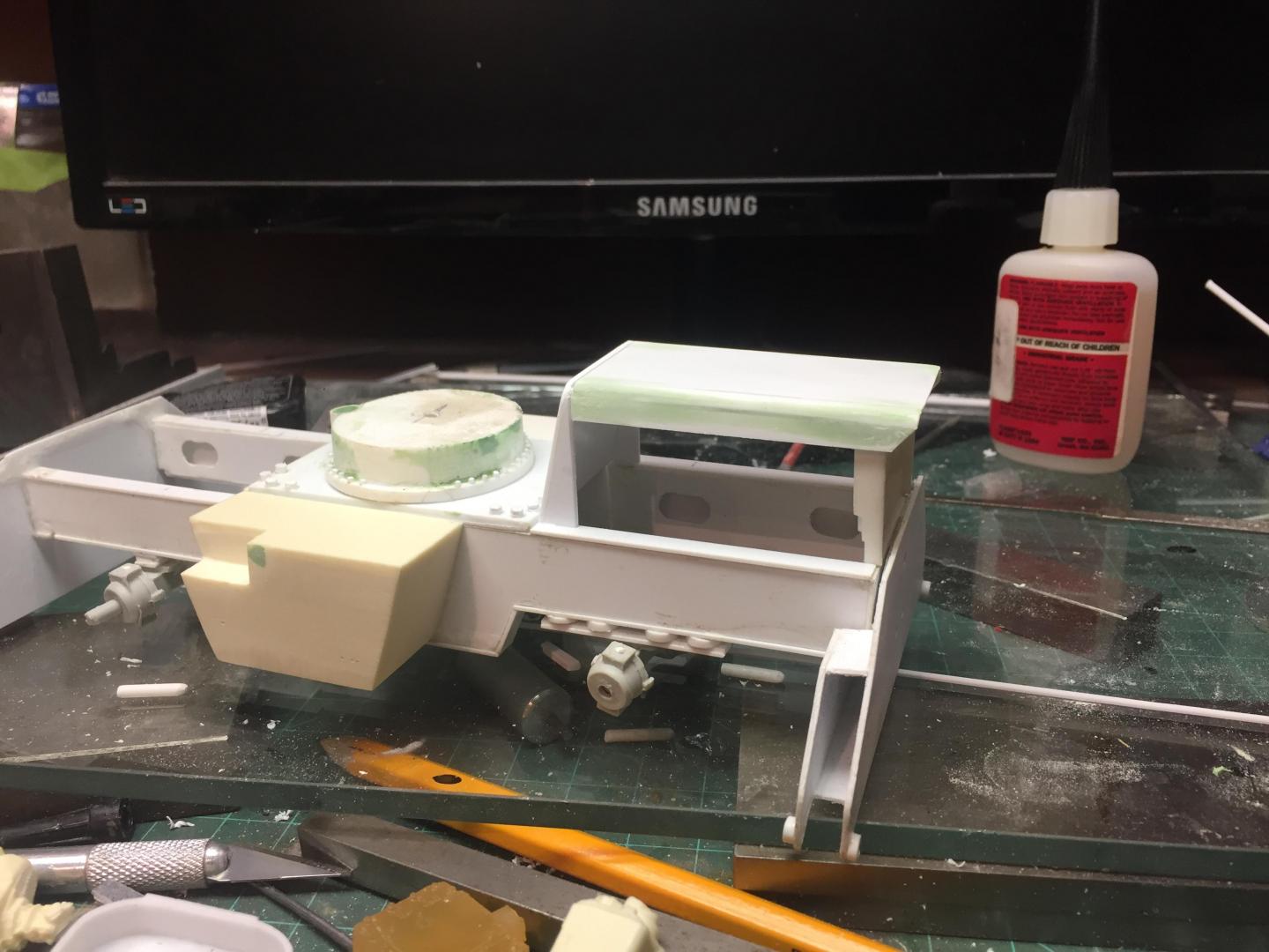 Finally got back to the bench. Life interfered last month in a big way with a vacation and then the passing of an old friend and then my Father-in-law and I just didn't even get within 20 feet of my bench. But, got back at it tonight. The operator's cab just had too many issues to please me, so into the scrap bin it went, and this is Act 2 of the cab. It looks so much better, at least to my eyes.