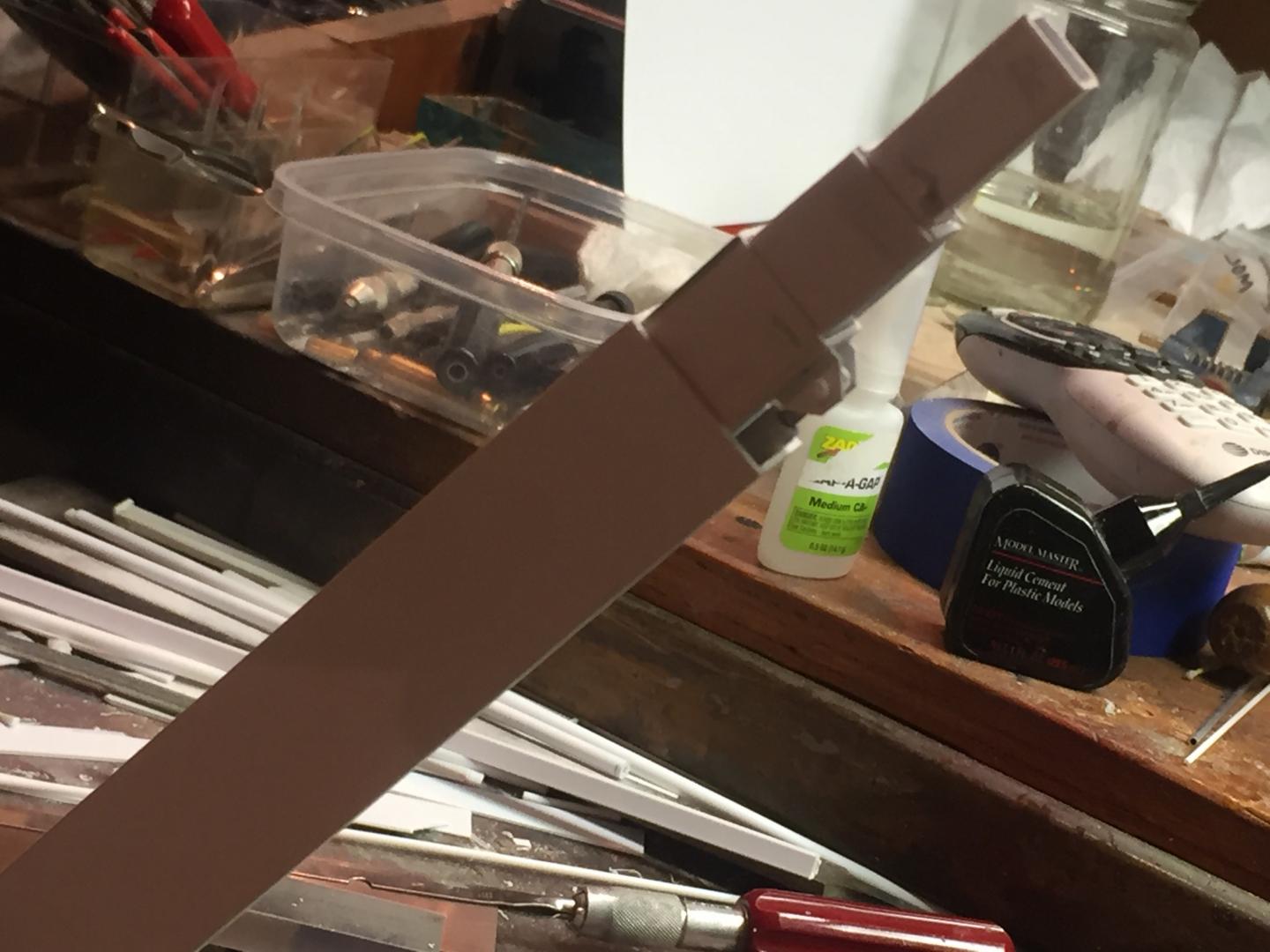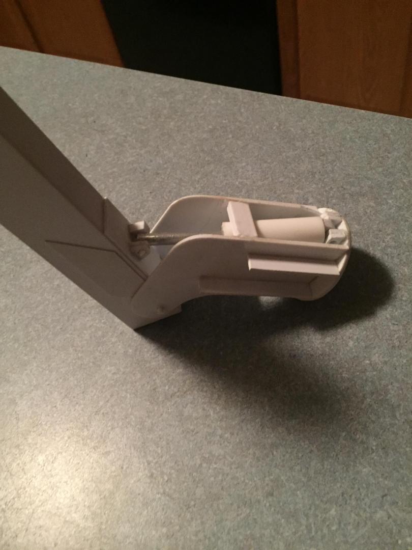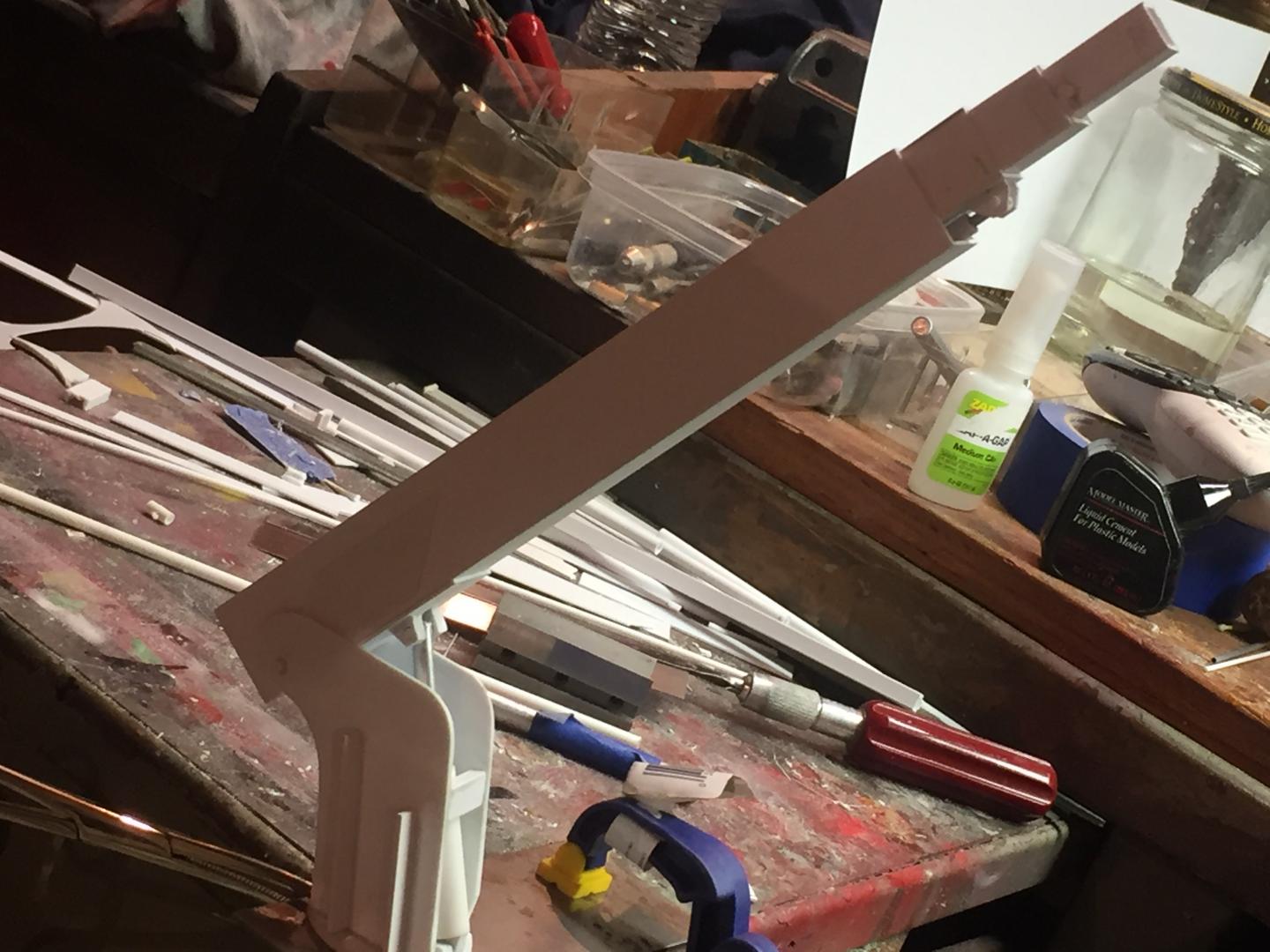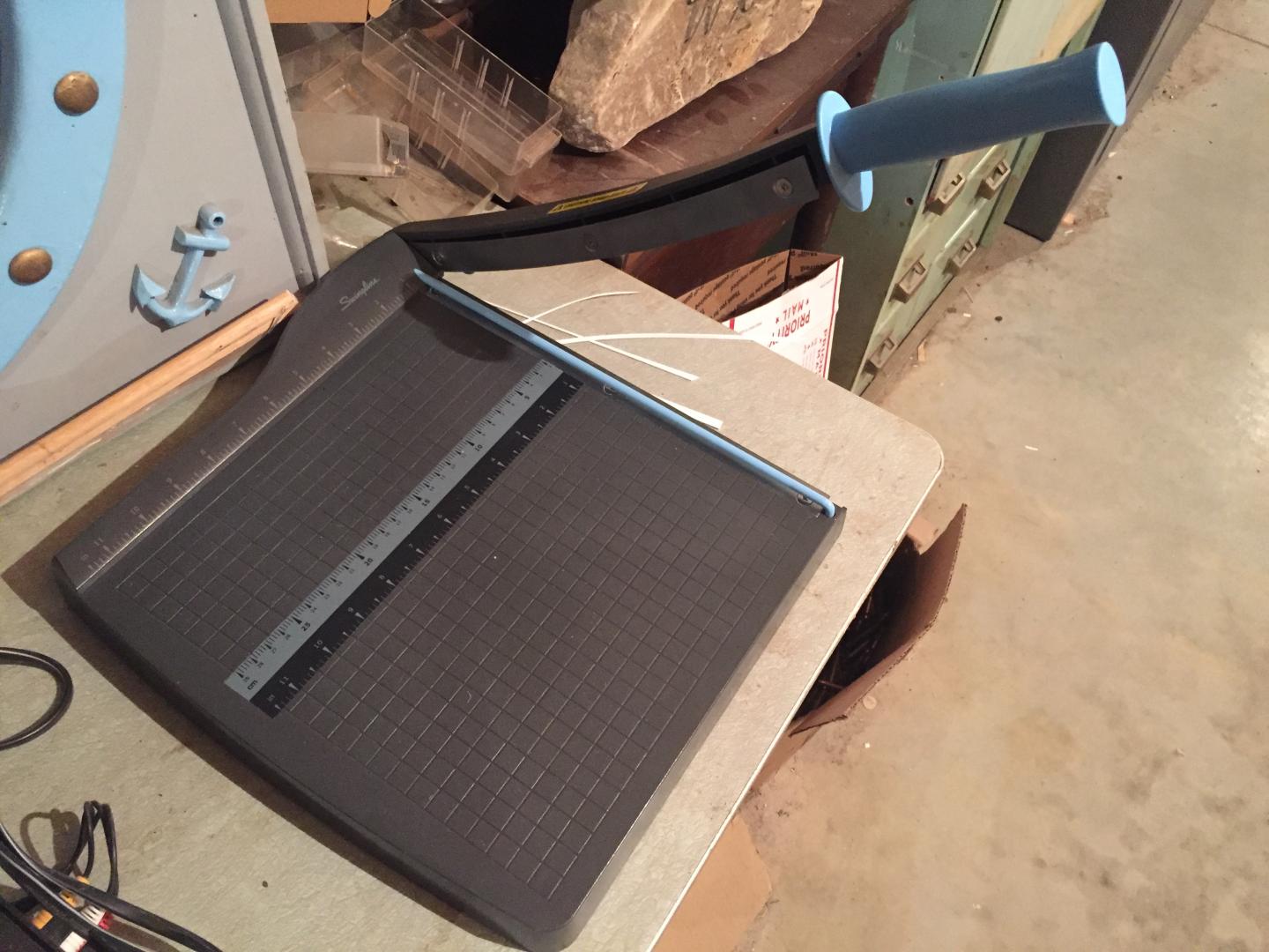 Realized I made the extension boom too big...... it is supposed to be shallower to allow room for the extension cylinder which mounts beneath it. So, cut it down to fit. That's what I get when I build after midnight trying to find time to build. Tried something new to cut long straight pieces of styrene......a paper guillotine. Works great. This is a light duty one that I figured I'd try but will definitely be getting a heavier duty one. Got the hydraulic pump mounted on the front of the engine too. Also put together some proper wheels for it.