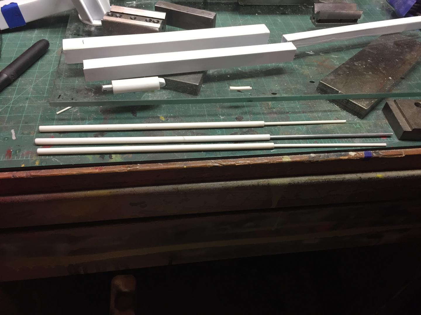 I make the tubes by cutting strips to the size I want. I use a paper guillotine to cut them straight and parallel. I then glue them together using steel parallel blocks to hold them at right angles. If you look back into previous posts on this thread you will see how I do it. There are some tube sizes available from Evergreen and Plastruct, but just not what I needed.