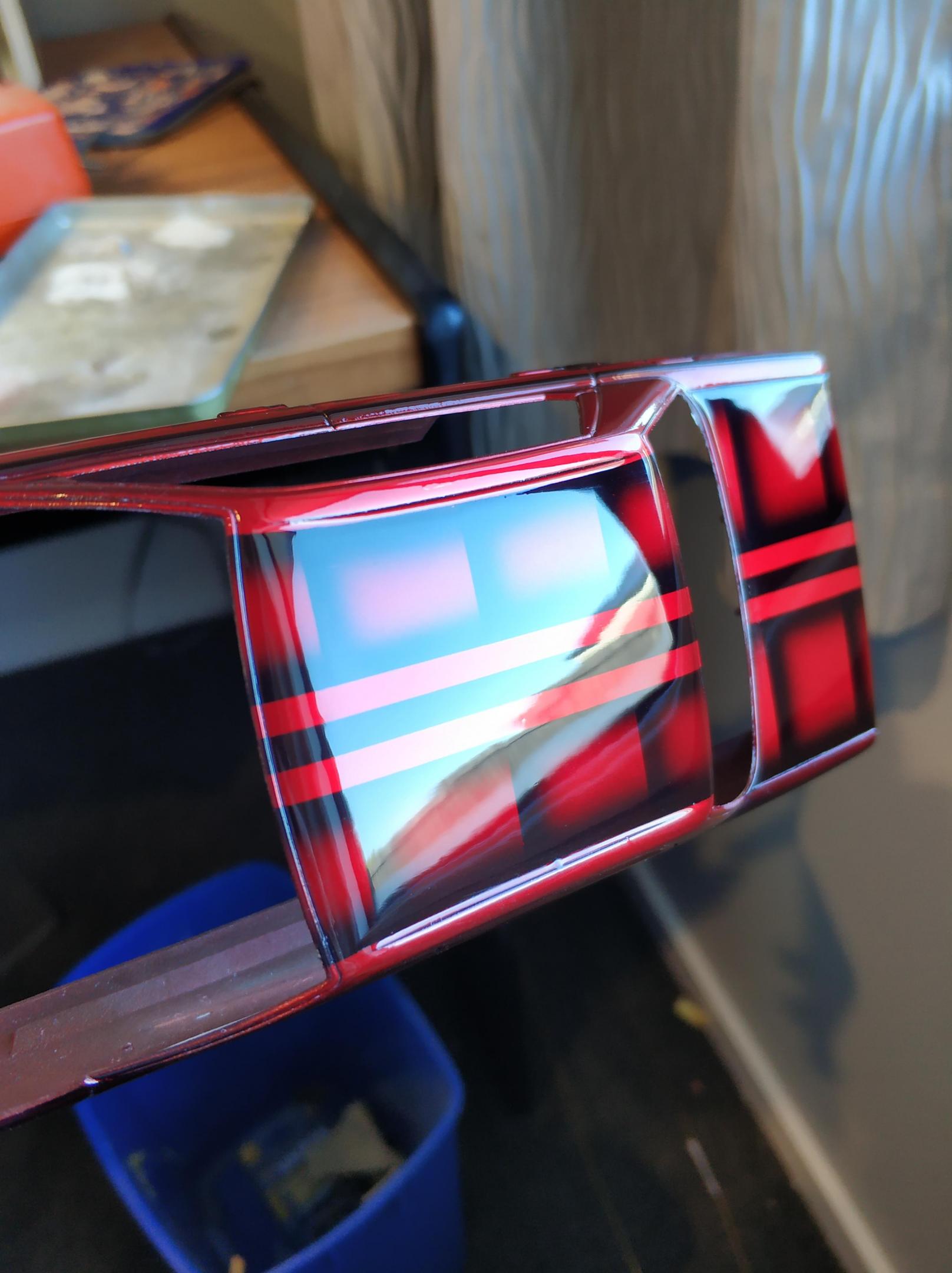 Thanks, Tamiya LP Clear Red lacquer and 2k clear over the top. FYI do not use the Tamiya Acrylic Clear Red as it is more like orange! I have 2 bottles and they are both the same.