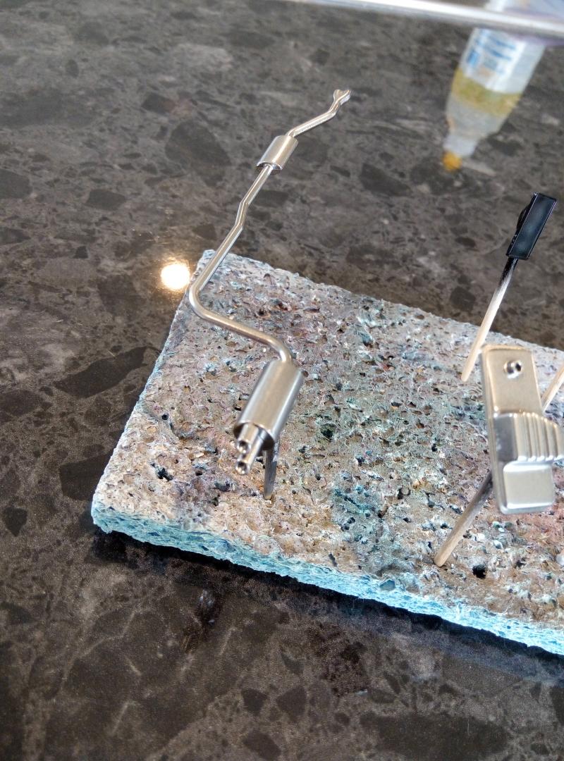 Hi guys, I tested the E7 paints shine chrome on a couple of parts. I think it came out looking like a good match for stainless steel. I also cleared the parts with their chrome sealer with no dulling evident. The photo of the chassis, shows the shine chrome on the left and aluminium foil on the right.