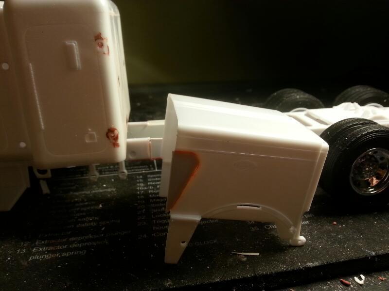 Thanks gator I love the tridem idea I was thinking of adding a tag axle and a scratch headache rack just haven't got that far or figured out exactly how I'm gonna do it got I bean cross members in gonna make a frame plate and get everything filled and sanded so the frame can be painted red Aldo gonna try to make rear fenders from vitamin bottle like I saw on any other thread