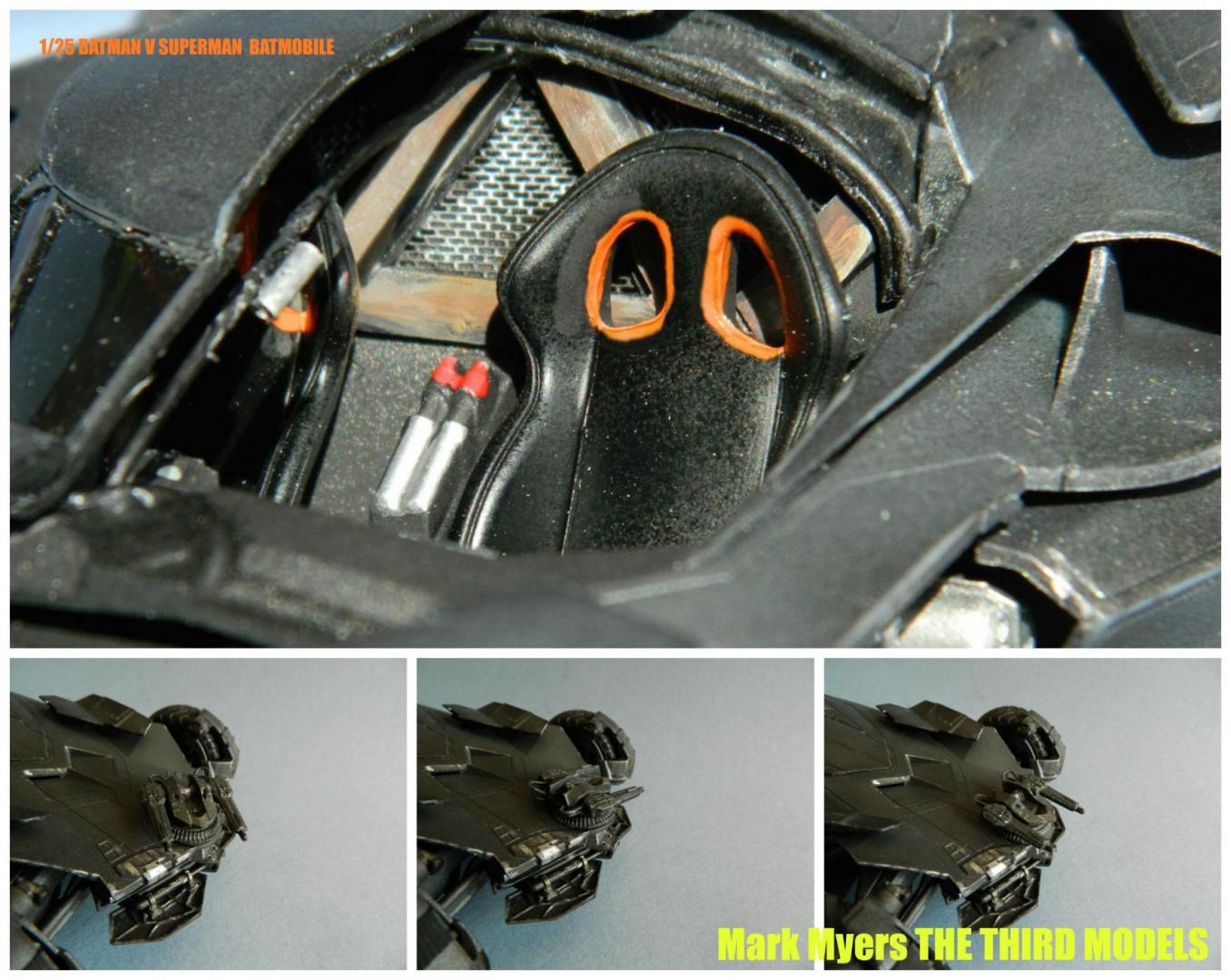 My Moebius 1/25 BATMAN V SUPERMAN Batmobile build...I have scratch built an interior per the full size prop and added a customized Figure to reflect the new Batman. The interior was done with sheet styrene, brass tubing, aluminum tubing, photo etch,wire etc...Next up lighting...