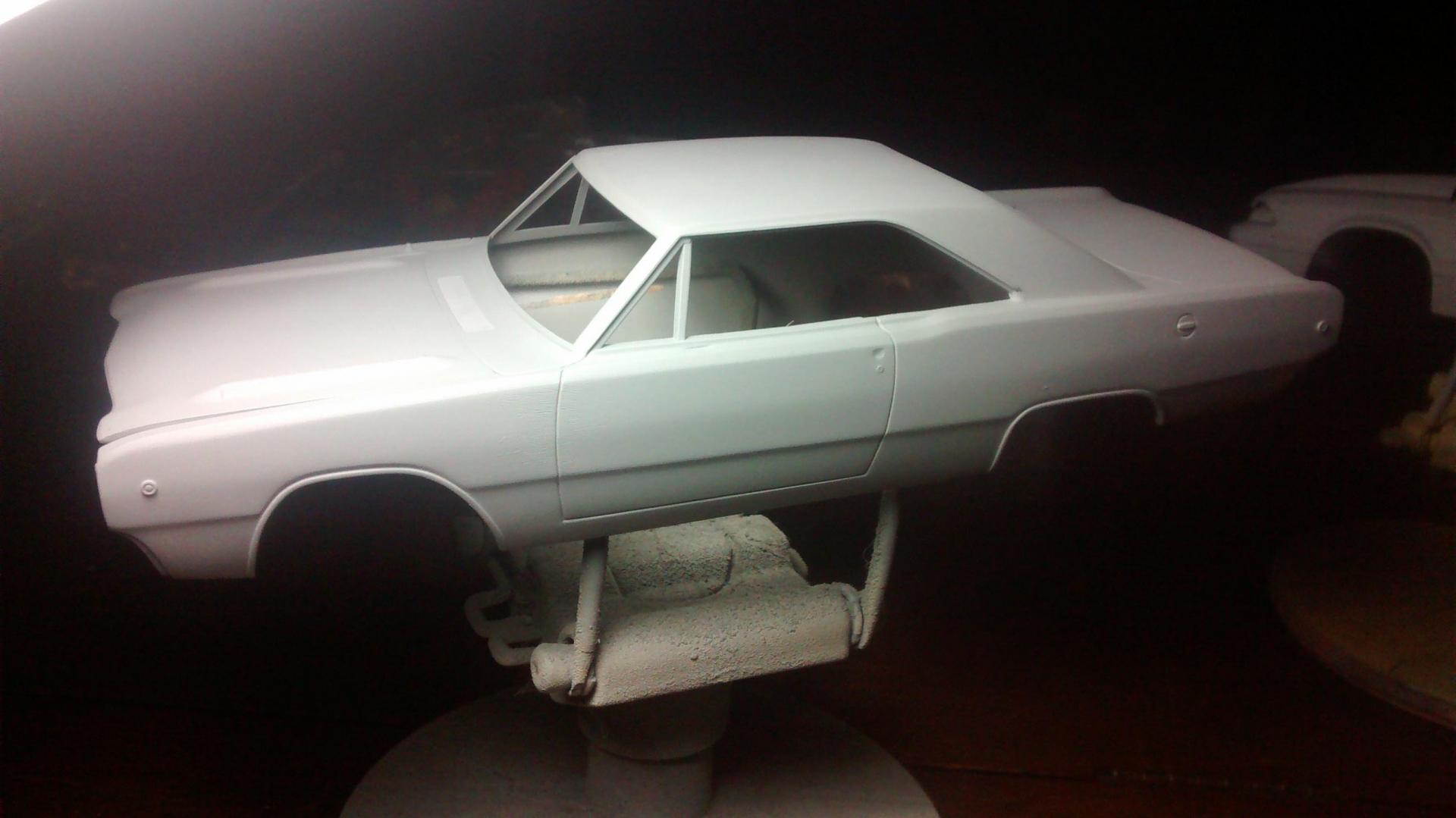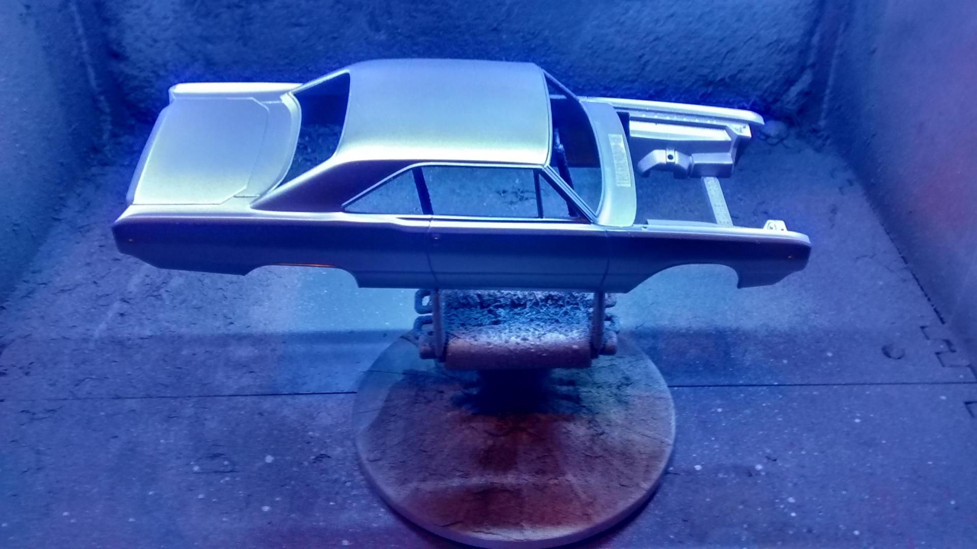 Got some gray goo laid down today. I was originally going to use a black primer, but Landy's cars appear to be a brighter silver, so gray should work good for the undercoat. I must say, it's a joy working with gray primer as opposed to my usual white. Being able to actually see how much you're putting down makes life soooo much easier lol