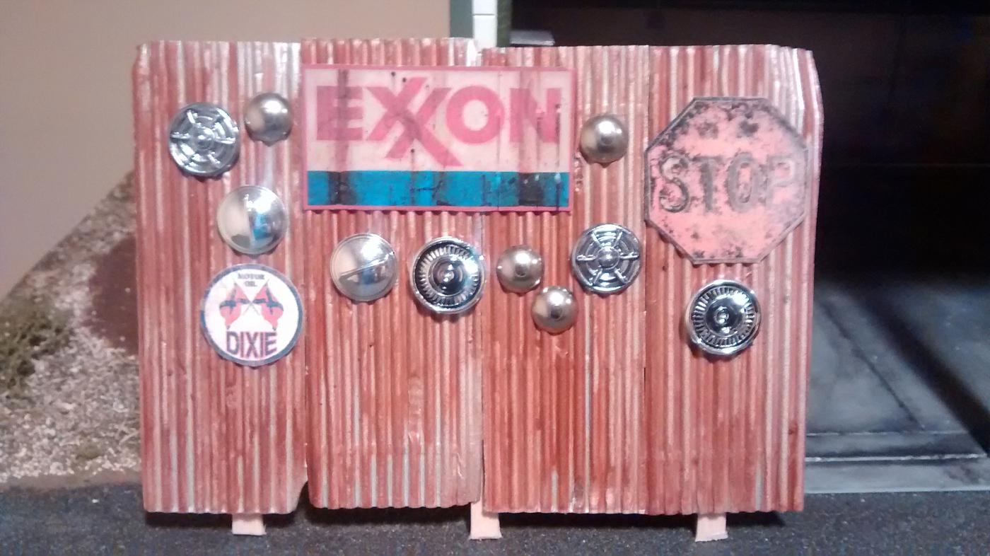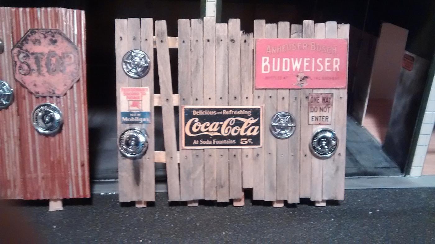 Taking a break from the base, I started work on a fence for the background. The fence is simply craft sticks with some nail holes drilled and a little black/white wash to give it some character