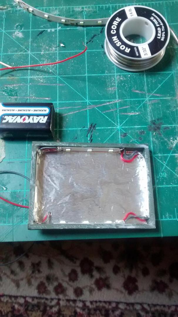 Thank you. They're LED strip lights with pre-attached resistors I got from eBay. They're easy to wire, are adhesive backed, cool running and use almost no power. They're also cheap. The whole setup for this ran me about $13 including the 15v adapter. If you've never used led's, I do suggest doing a little homework on them. They're very sensitive and easy to blow if you use too much power. Don't ask how I figured that out haha