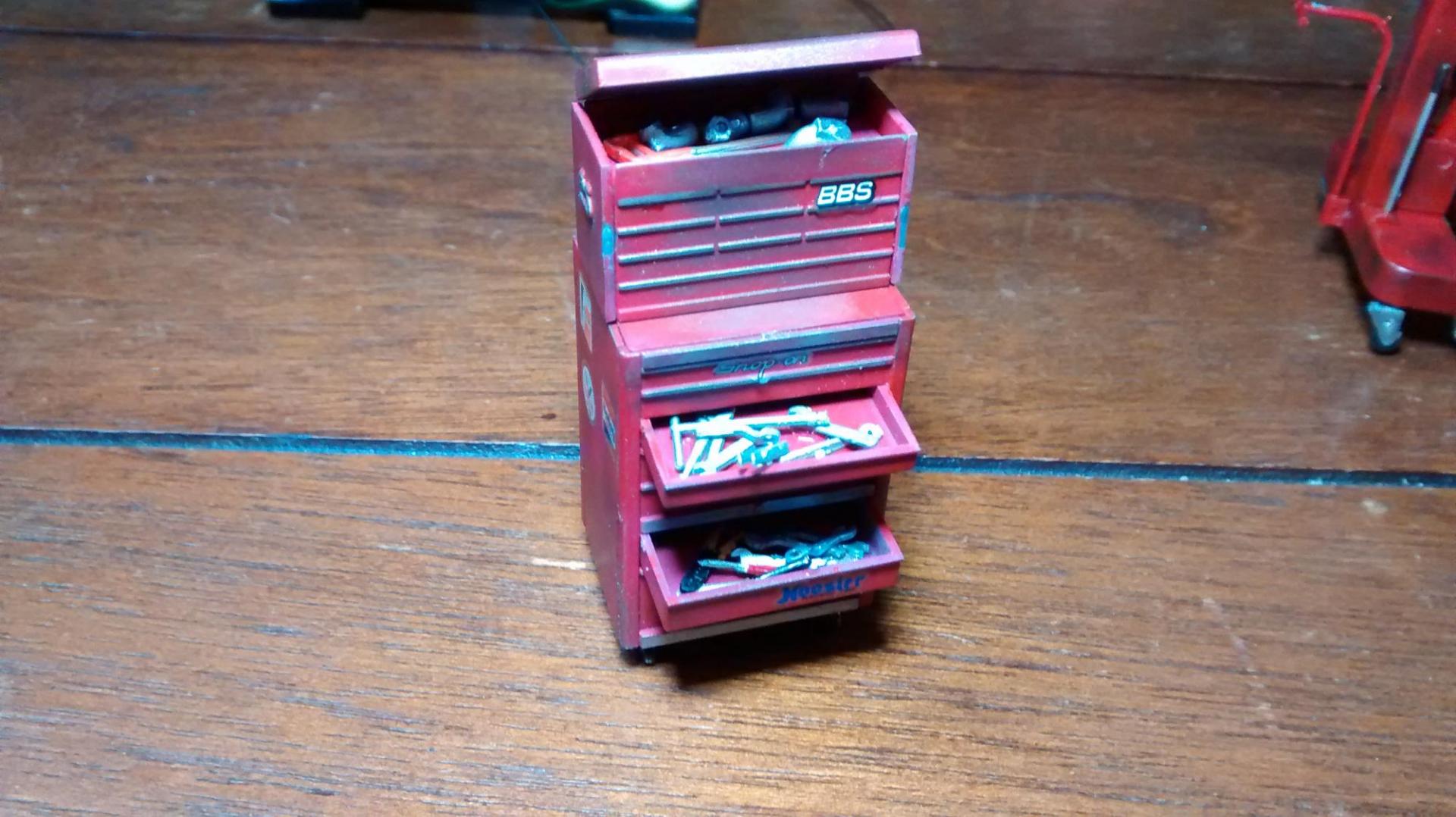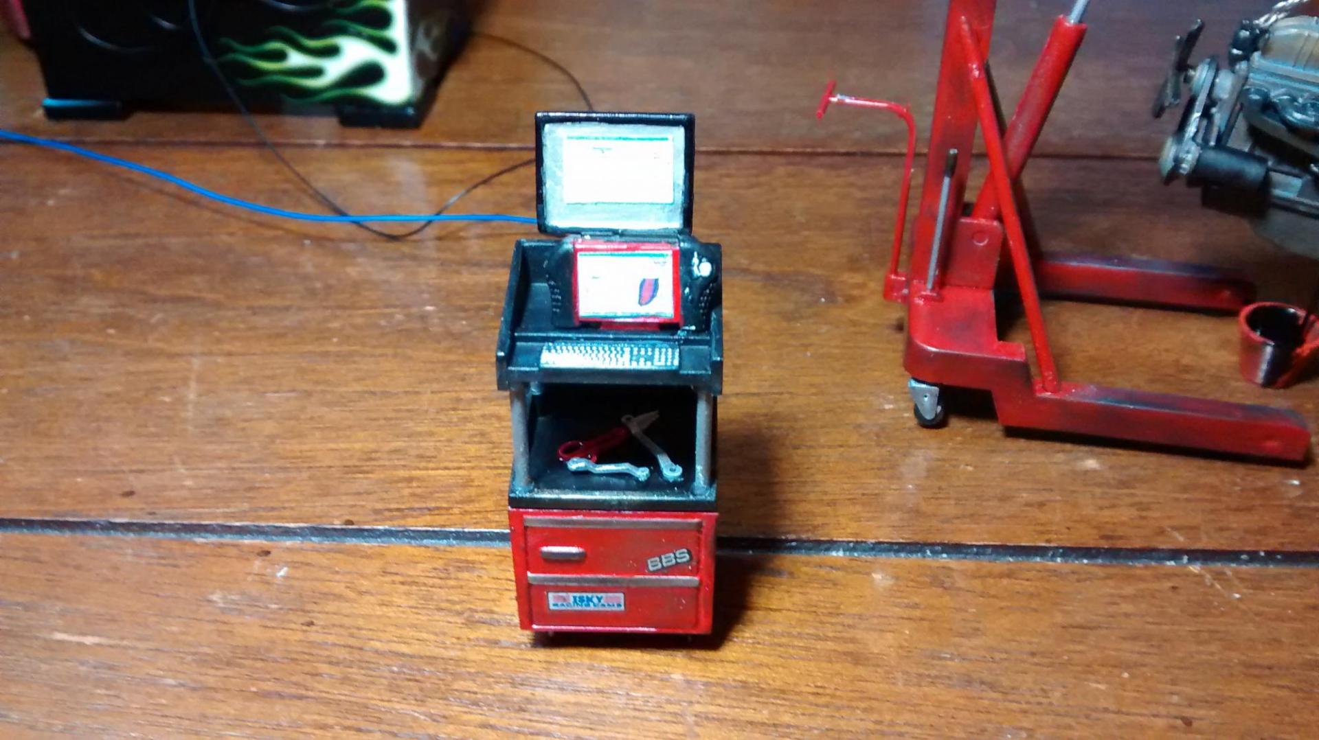 As great as these tools look out-of-box, more detailing and weathering had to done. The diagnostics machine got a few realistic screens slapped on it, once again just pics from google