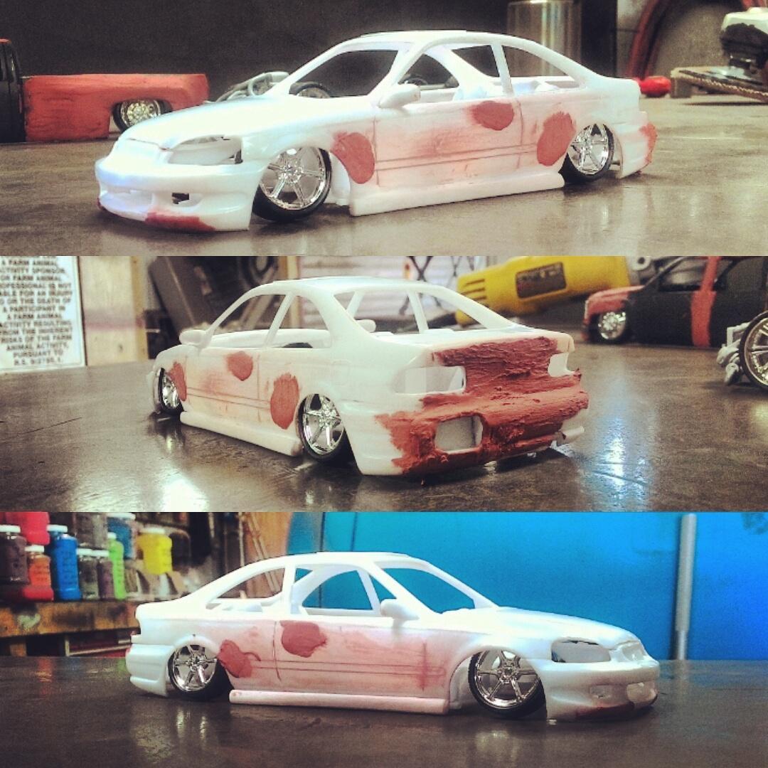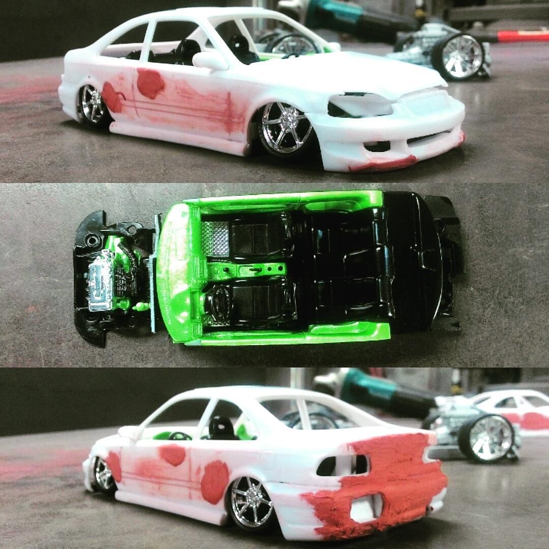 Both cars together..and a current picture of my civic..I shaved the molding lines,deck lid and door handles.made a license plate box go into the bumper