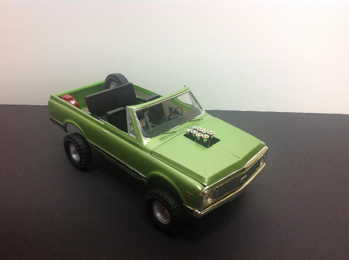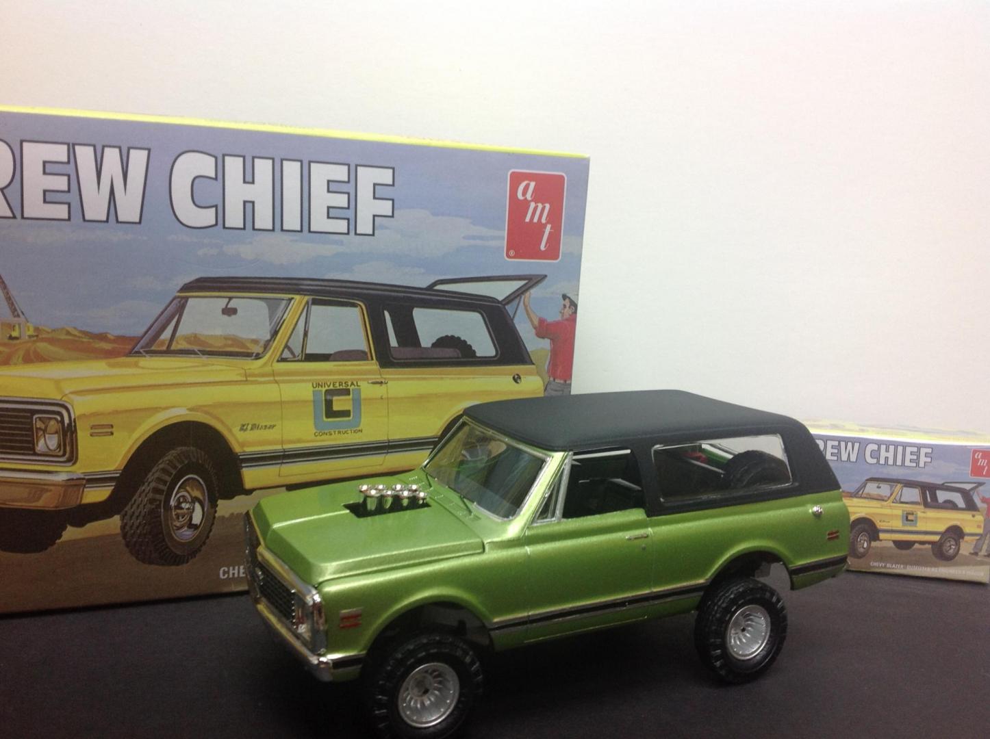 Here's my build of the AMT Blazer Crew Chief. Painted Model Master Citrus Yellow with no clear coat. The foiling is a little rough but it was the biggest undertaking I've done yet. I wish now I had not cut the opening in the hood and used the injector stacks,just a little late now?. Also for some reason I never black washed the wheels. To bad there are no mirrors in the kit.