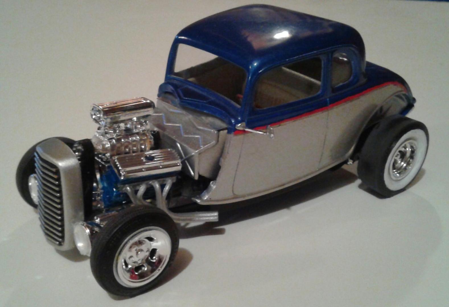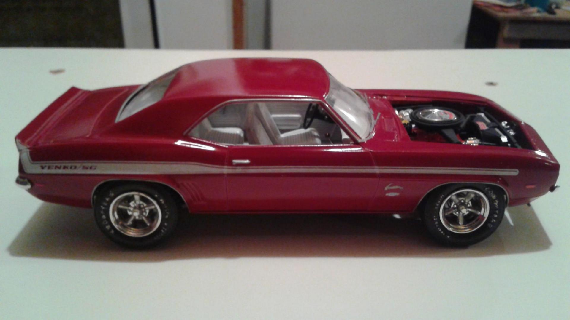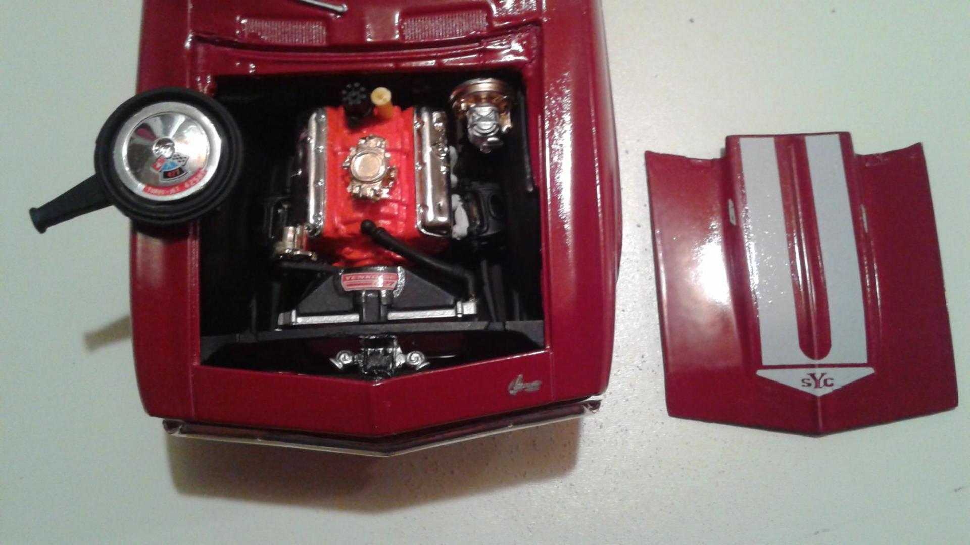 This one was molded in yellow and assembled unpainted. Found at an antique mall for 10 bucks, i got it because the decals were untouched. Big issues included the hood glued to the body, And i had to smash the taillights to get them out. Other than that, it blew apart easily, and i built it box stock. Paint is Duplicolor Burgundy.