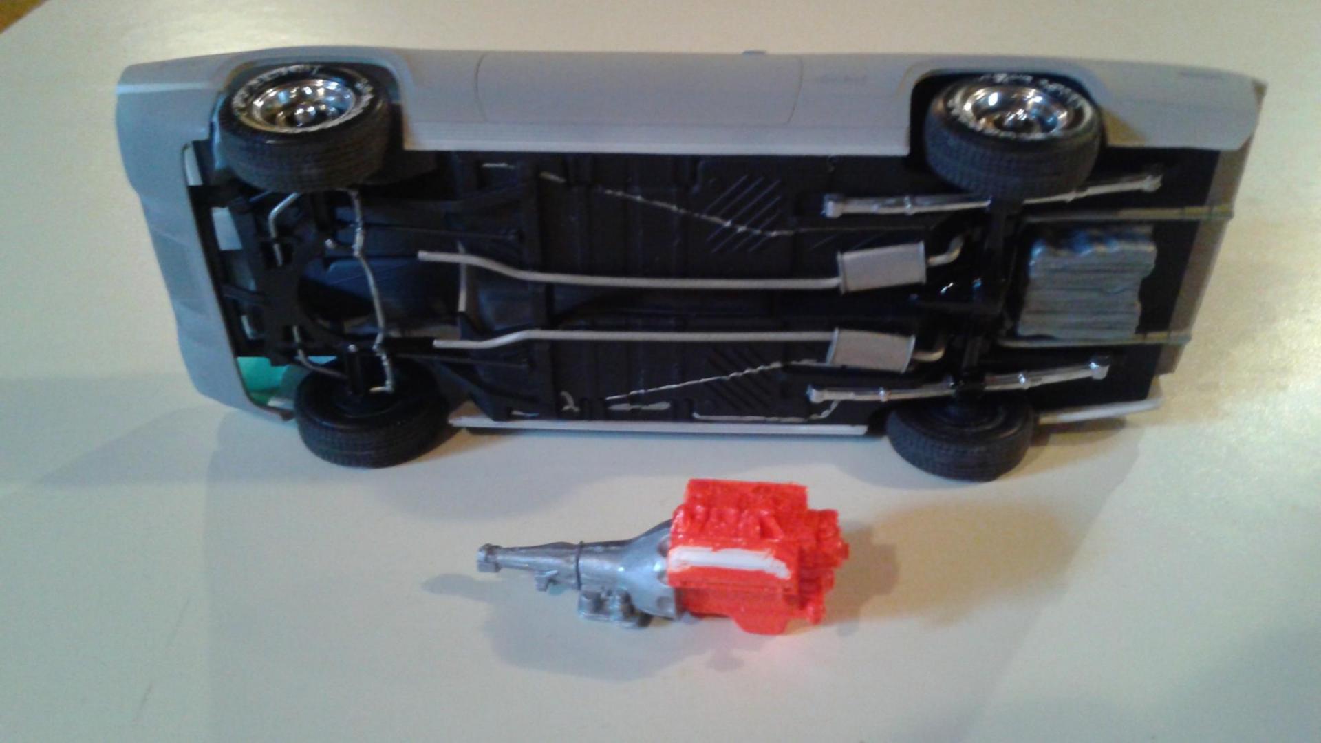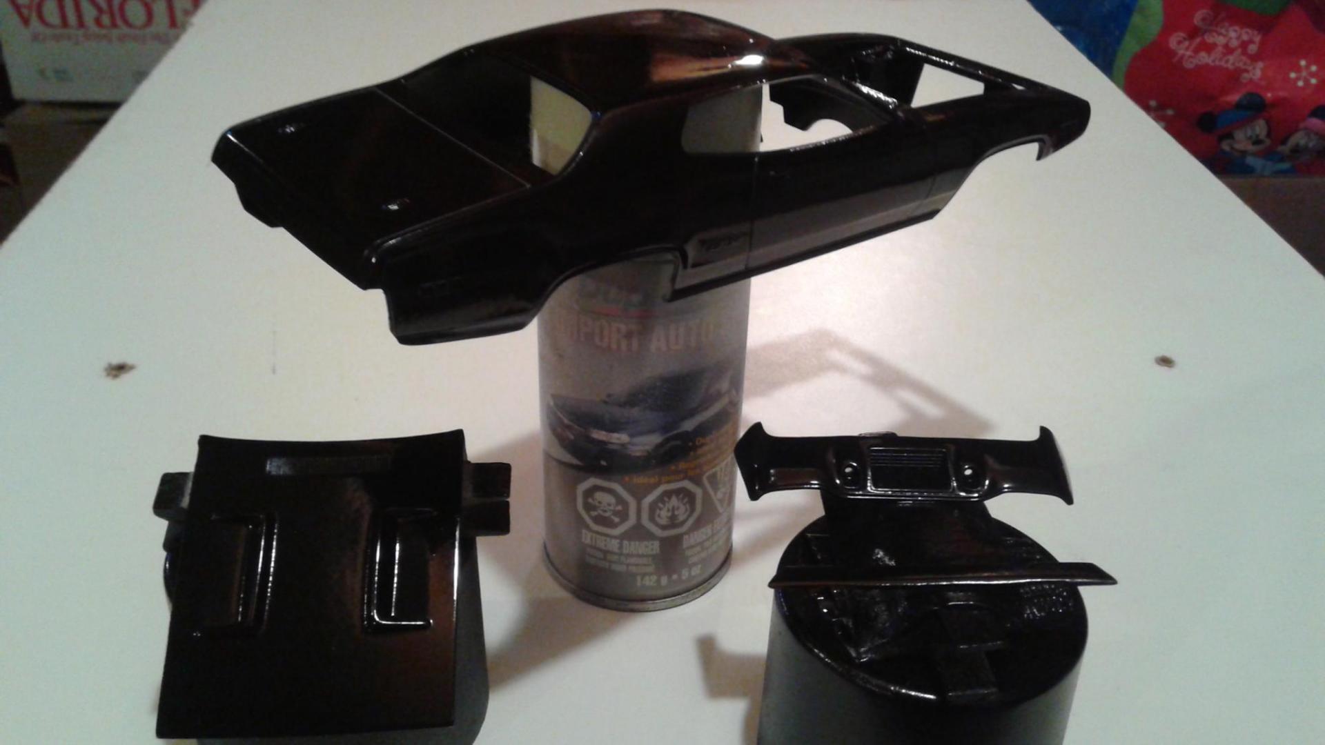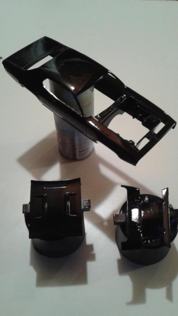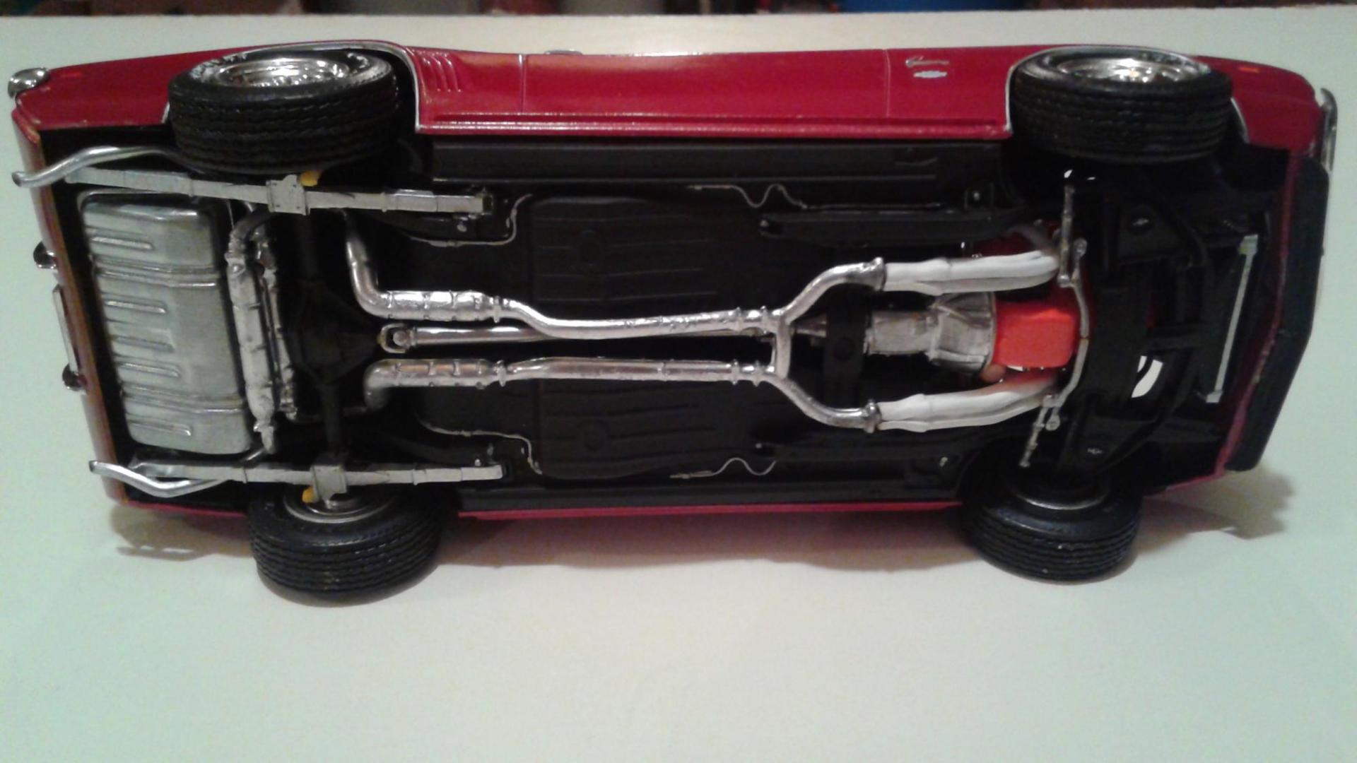 I am still trying to decide paint/interior colours. Should i go high-impact, or use a softer colour? Chassis is almost done, just finishing up the 440 six-pack I am using the better, wider wheels and tires from the older Revell 'Cuda kit Front and rear spoilers are being used, but i am using a slightly bigger deck spoiler from an old AMT kit
