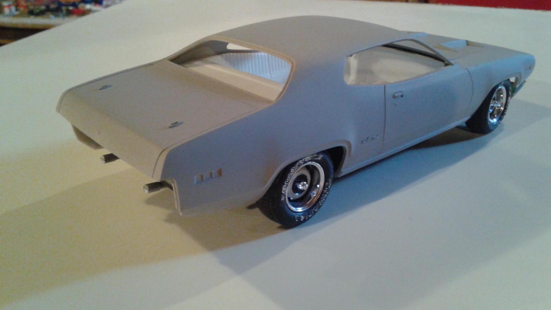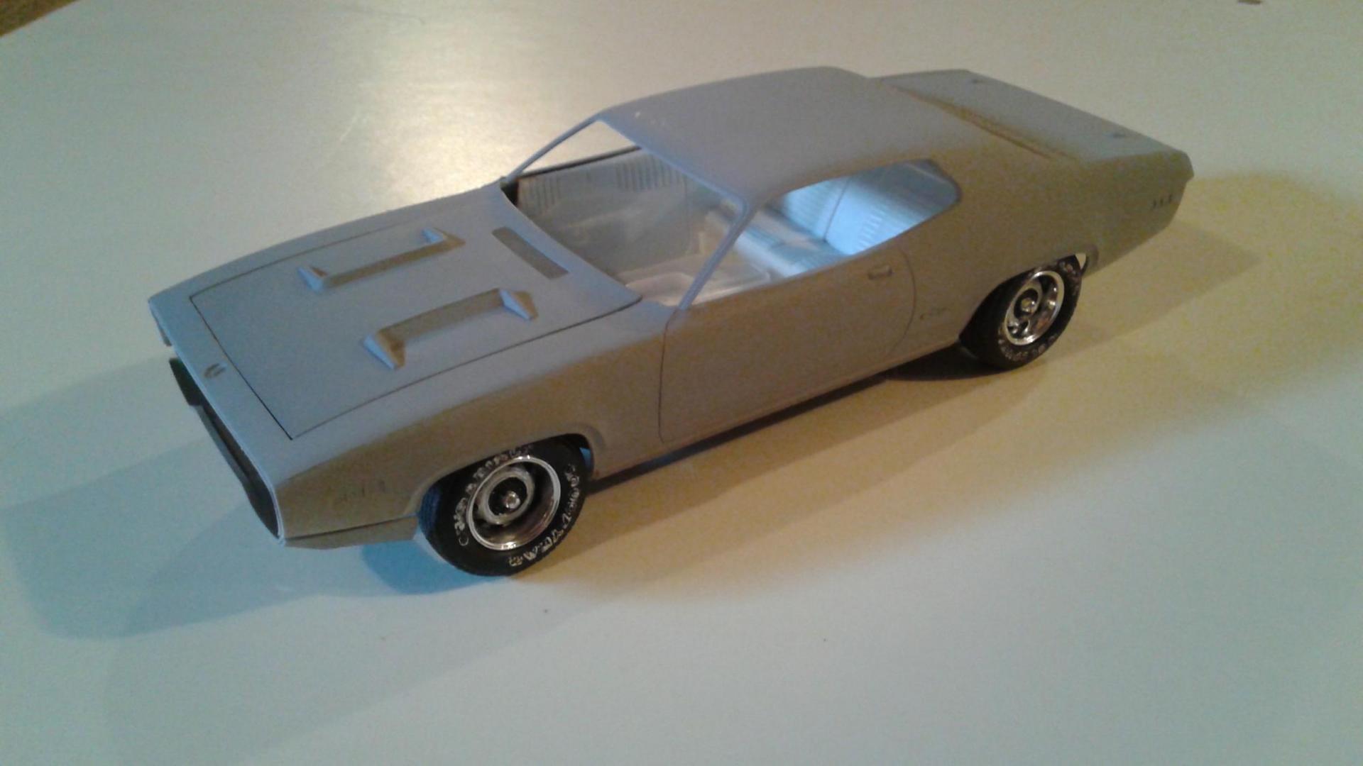 Well, back in the '80s Monogram made this kit minus the GTX emblems, And this was the hood feom that kit. I found a built up kit on ebay years Ago for cheap, so i grabbed it just for the hood. My lower front end piece seems to fit okay, but it will Require some body filler I think. -