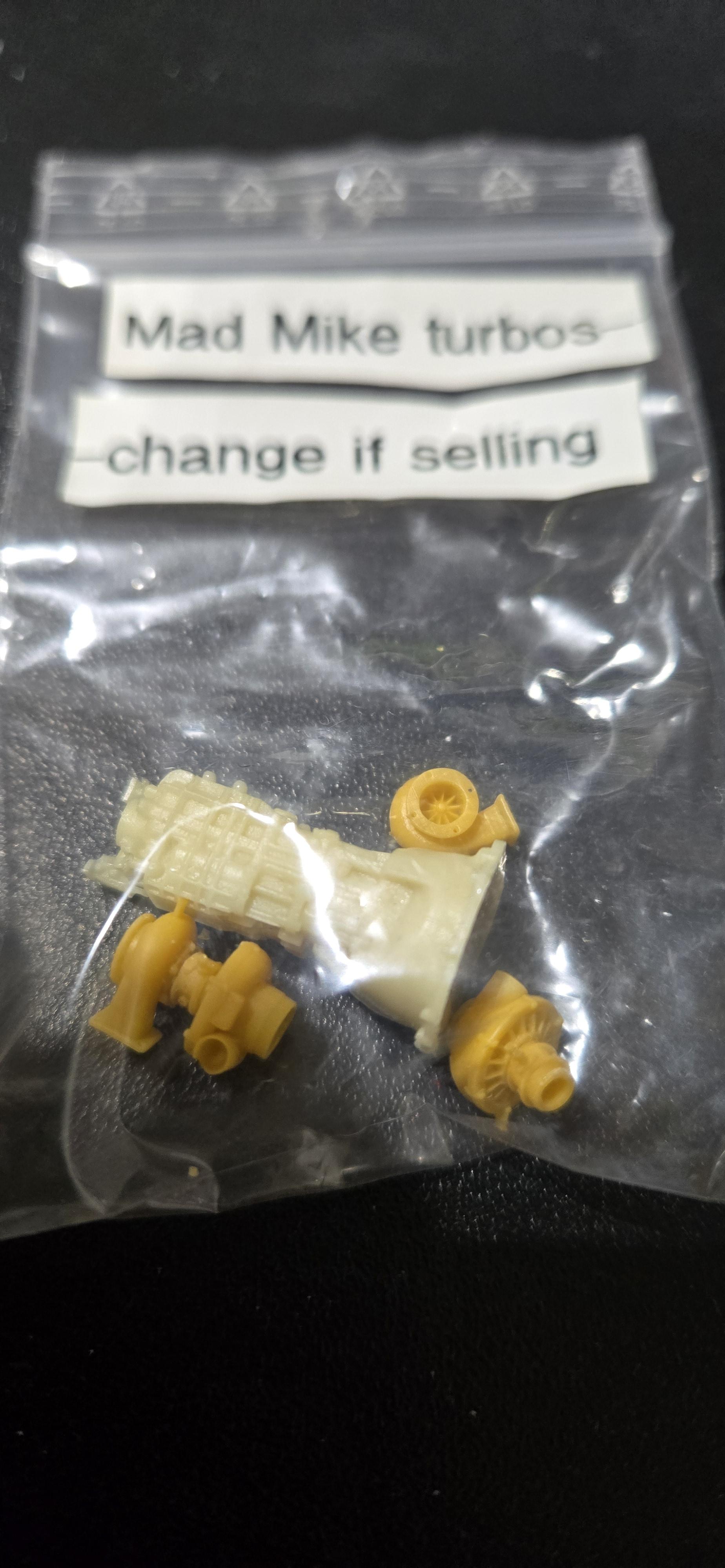 I have a few things there to move. First is a Revell Datsun 240Z. I acquired this one as part of a collection. It's been started, and slightly modified. Someone with skills could turn this into something cool. Has a bunch of Clearly Scale pieces in the box (not the original box) and it appears to be mostly complete. Might need some parts. I have literally boxes of spare seats, so will grab a handful and include those. I also have a bunch of Clearly Scale engines. These are the actual built engines that were used on the CS website. So let's call them the development/prototype engines. They appear to be 1/25 scale. They are labelled as: LSX 442/454 LT4 Supercharged Corvette ZR1 (C4) Hemi 528 Procharged One of these would look pretty sweet in the 240Z above. Also have this Honda VTEC resin engine. Appears to be complete. Model Meister appears to be the caster. Also have these three Viper V10 engine/tranny combos. Whatever this engine is from the AMT 1976 Gremlin kit. Turbos from Mad Mike. Who I'm assuming is/was a resin caster. I guess this will include a transmission of some kind. Also have a handful of Mad Mike, Clearly Scale, and kit Ford engines that might become available. Have a deal pending on those right now. WIll add to this post if they become available. Anyone, will trade the Datsun, and some of the engines, or maybe all of the above for one of the following: Porsche Land Rover / Range Rover - espeically the Aoshima Range Rover Classic British subject matter - Jaguar, MG, Taxi, etc. Touring car - Tamiya BTCC Volvo or DTM Mercedes Italeri truck or trailer - prefer Volvo FH and the racing trailer Dodge pickup of some kind? Tamiya/Fujimi/Hasegawa kit? Surprise me. Airfix Shaun The Sheep Land Rover Thanks