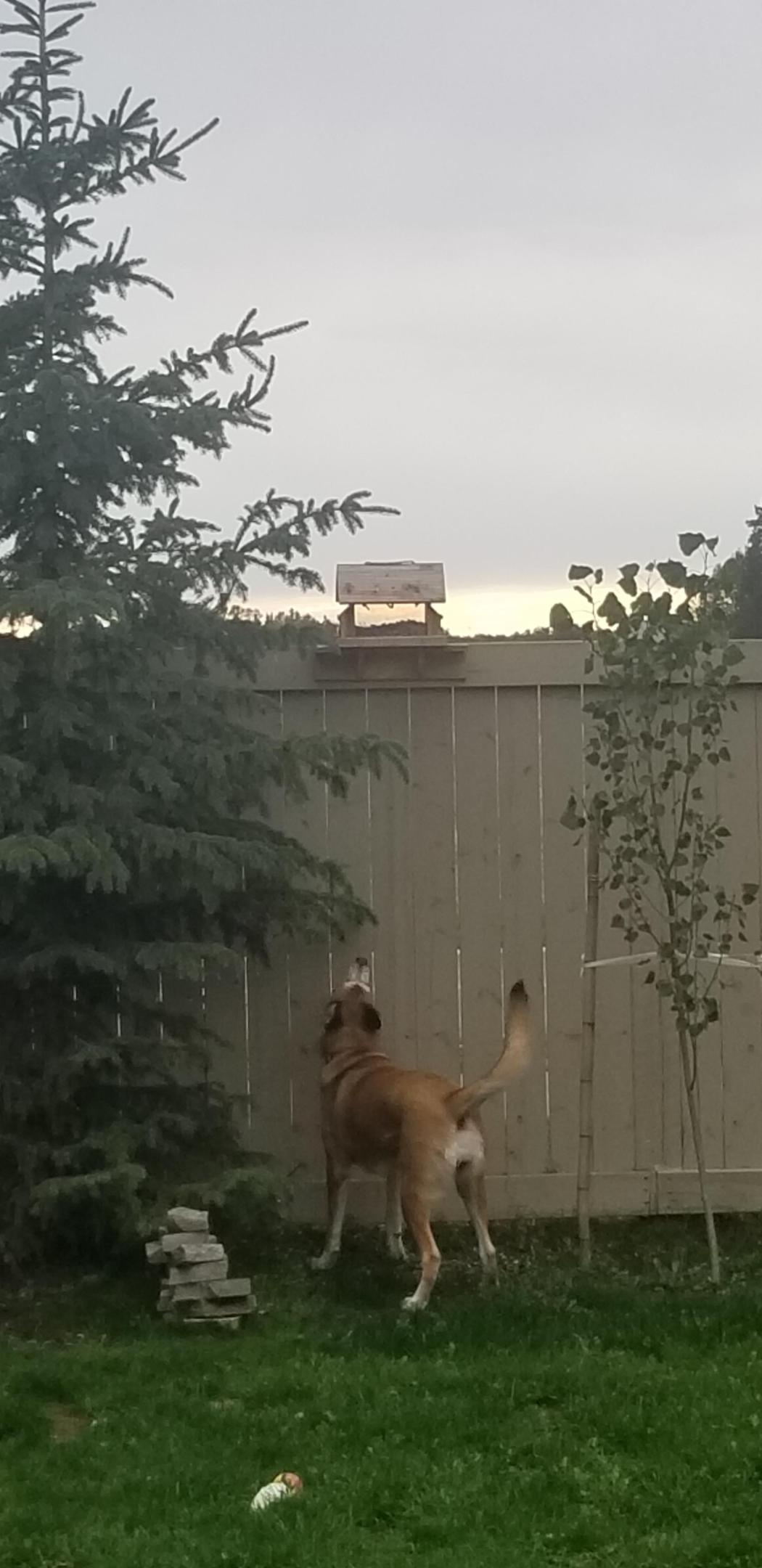 Luna hasn't figured out that she can't get the birds. But the Blue Jays...and the crows...and the sparrows...all know that she can't reach the top of the fence.