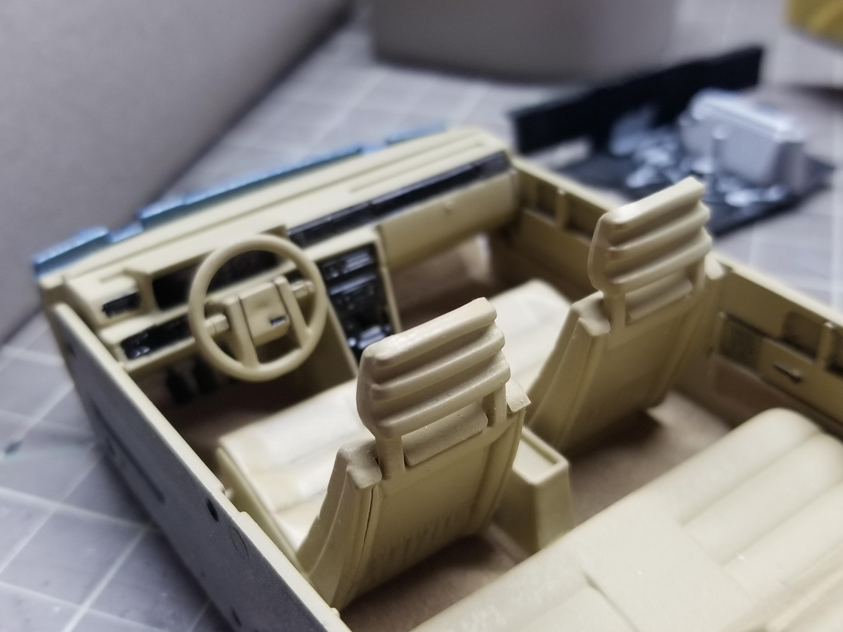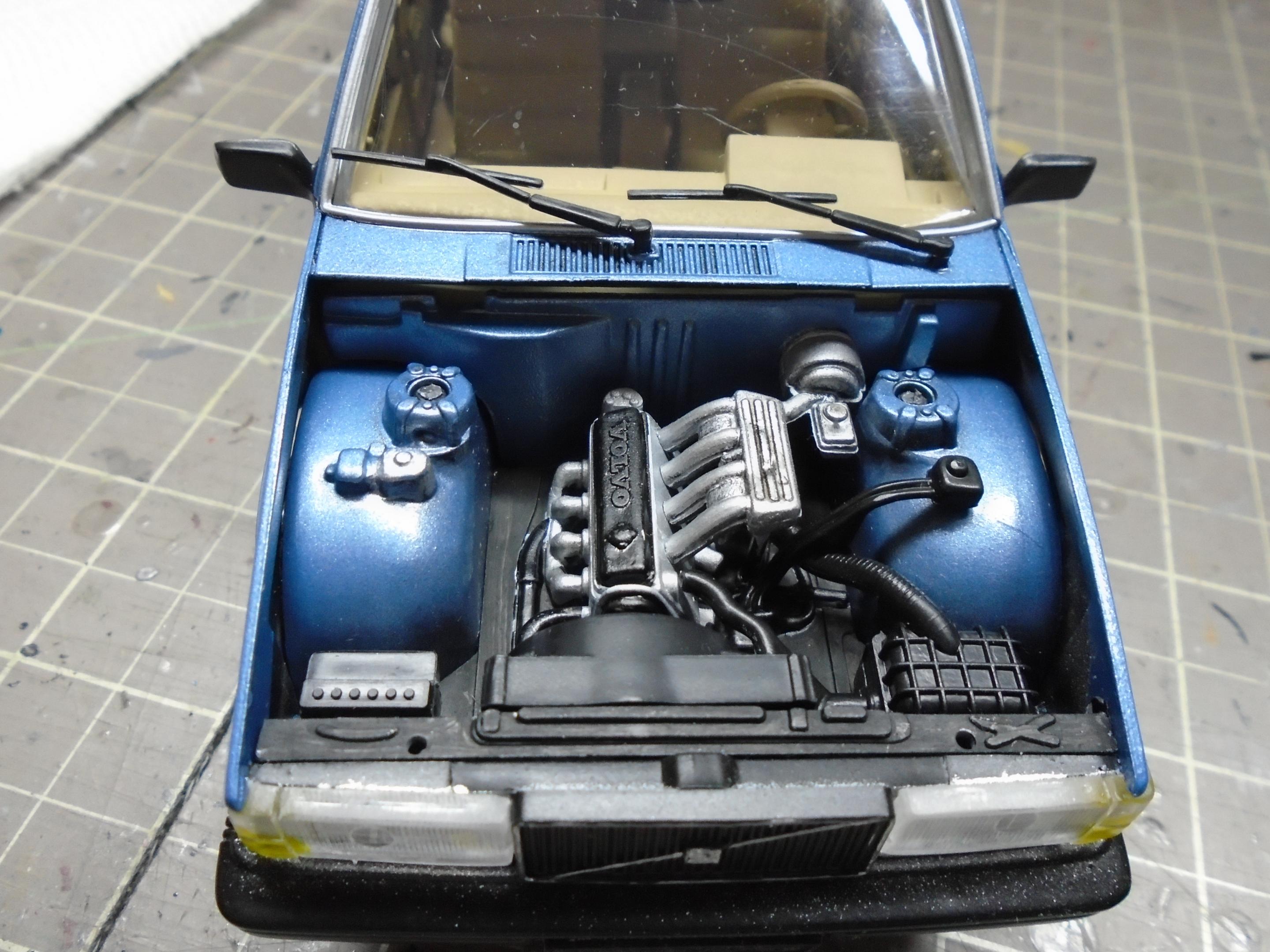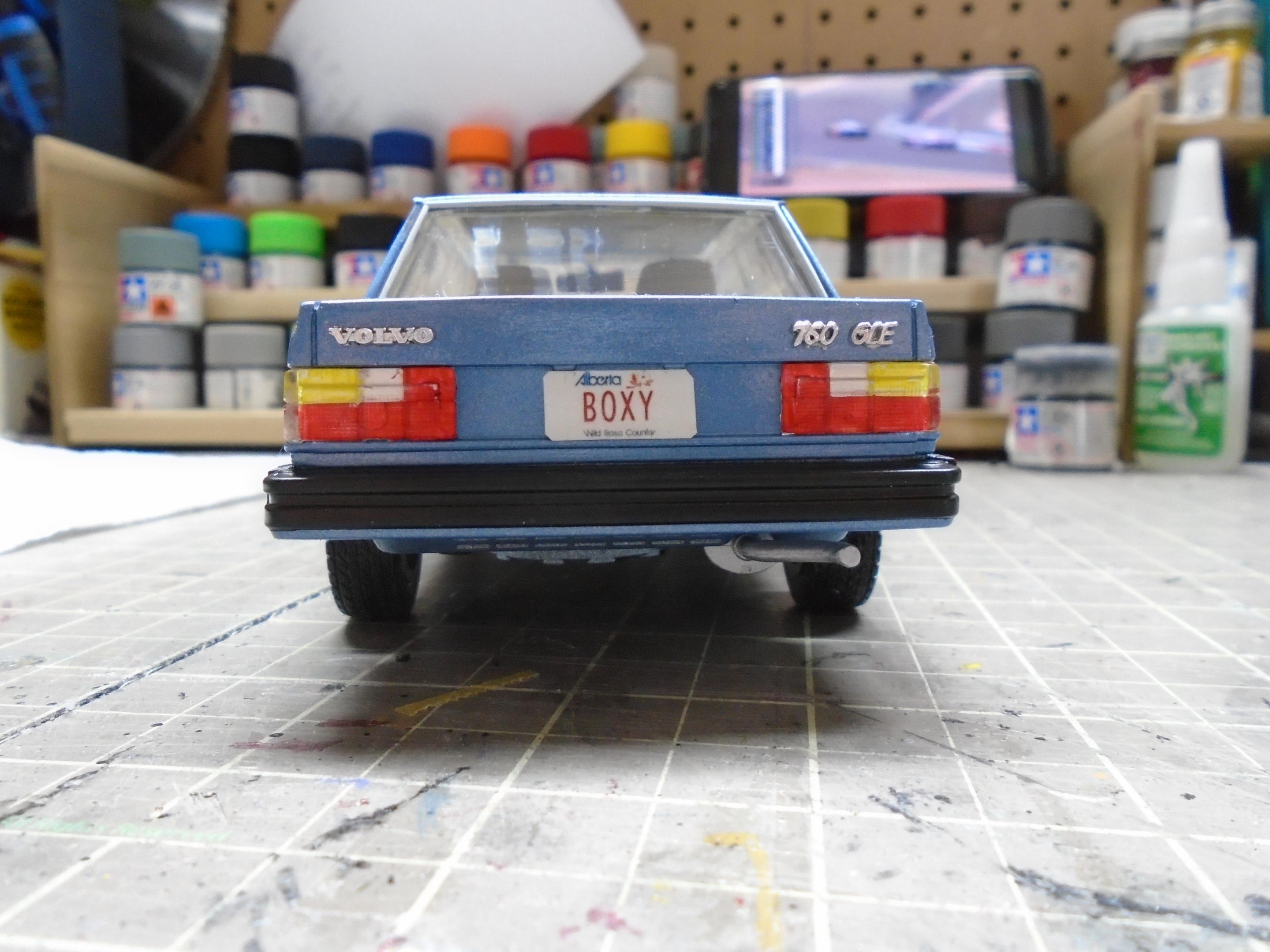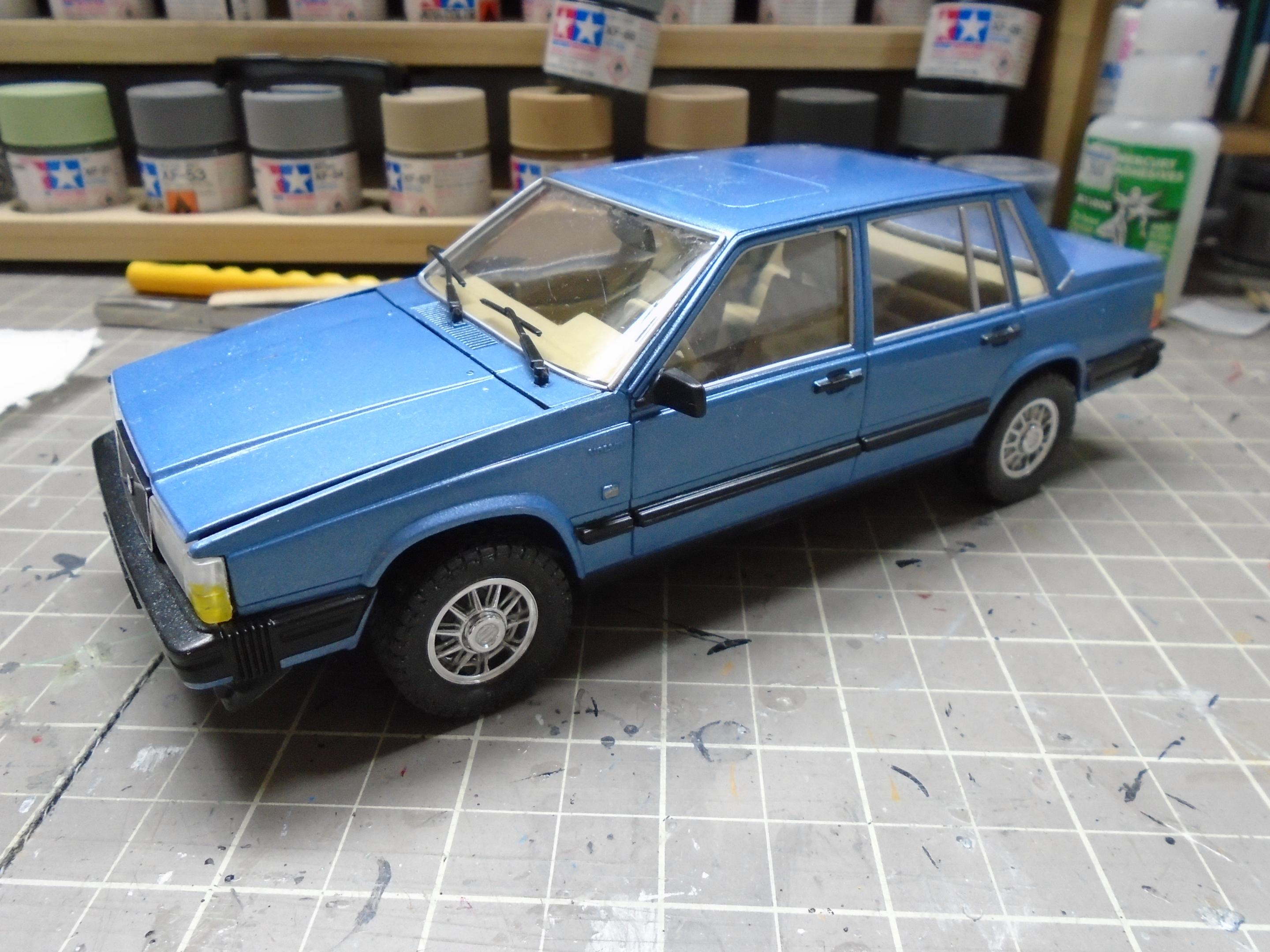 Something a little different. This is Italeri's Volvo 760 GLE, I believe original issue from the 80s. Very simple kit that produces a reasonable facsimile of this boxy classic. Went together well, but I had two issues. First, the ride height. The pics you see are AFTER i shaved off some parts to try and lower it. I guess with some black trim, this could be easily turned into a 760 XC! Second, the front grille/headlights did not fit well. Sanded, trimmed, shaved. Just not a great fit. And the hood seemed too flat. Still, I like this kit, and wouldn't mind grabbing one of the new reissues and building a modified version. Lowered suspension, BBS wheels, etc. Paint is Duplicolour's GM Light Blue Metallic. Interior is a Duplicolour Vinyl & Fabric paint. Suitably 80s colour combo. Built box stock, with the addition of some flocking. Turned out okay. The inspiration for colours. And the pics.