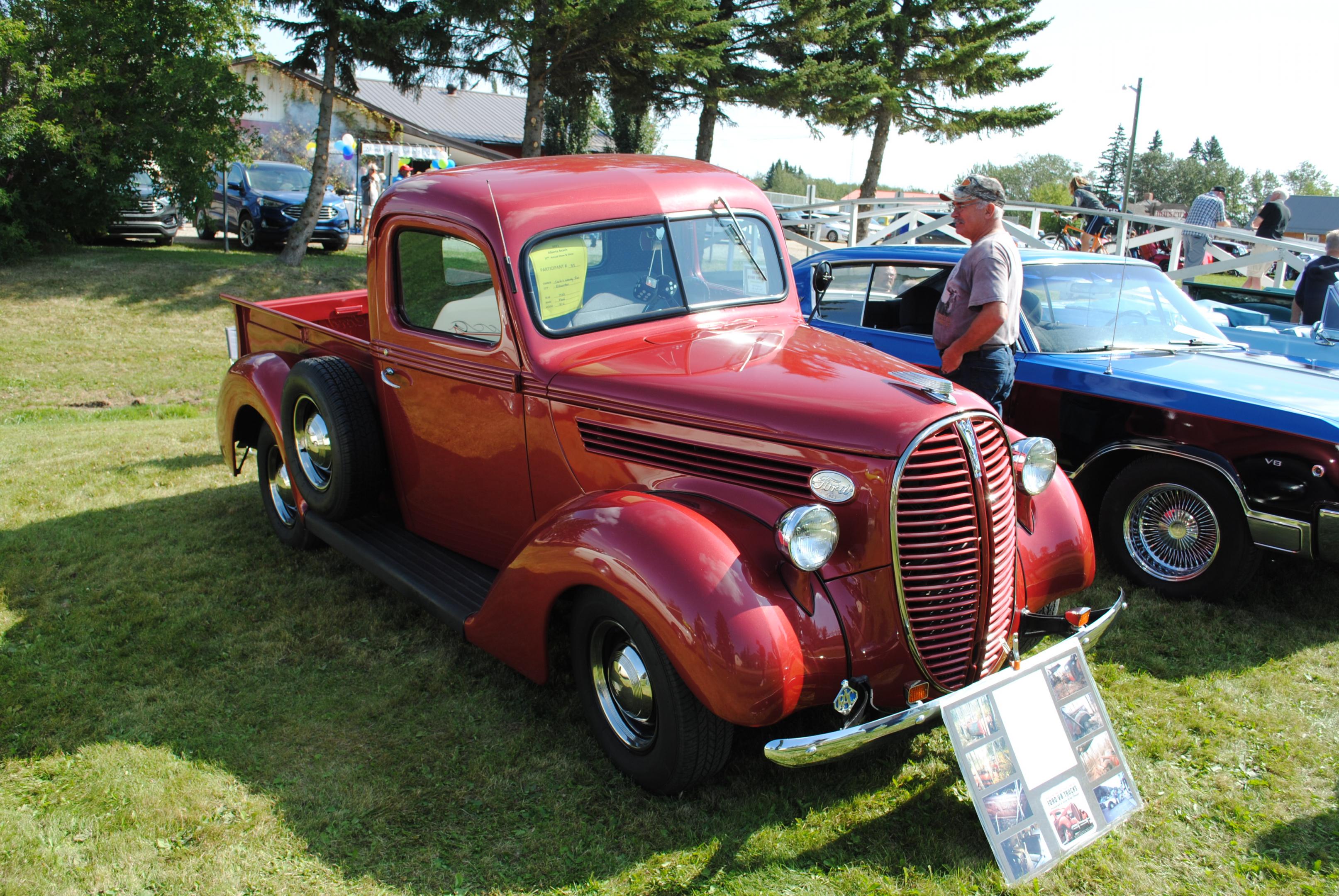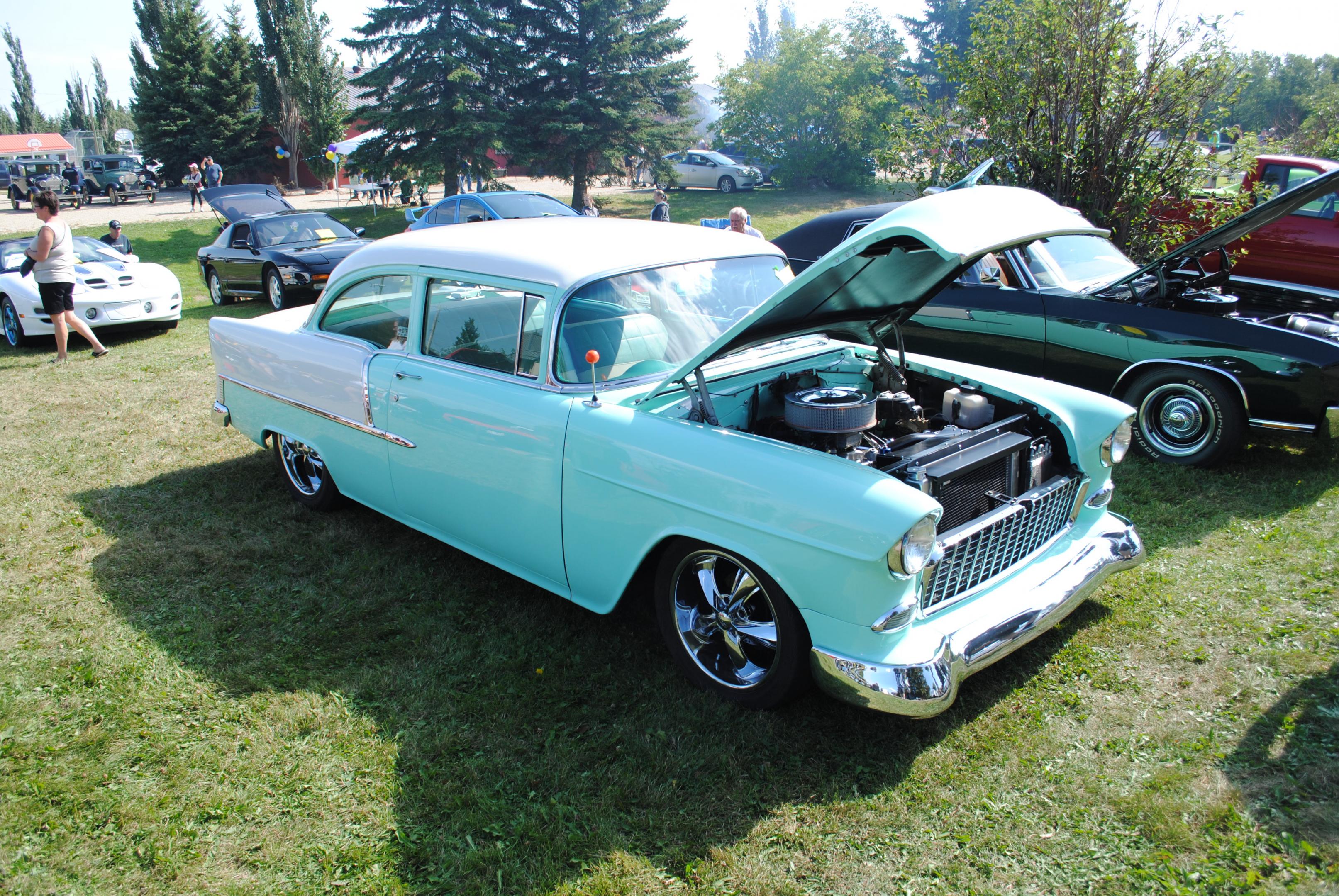 Big show today. Tons of cars & trucks, weather was great. Alberta Beach is a small community on the shores of Lac St Anne, about 15 min from my house. It's always been a small town/village, but over the past decade, it's been attracting some big money, and a lot of the summer cottages are coming down and being replaced with significantly larger houses. And most of these people have toys, so they started a car show. And here we go.
