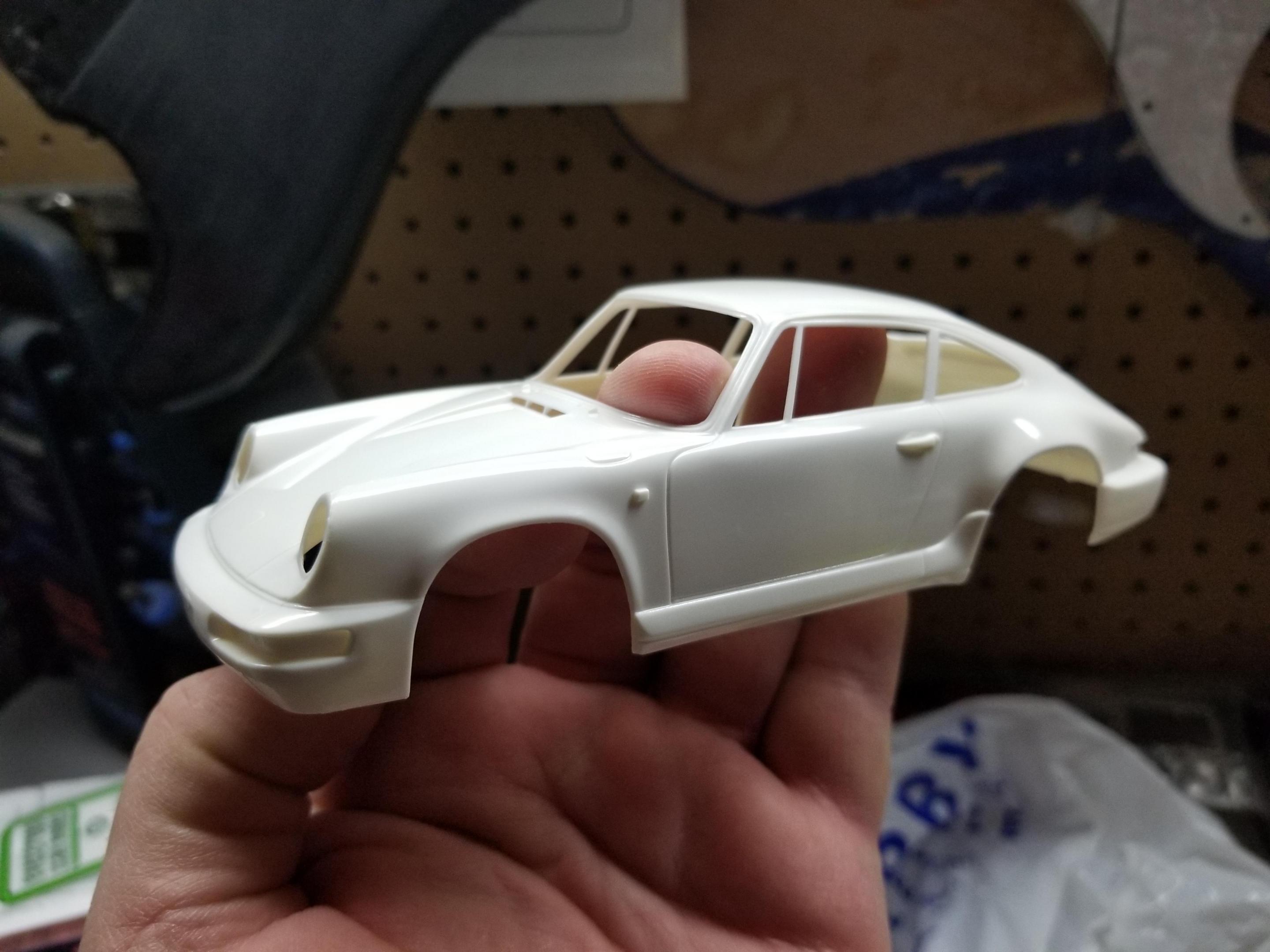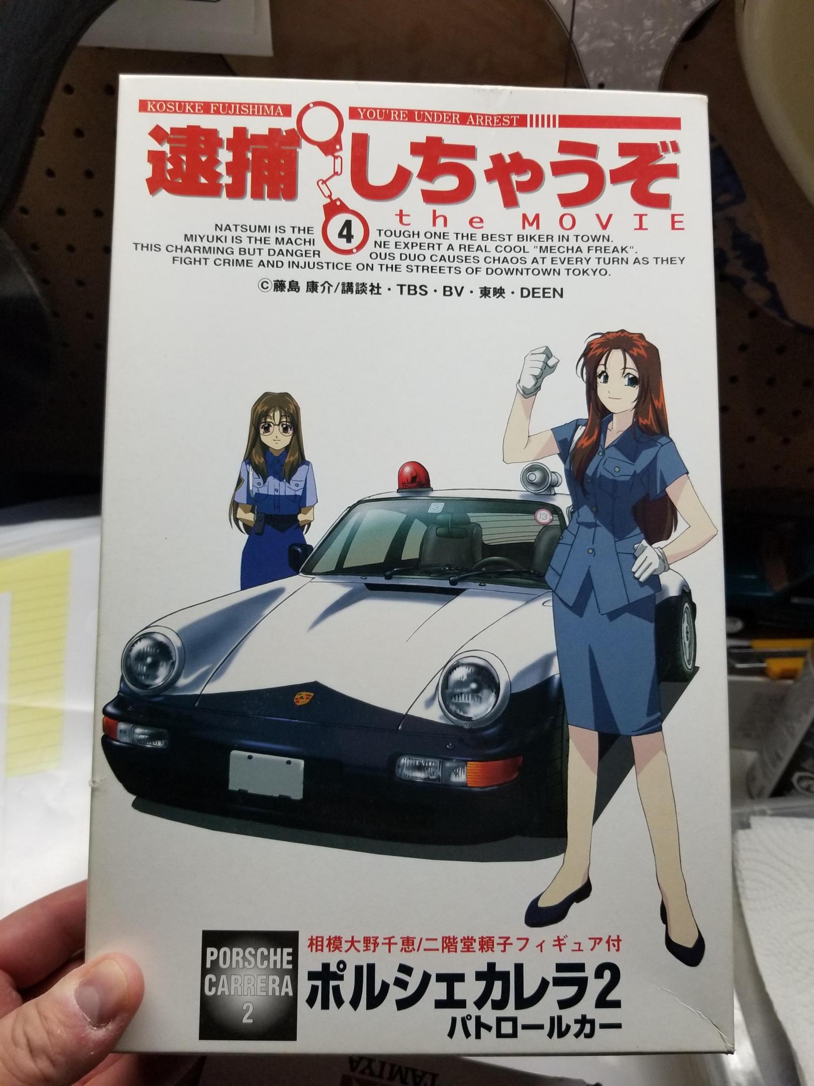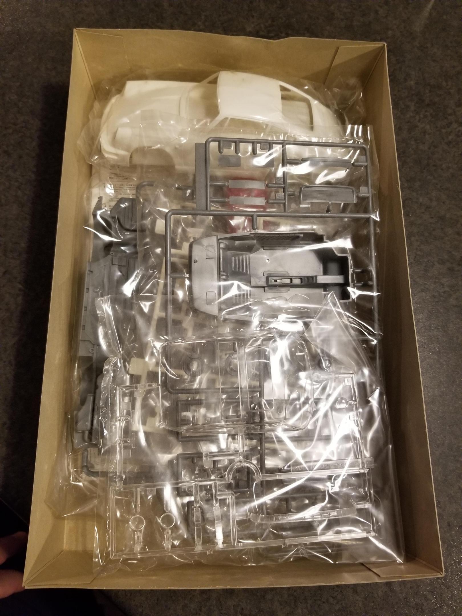 Found this one on EBay. Ridiculously cheap. Shipped and landed here for less than half the cost of what I see these normally go for. Maybe people see the box and think it's a toy or something. Despite the goofy cartoon graphics, inside is a perfectly good kit of a 964 Carrera. It's an Aoshima kit, but it looks identical to the Fujimi Carrera 2/4 kit.