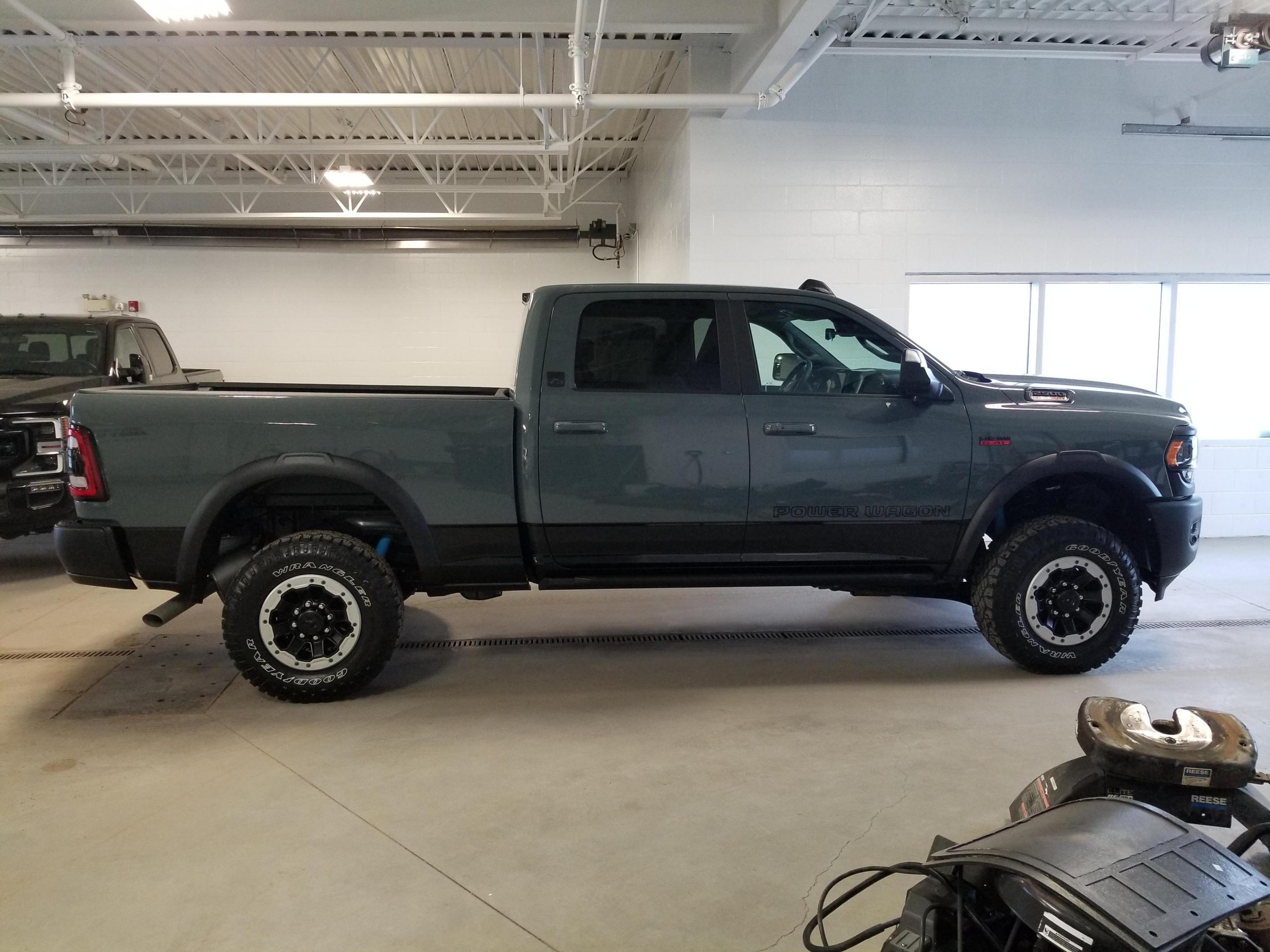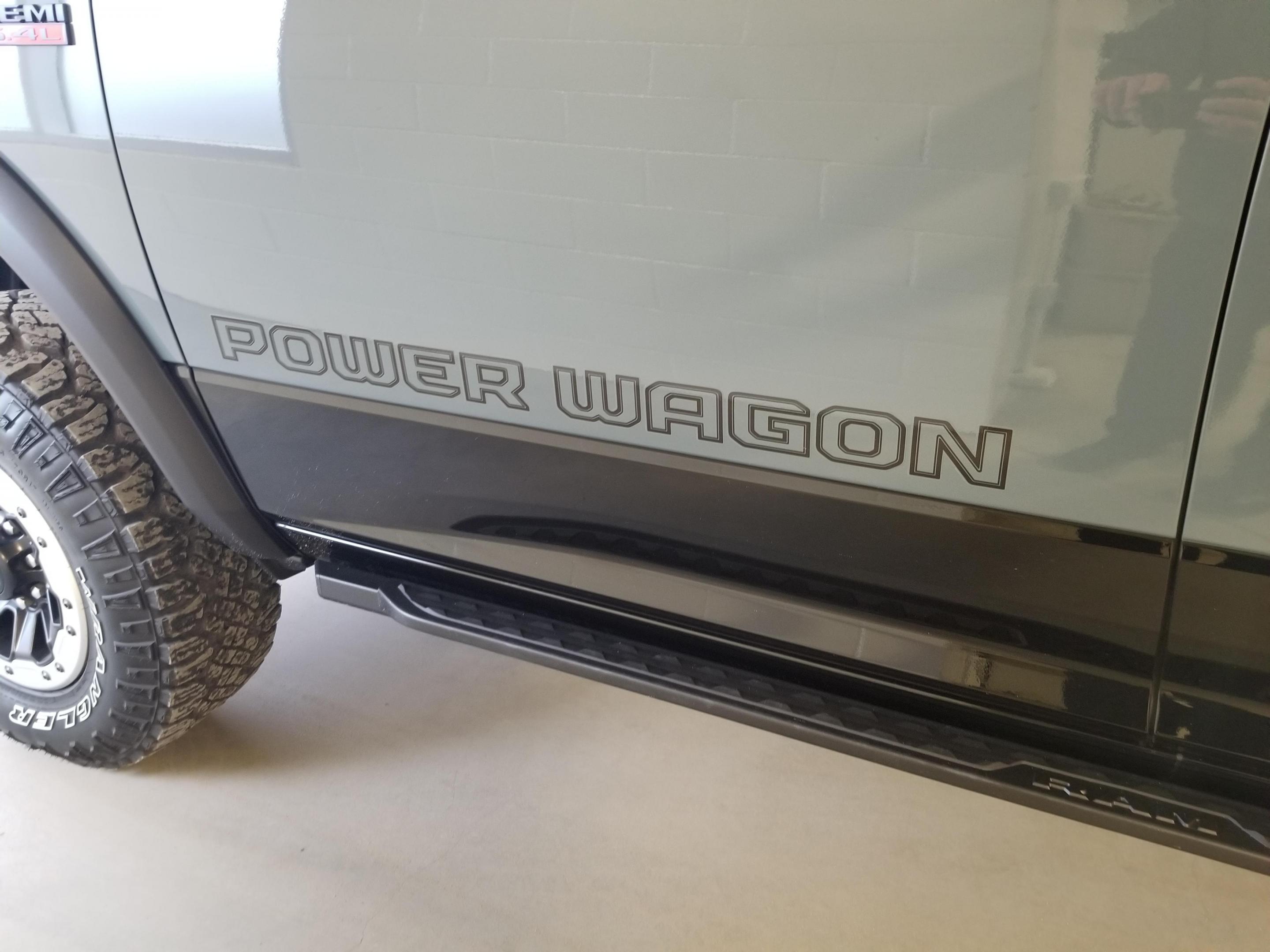 So I know a few people here have purchased the "Power W 2500" resin kit from A&N Model Trucks. Myself included. This is a highly detailed kit, especially when you purchase the upgraded front suspension add-on, or the 6.4L Hemi V8 add-on. Although the instructions are highly detailed, you're left to your own devices when it comes to the colours used, and what the truck "should" look like. So to help, I took these. Back in November, I factory ordered a new 2021 Ram Power Wagon 75th Anniversary Edition for one of my clients. Ultra-rare truck, especially in Anvil Grey. The truck just arrived, and I figured I would document this one, mainly to help with my build of the A&N kit. Interesting note: the A&N kit represents a truck with bucket seats. Until this 75th Anniversary Edition was released, you could not get bucket seats in a Power Wagon at all. Anyway, on with the pics. Exterior Shots: This particular truck is Anvil Grey in colour. The rockers are Diamond Black Metallic. Door handles and the tailgate handle are body coloured. All other exterior trim and ornamentation is blacked out. THe front "RAM" logo is a matte metallic grey. The front grille on this Anniversary Edition is different. It has the vertical slats, where the standard truck has a honeycomb mesh, as depicted in the A&N kit. This truck also has the new-for-2021 Power Wagon graphics. The large graphics that appear vertically on the truck box are no more. This truck also forgoes the black graphics on the hood.