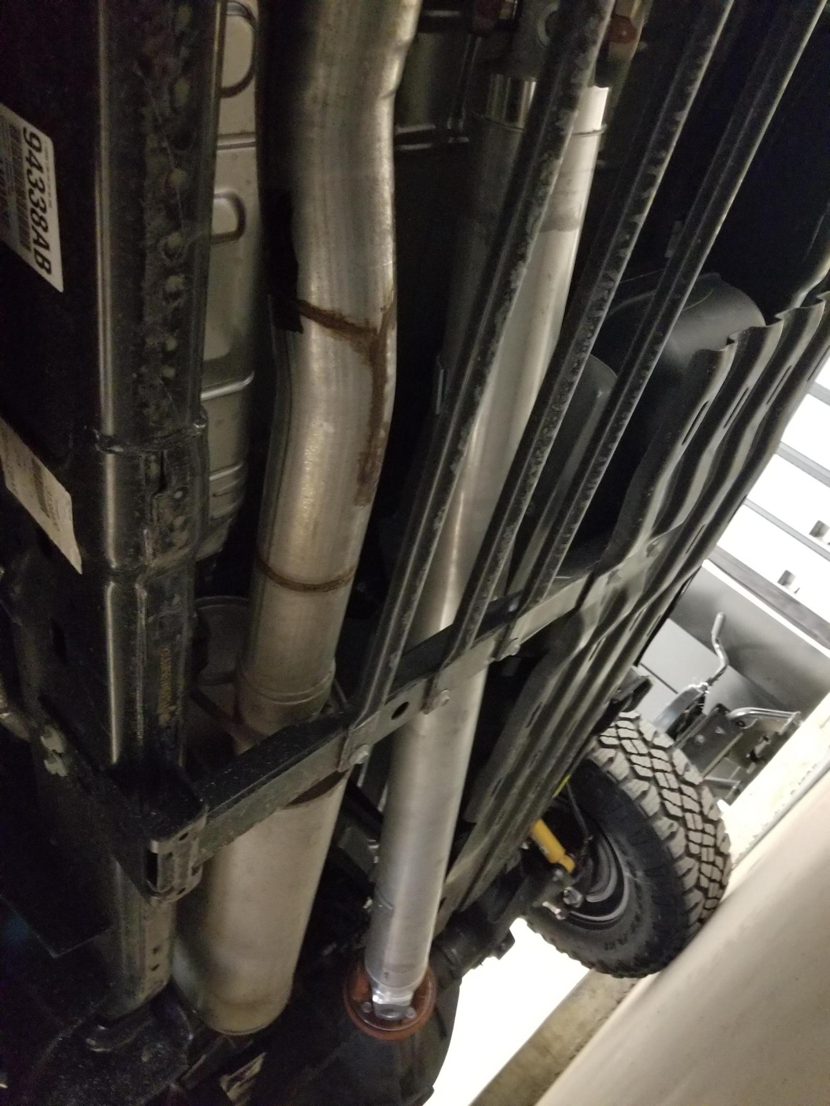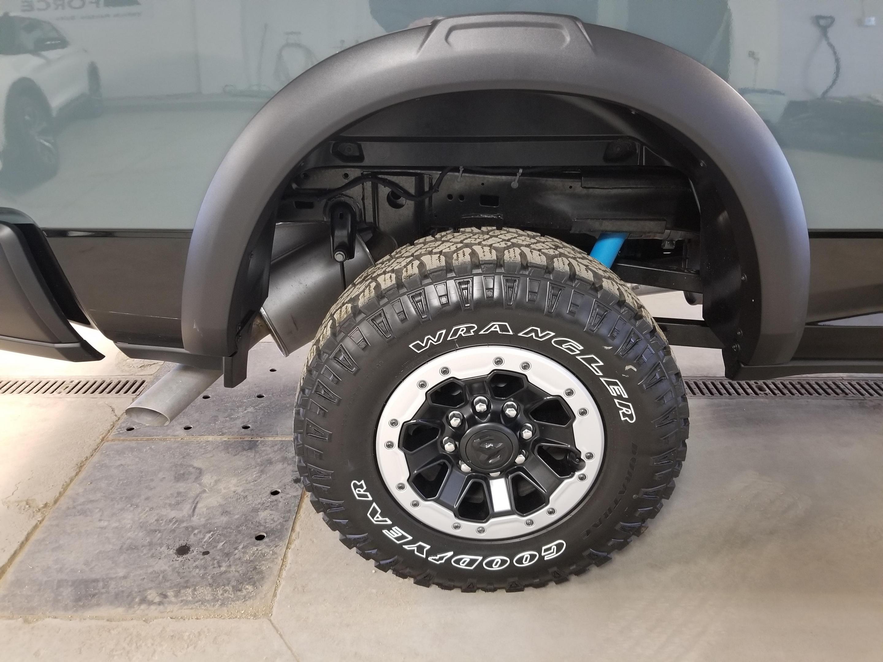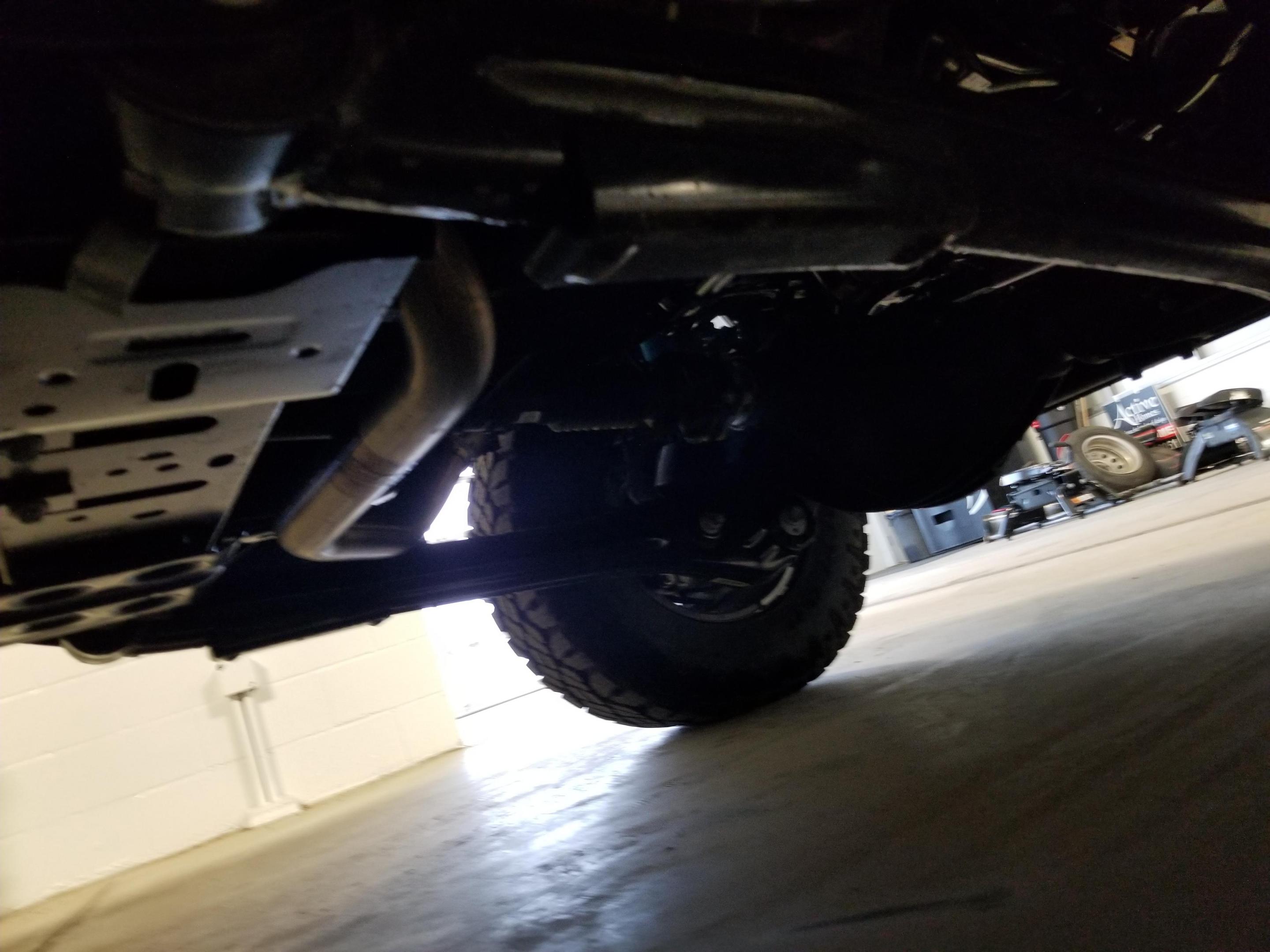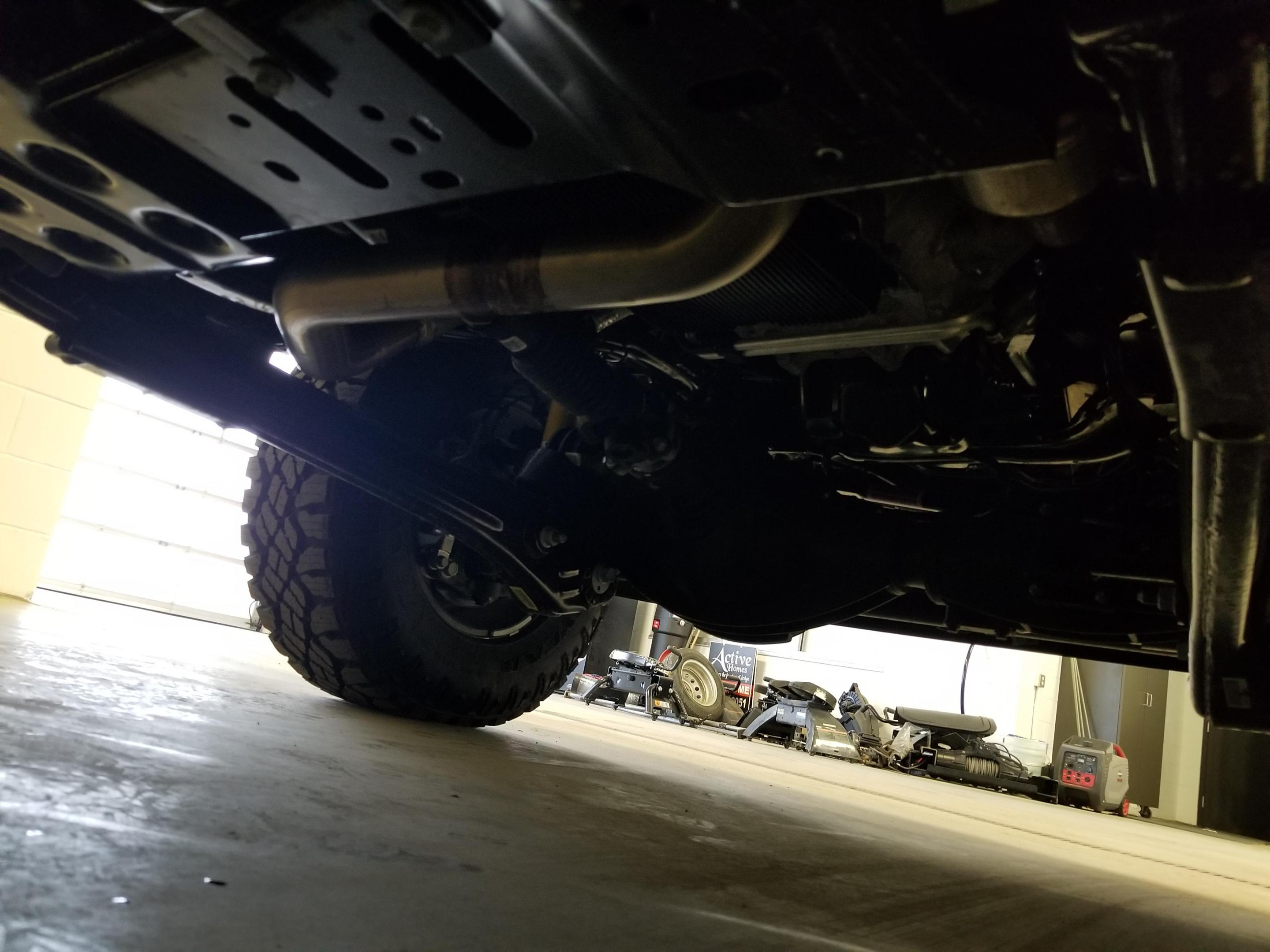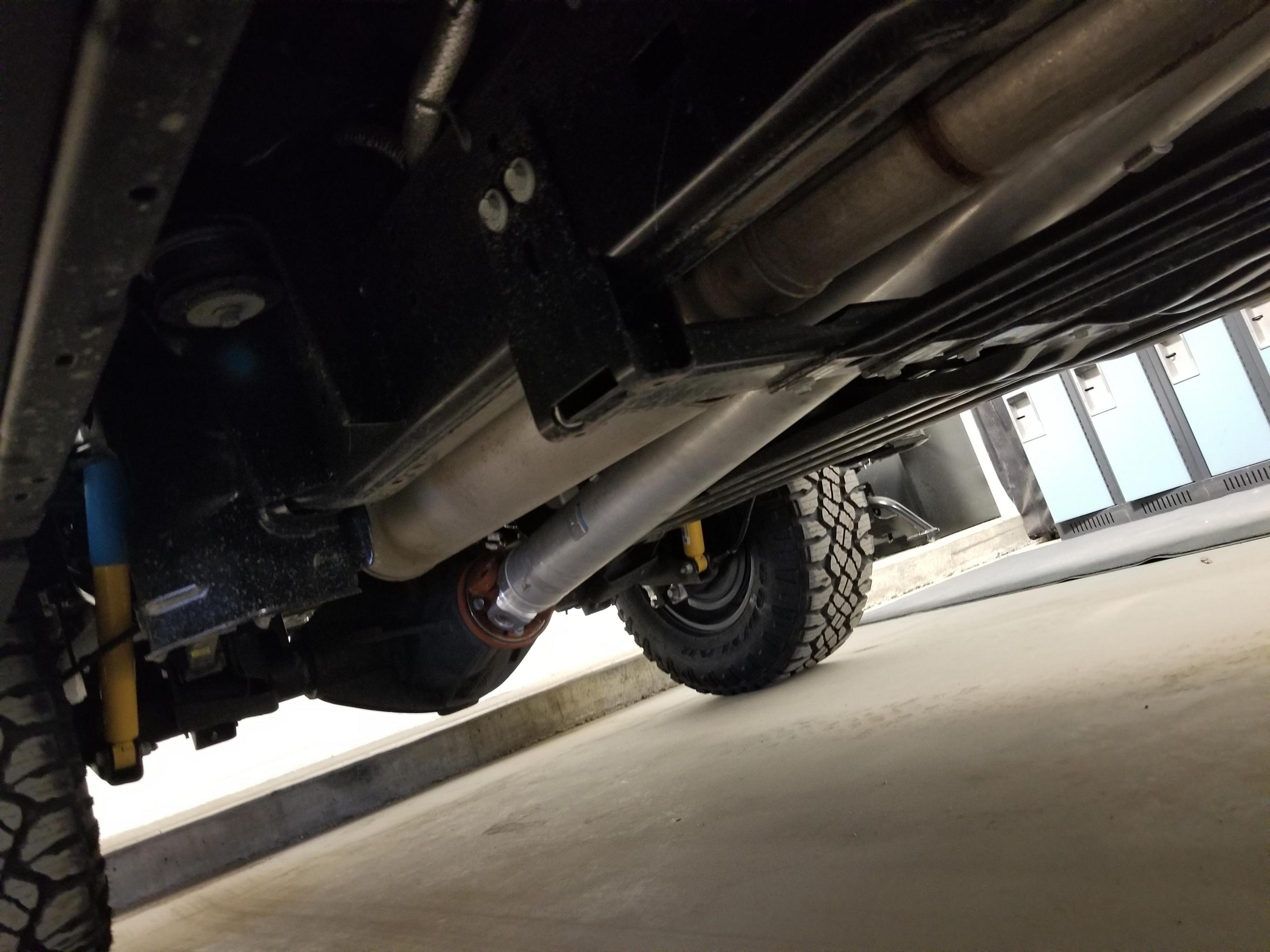 Wheels, suspension, underneath. Almost everything under this truck is either black or aluminum in colour. The shocks are Bilstein, so are the usual blue and yellow. All wheel wells have black plastic liners, so no paint is visible. Wheels on this model are new for 2021, and are beadlocks. I think the kit wheels could be easily modified to match this look if so desired. The spare is not an alloy wheel. I haven't actually checked the kit to see what it came with for a spare. Just about every bolt underneath is silver in colour. All of the parts ID stickers are white, except for the one on the front track bar (or whatever that is), which is pink. On to the pics Driver side front Driver side rear Passenger side rear Chassis pics taken from passenger side.