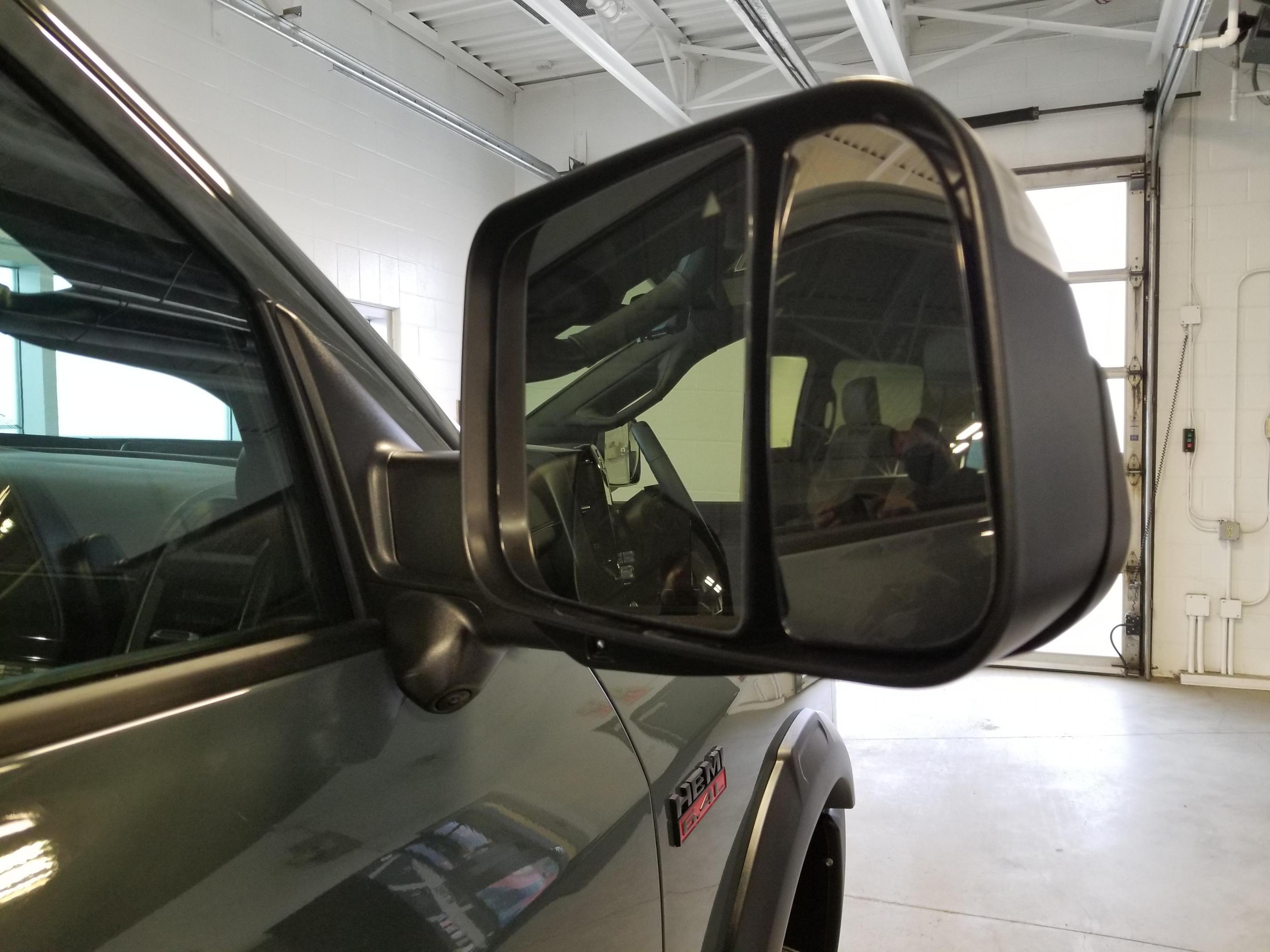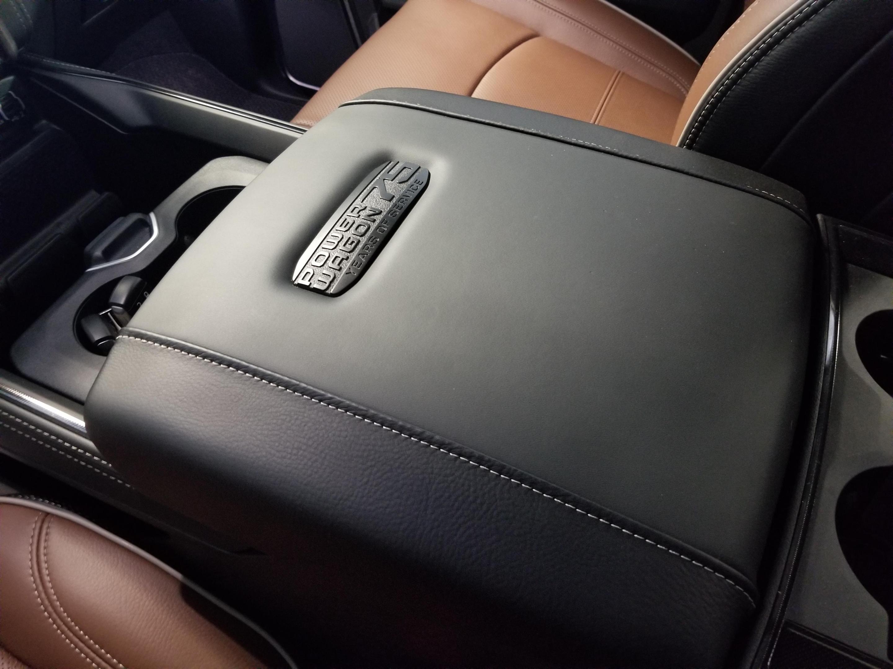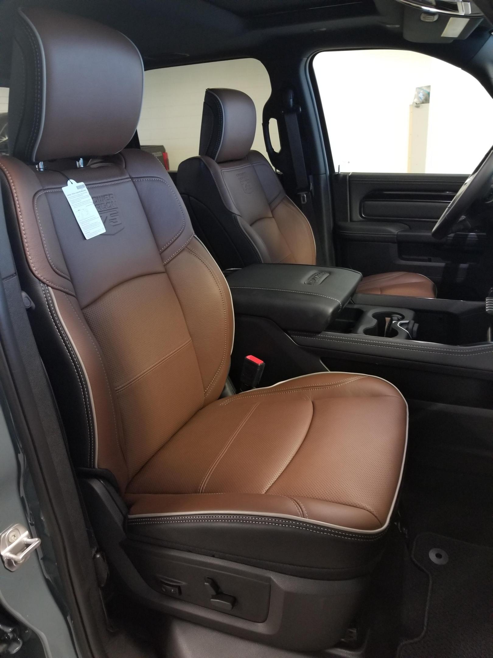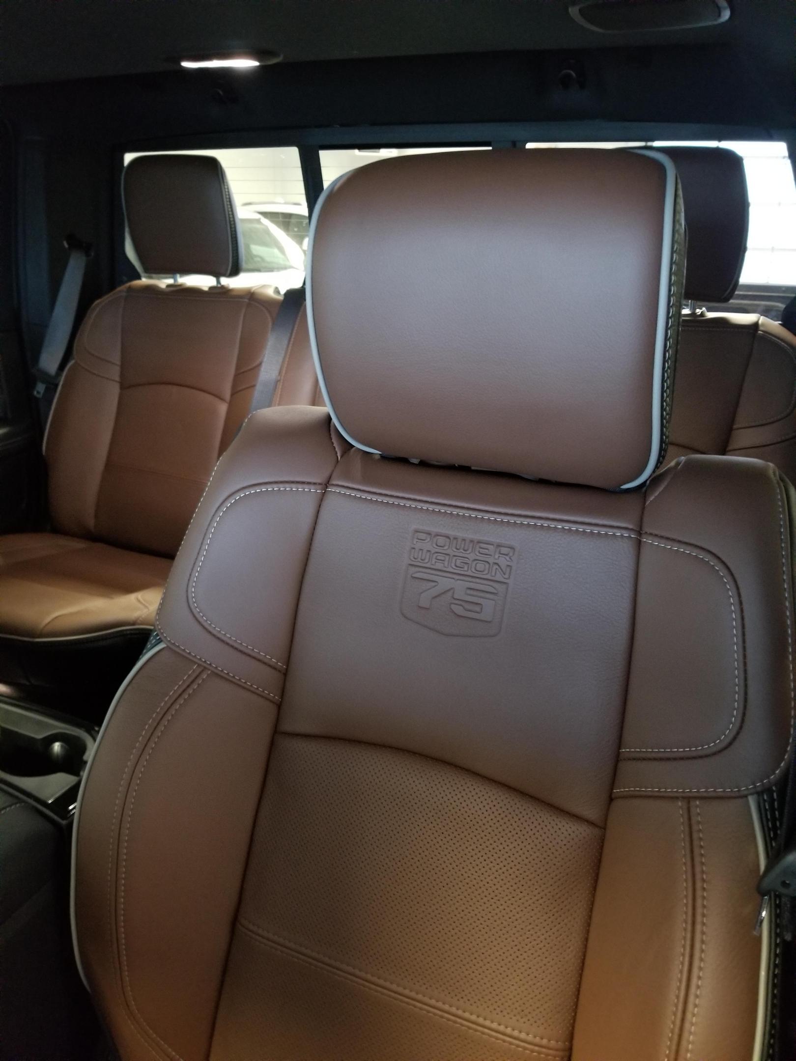 Interior Front As I mentioned, this truck is the only Power Wagon to get bucket seats in the front. All others will have a 40/20/40 bench, with a plastic tray thing on the center hump. These Anniversary Power Wagons also have the push button 4WD selector, where all other PWs have the floor mounted shifter. The leather on these is two tone, with a contrasting piping colour. Fun fact: it's the same soft leather used in the Ram Limiteds and Longhorns. The large PW logos that normally appear o nthe seats are gone, and replaced with the 75th logo in the upper center. The gloss black trim is actually a carbon fibre look. Driver side front: Passenger side front