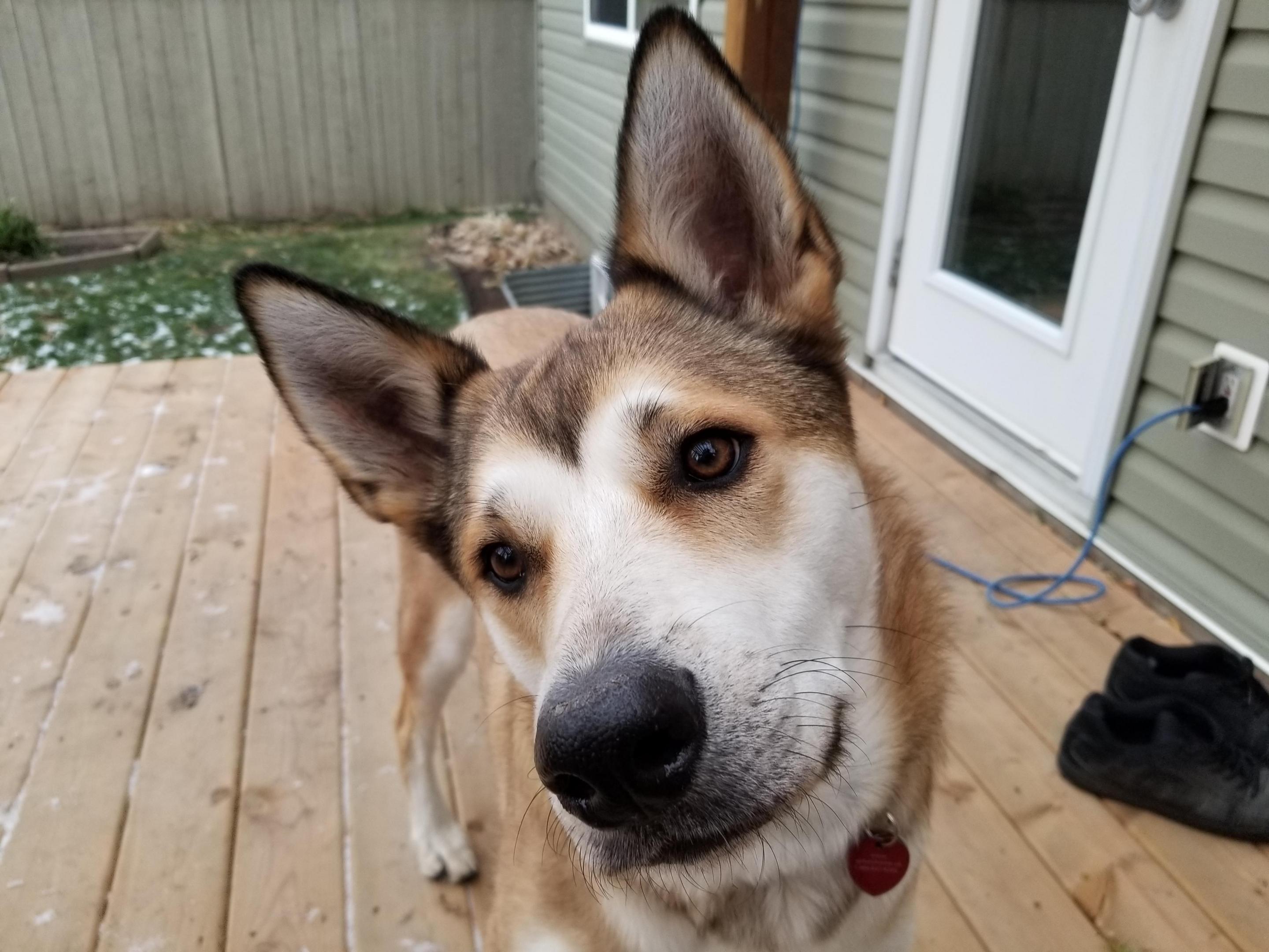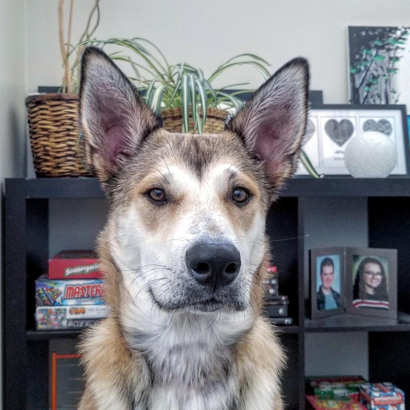 Getting Luna to pose for a picture takes skill. And usually some food. She's our Husky X rescue. She's a little over two years old, and early May will mark 2 years since she joined us.