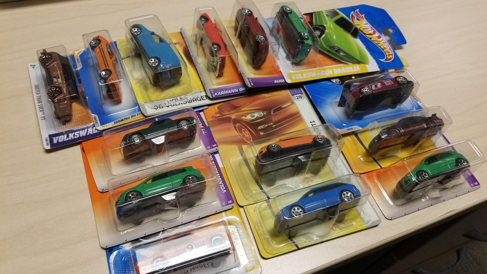 Hi everyone, I have bunch of Hot Wheels and Matchbox 1/64 cars available. These are all still in the blister packs. The glue dried out on a couple of the packs, but they're still intact. Matchbox: Audi RS6 Avant Audi R8 Porsche GT3 Porsche 914 Volkswagen GTI - green (two) Volkswagen GTI - orange Volkswagen Caddy Hot Wheels: Volkswagen Type 181 Thing Volkswagen Brazilia Volkswagen SP1 Volkwagen Scirroco BMW 2002 Will trade all for a plastic car/truck of some description. If interested, let me know what you have. I like a little bit of everything, so I'm sure we can figure something out.