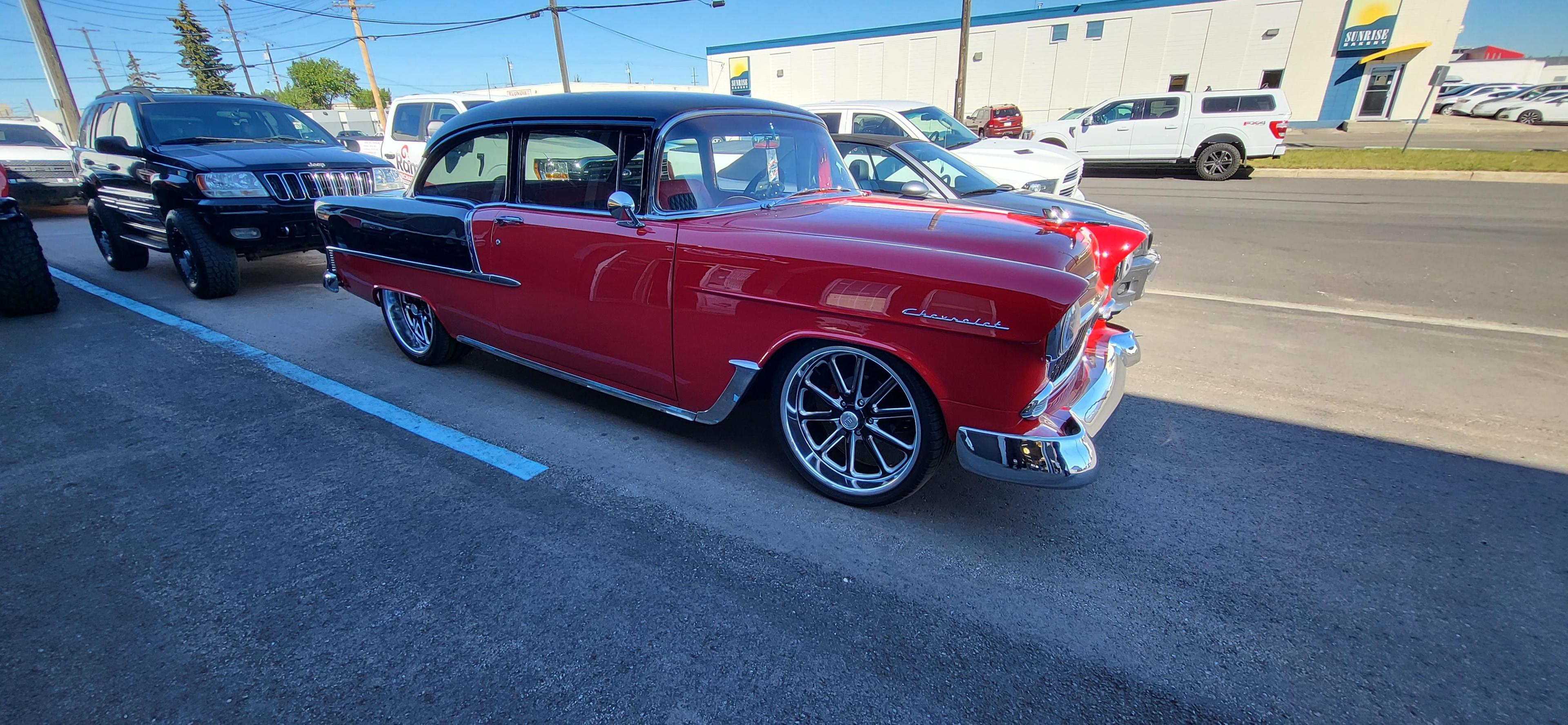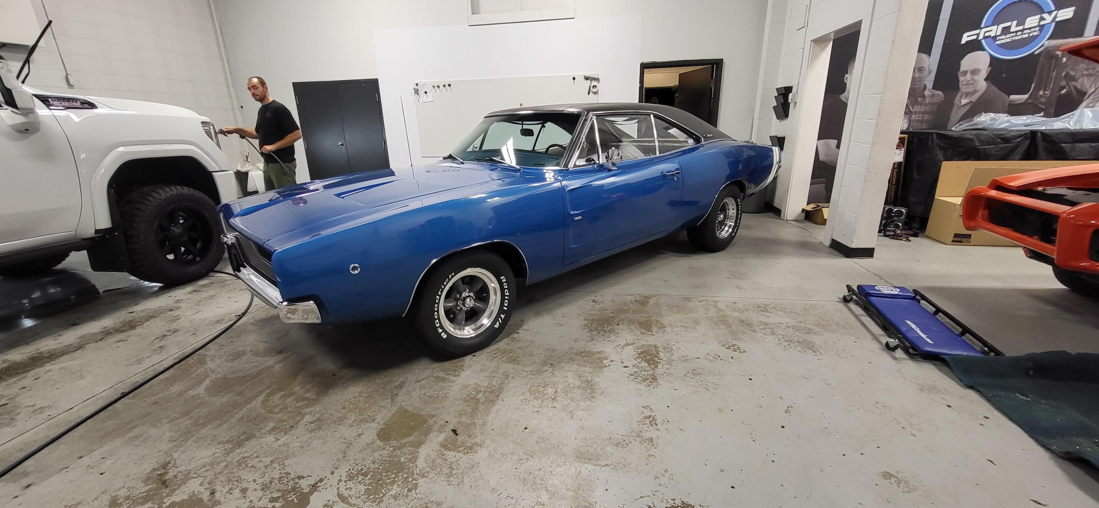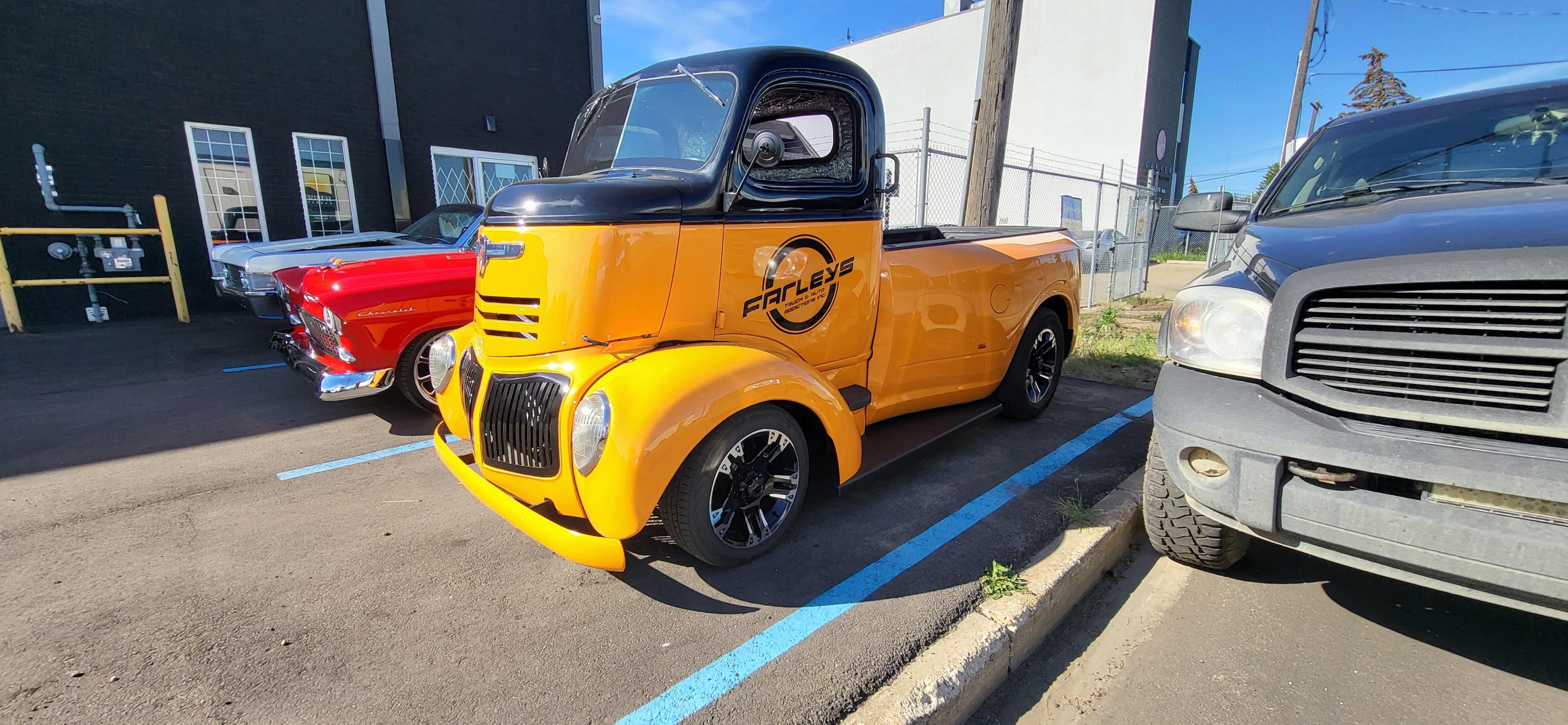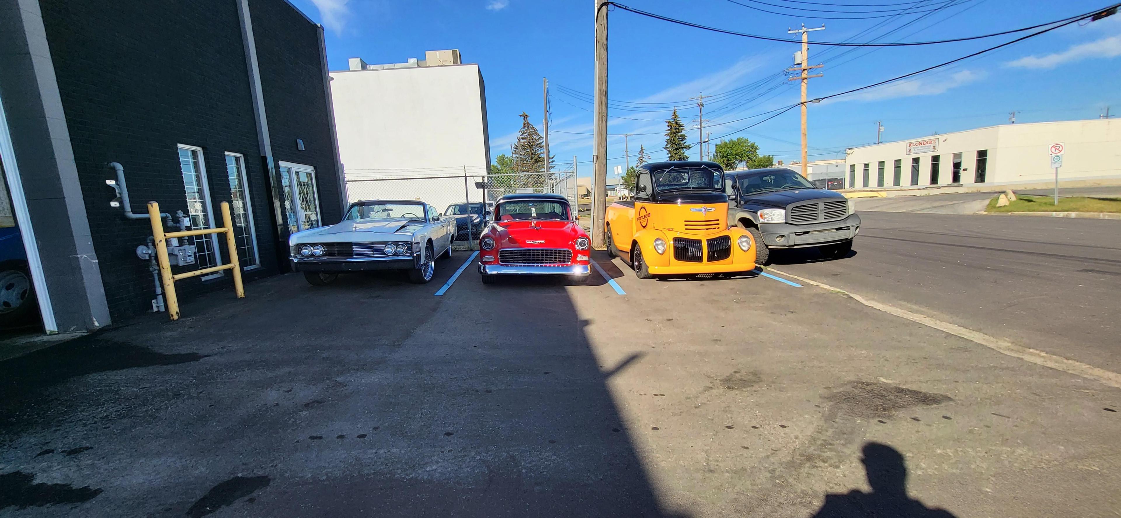 Stopped by a friend's shop today. They do outfitting on work trucks, and we utilize their graphics division extensively. However, their specialty is custom cars. Here's a sampling of what was in the shop today. This one was flipping beautiful, and I don't usually get real excited over cars from the 50s. Something about this one though. And for funsies, that's a supercharged BMW M3 Cabriolet hiding beside it, and that's my truck across the street. ? This Toyota is awesome. So tiny though, I can't even fit behind the wheel, let alone operate the clutch, or get my foot on the gas without hitting the brake at the same time! They were just finishing up the graphics on this one today. In progress Continental in the background. Currently no interior. 1968 Charger. Just beautiful. THe GTO to the right just came out of paint. Full restoration project. The GMC Denali to the left just had all of the black plastic and chrome colour matched. Typical shop view. The OBS Chev in the background has a fully built twin turbo LS. I drool every time I see it. Must be Belair week at the shop. -