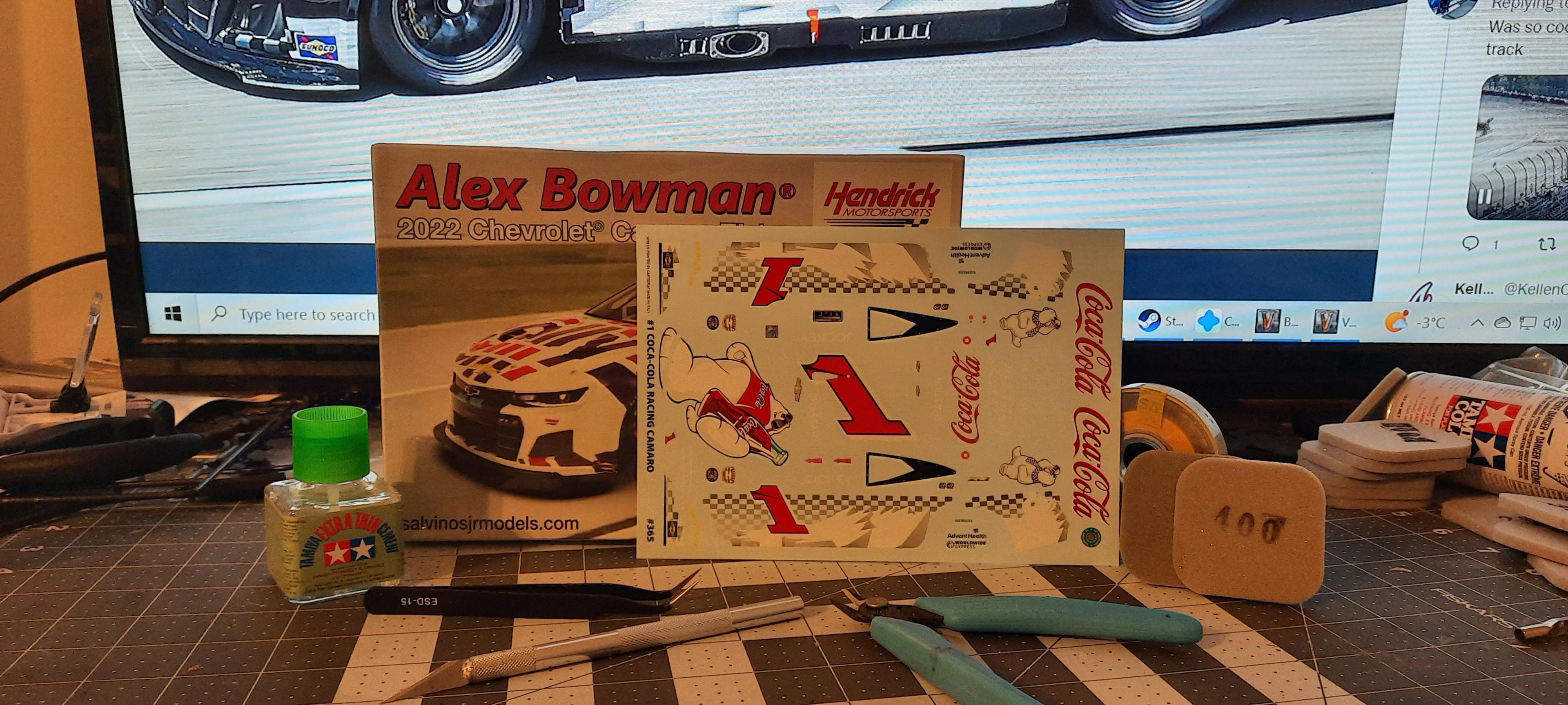 Well, I'm gonna get started on this one. My hobby room is a shambles still and atm I have nowhere to spray, as my paint booth did not survive the move and needs to be rebuilt. Not sure how far I'll get but we're going to get started none the less. Decals are from Powerslide (so are all the kit decals) but this Throwback scheme that ran at Darlington (Goodyear 400) is one of my favourites. I'm off work today so I'll see how many of the sub assemblies I can get done before I have to figure out how I'm going to paint. For now a quick shot of the starting point (please forgive the weird colour, the lights in this room are not great and have a yellowish tinge.....I definitely need some new light bulbs. Should have an update later on today.