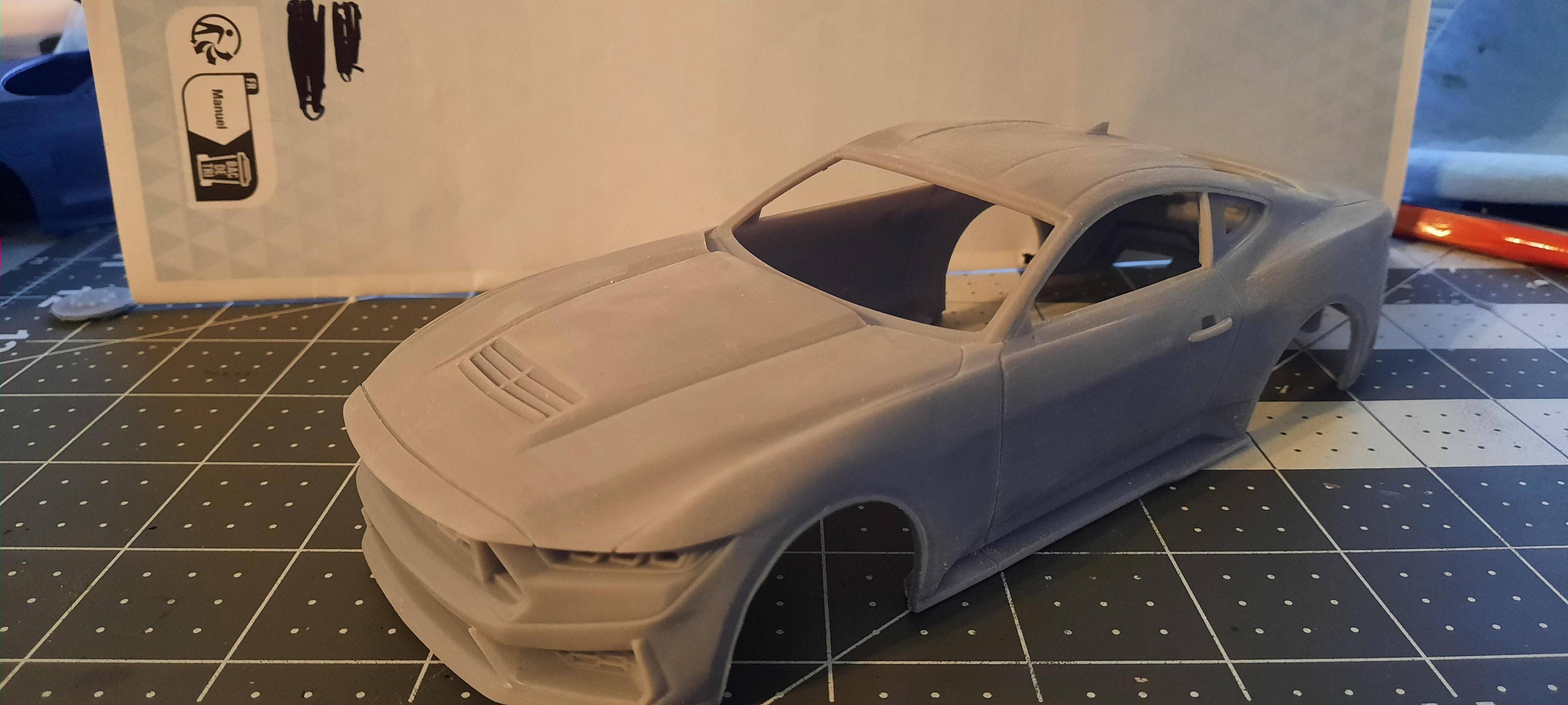 First wip for the year for me and I'm going with this 3D printed 2024 Mustang Dark Horse. Car files https://cults3d.com/en/3d-model/game/ford-mustang-2024-dark-horse Brake files https://cults3d.com/en/3d-model/various/ultimate-brake-disc-w-caliper-collection-1-24-scale-model-accessories Tire file https://cults3d.com/en/3d-model/various/michelin-pilot-sport-tire-v2 Please note, I don't sell prints and these files are not mine but can be purchased at the links above. Many hobby shops that sell gaming miniatures now 3D print and offer printing services if you cant find anyone locally. Here are a couple mock up shots in Chitubox slicing software. This was a quick mock up so things might not be 100% aligned. All my files are sliced and ready to print and I started printing last night. Will likely take a couple days to print all the files. All the files in the above mock ups come with the original files except the tires and brakes. The tires in the original files are just generic so I add in some Michelin Pilot Sport Cups as well as some slotted and drilled rotors and branded Brembo brakes to add some more detail. This is a curbside kit, I have the files for a Coyote v8 but I don't feel like getting into making an engine bay. Just wanted a quick print/paint and build kit. Thanks for looking.