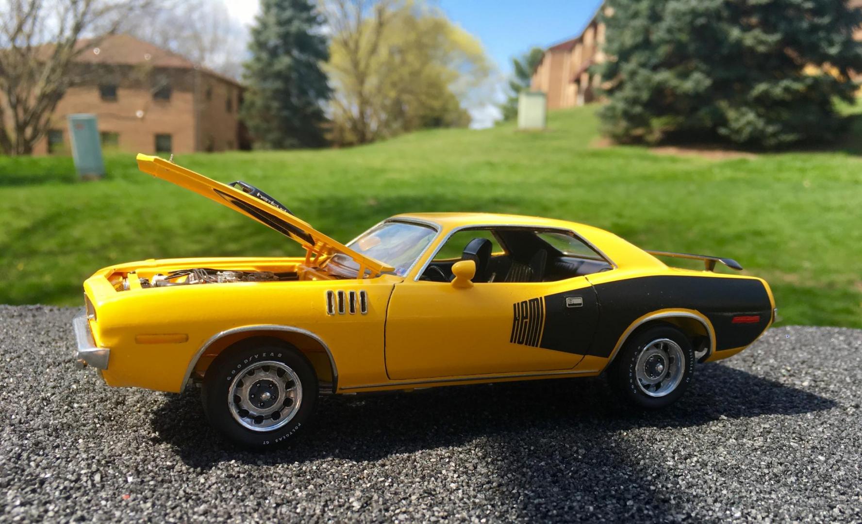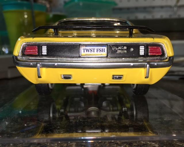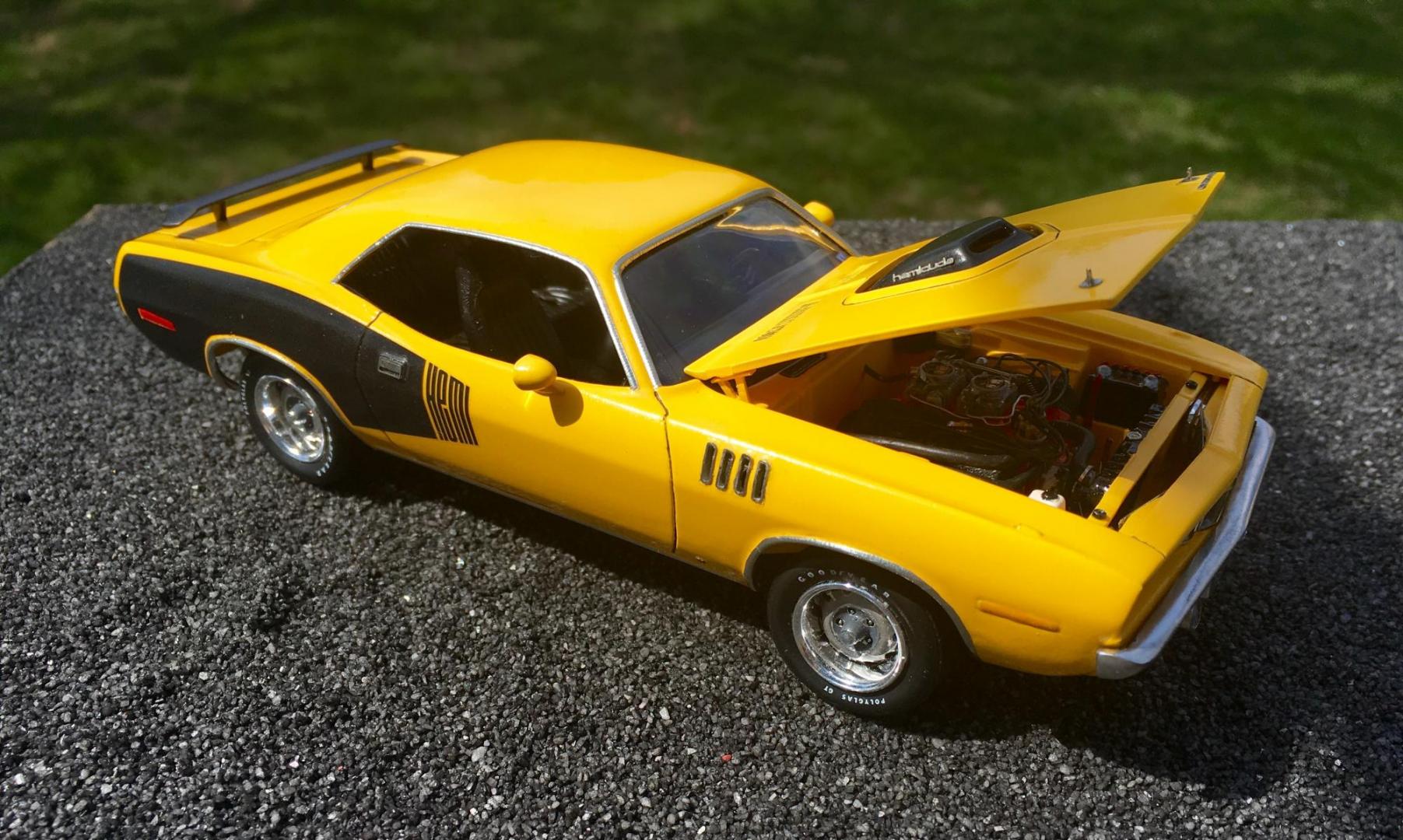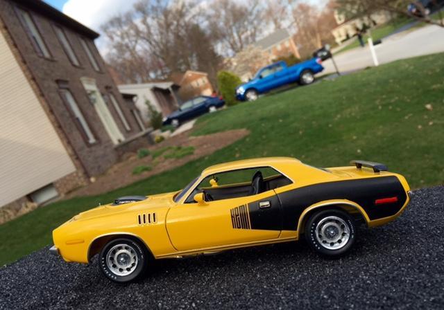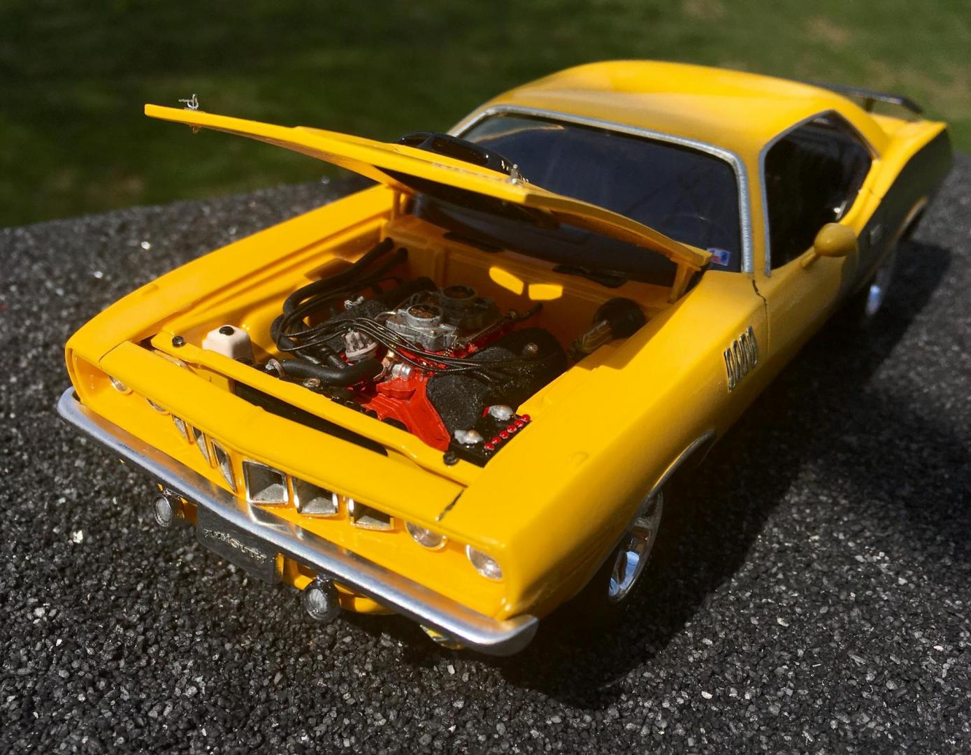 Need a sunny day to get a few outside pictures, but here are a few indoor pics of my Revell '71 Hemi 'Cuda. Paint: Model Master enamels, acrylics, rattle can lacquer (for the body), and Alclad chrome. Zaino polish to finish '70's era shine. PE pieces used throughout.